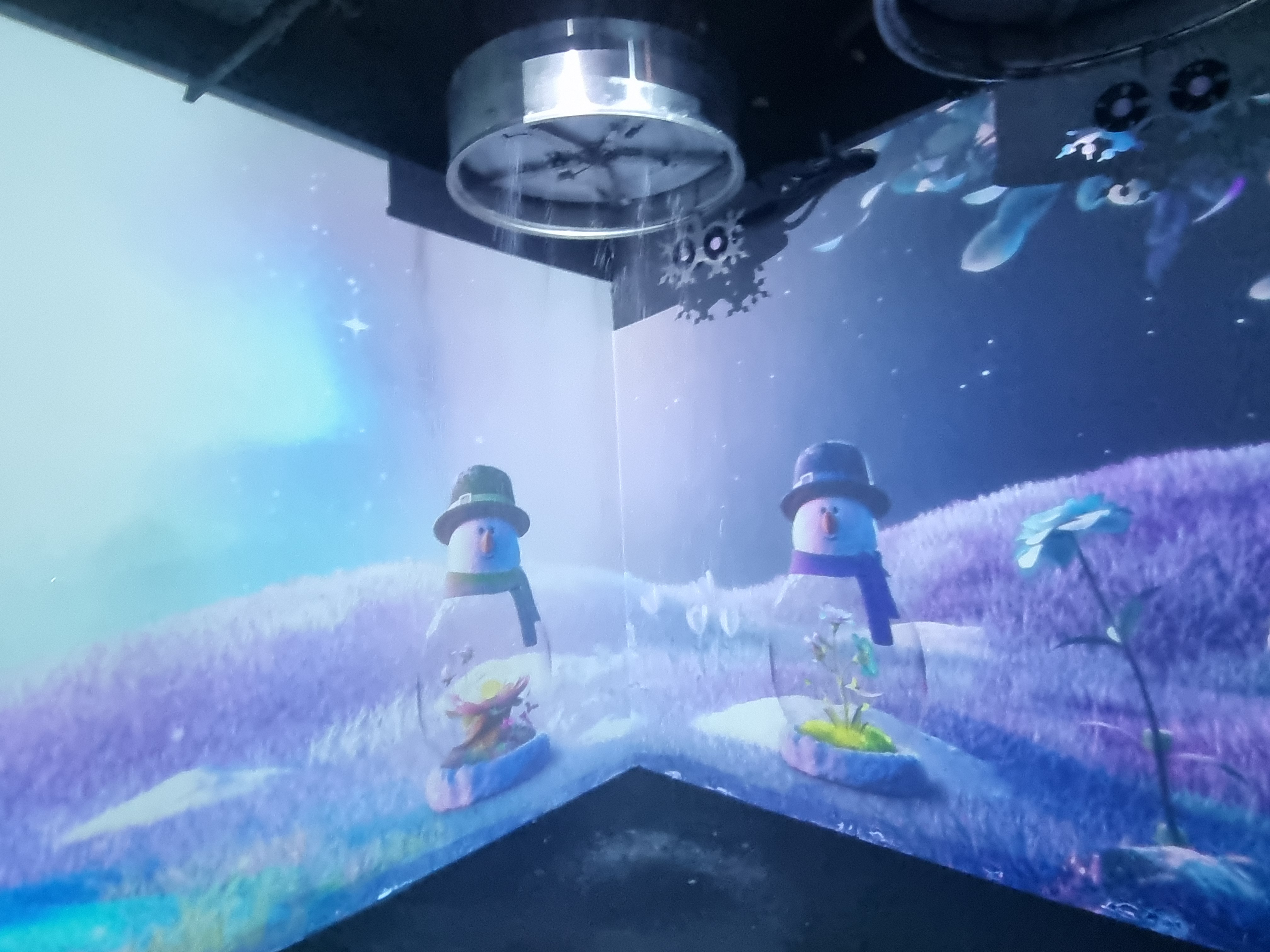 작은 미디어 정원도 있는데 바로 위 사진에서 보면 디지털로 눈 내리는 장면이 있는데 한쪽 구석에 가면 정말로 위에서 눈이 내리는 것을 볼 수 있고 느낄 수 있습니다.