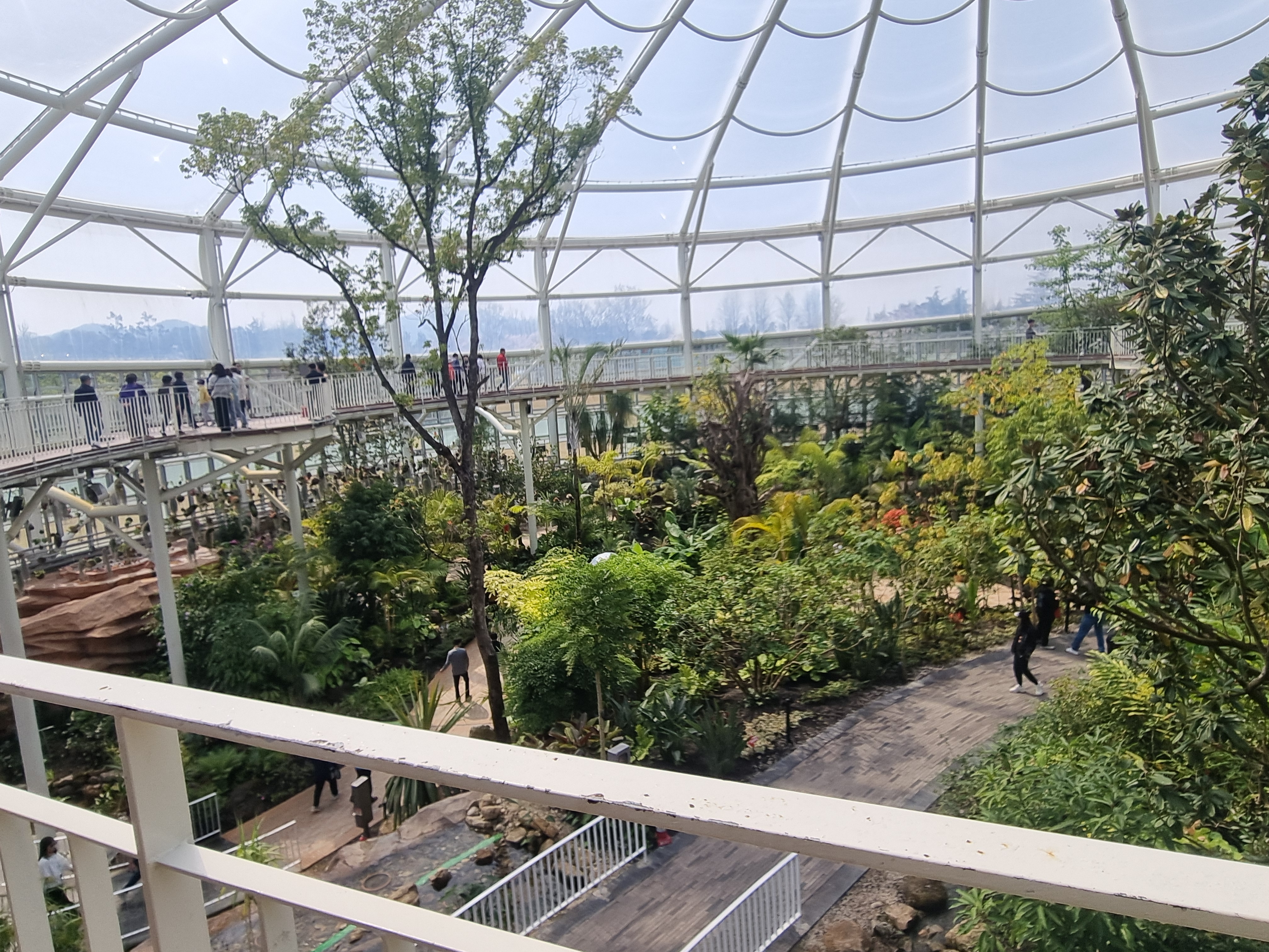 실내정원을 2층에서 가로지르는 길에서 보는 아래 풍경인데 이것도 멋있습니다. 이곳은 봄, 여름, 가을, 겨울에 상관없이 항상 일정한 온도가 유지되기 때문에 계절에 상관없이 편안하게 구경할 수 있습니다.