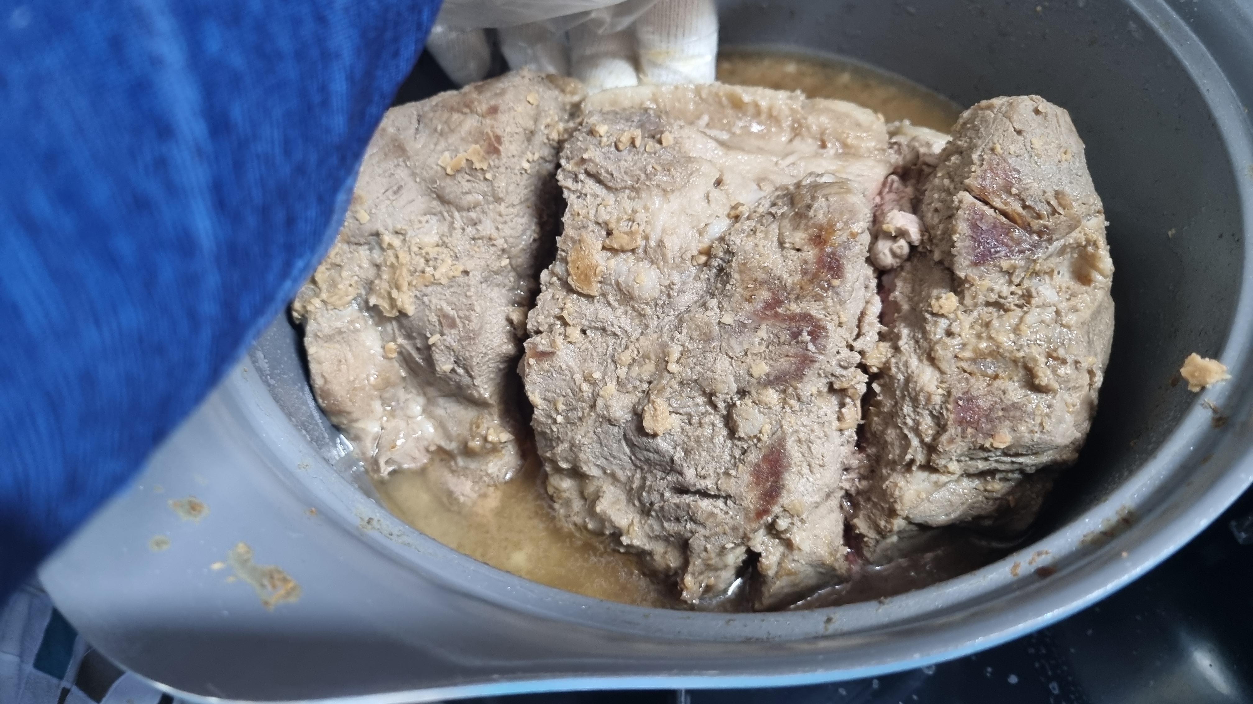 먼저 고기 덩어리를 크기를 적당하게 잘라야 하는데 두껍게 자를 필요 없이 최대 두께가 5센티 정도 하면 적당합니다, 예전에는 큰 덩어리를 그대로 삶는 경우가 많았는데 이렇게 하면 삶는 시간도 오래 걸리고 양념이 깊숙이 들어가지 않아 맛도 더 떨어지게 됩니다.