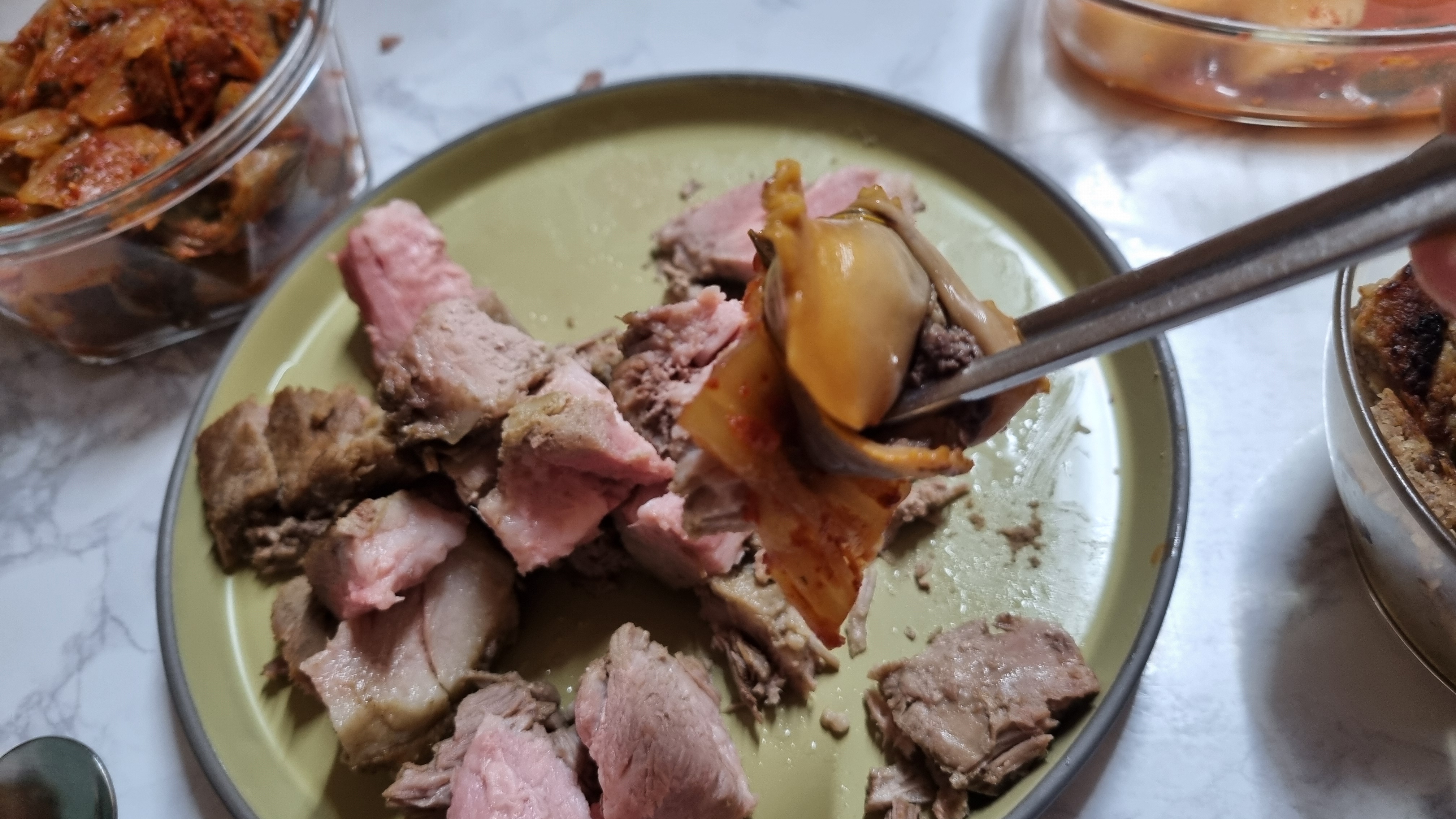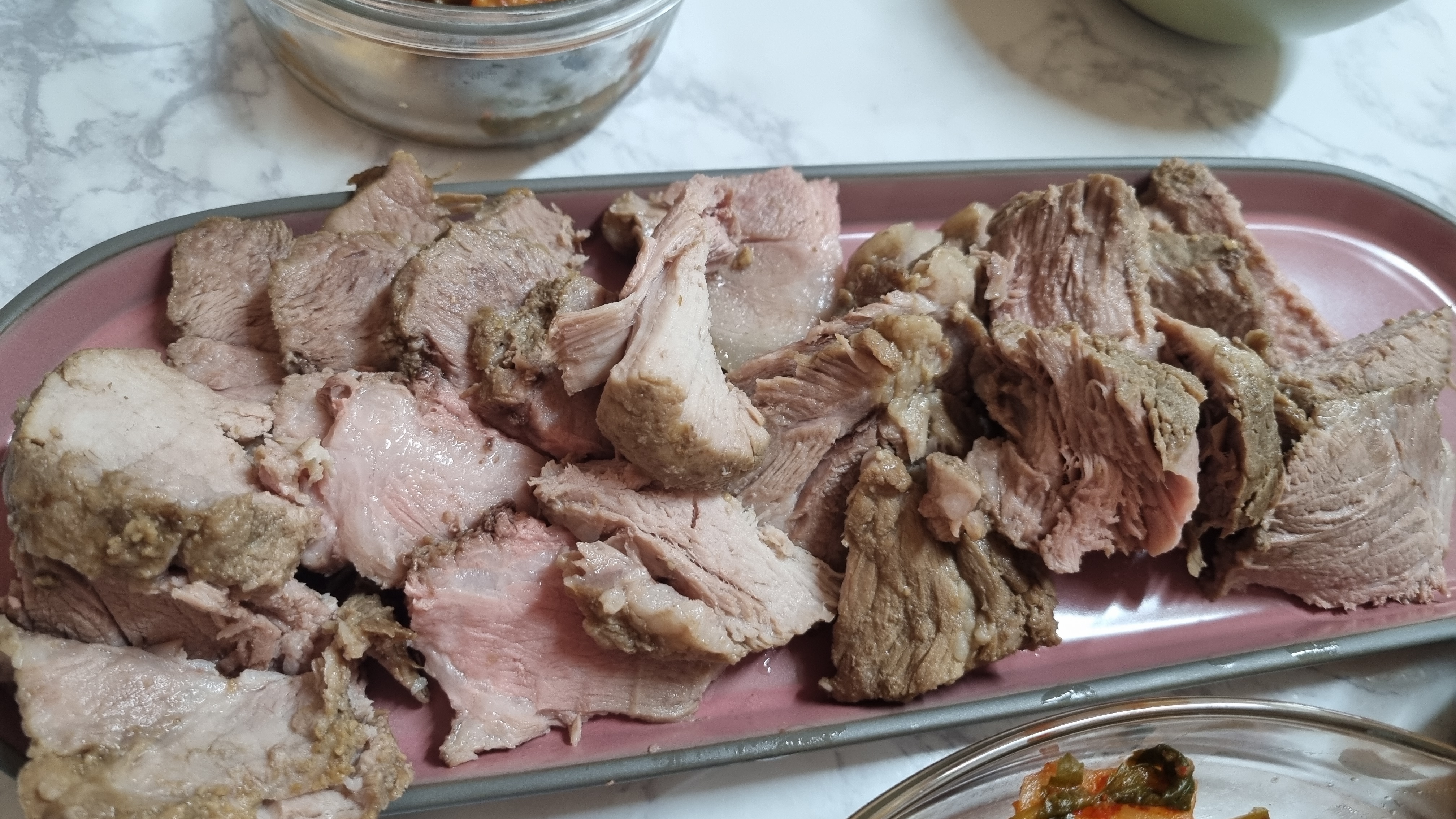 오늘 저녁식사로 수육에 묵은지 김치와 함께 하니 정말 맛있습니다.