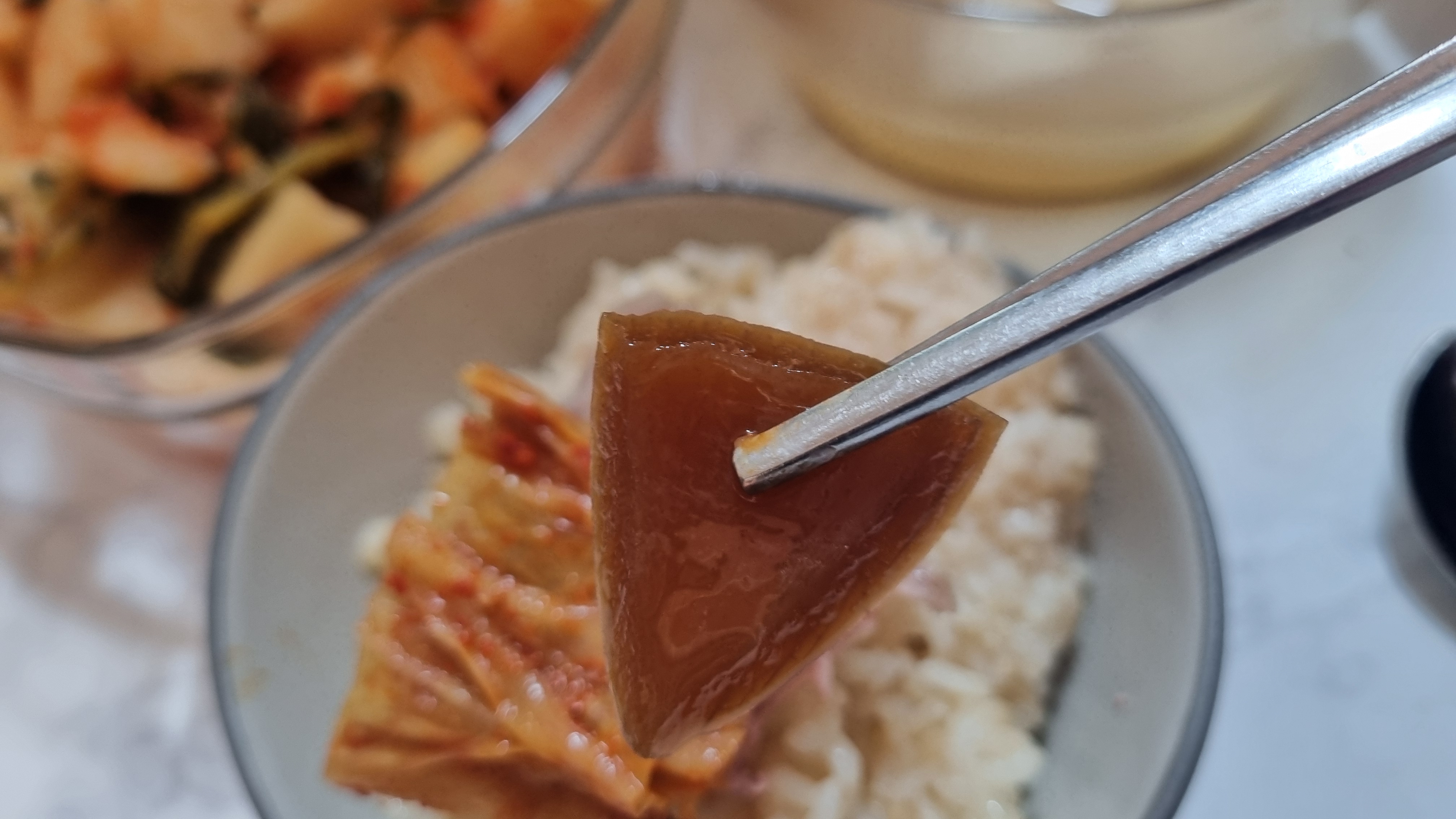 마늘이나 양파 장아찌가 있으면 함께하시고 상추에 함께 쌈을 하시면 더 좋습니다.