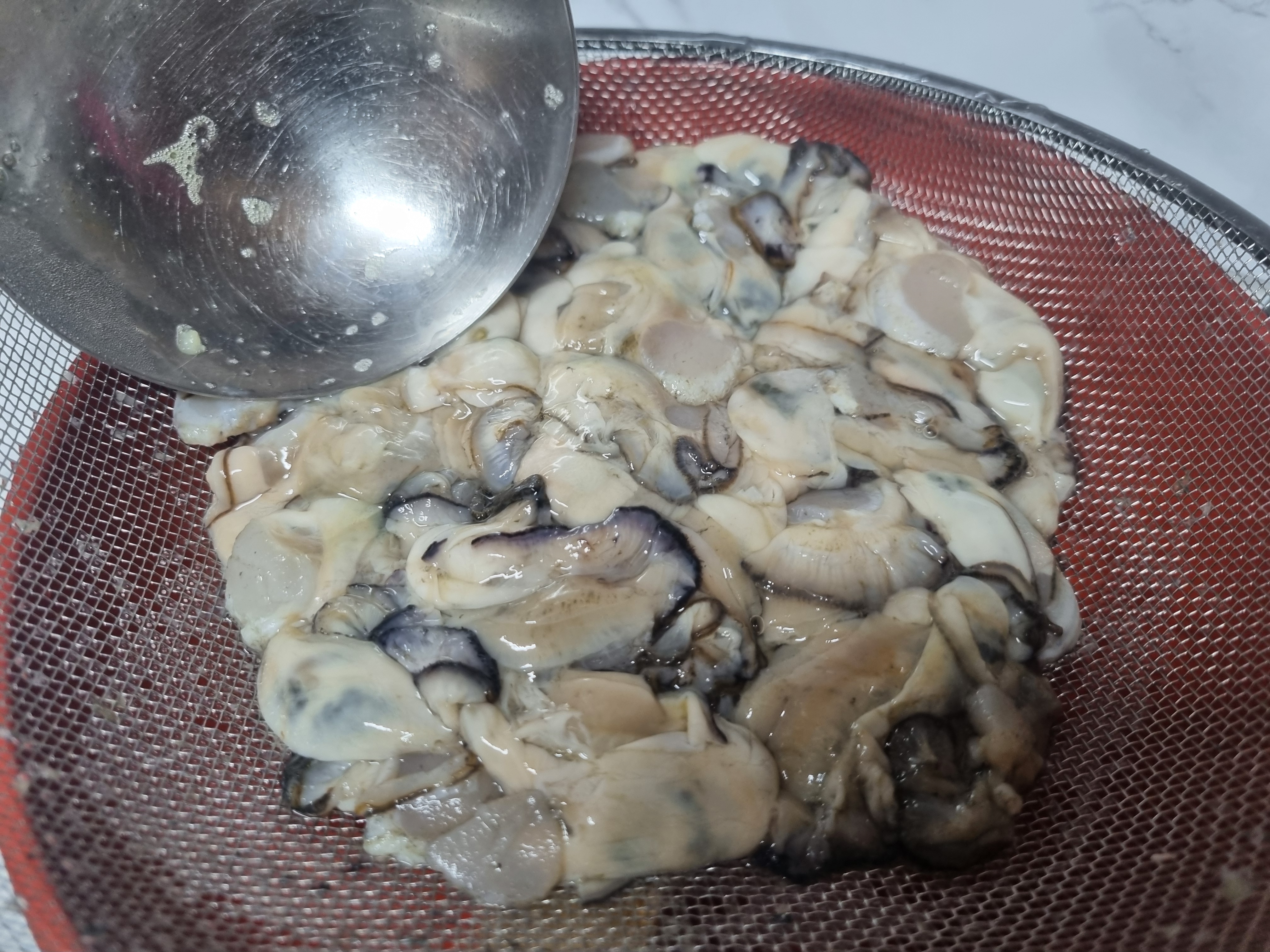 이때 소금도 넣는데 굴이 시원한 맛을 내기 때문에 소금은 반수저 정도 넣으시면 적당하며 절단 짭짤한 맛이 날 정도로 넣으시면 안 됩니다.