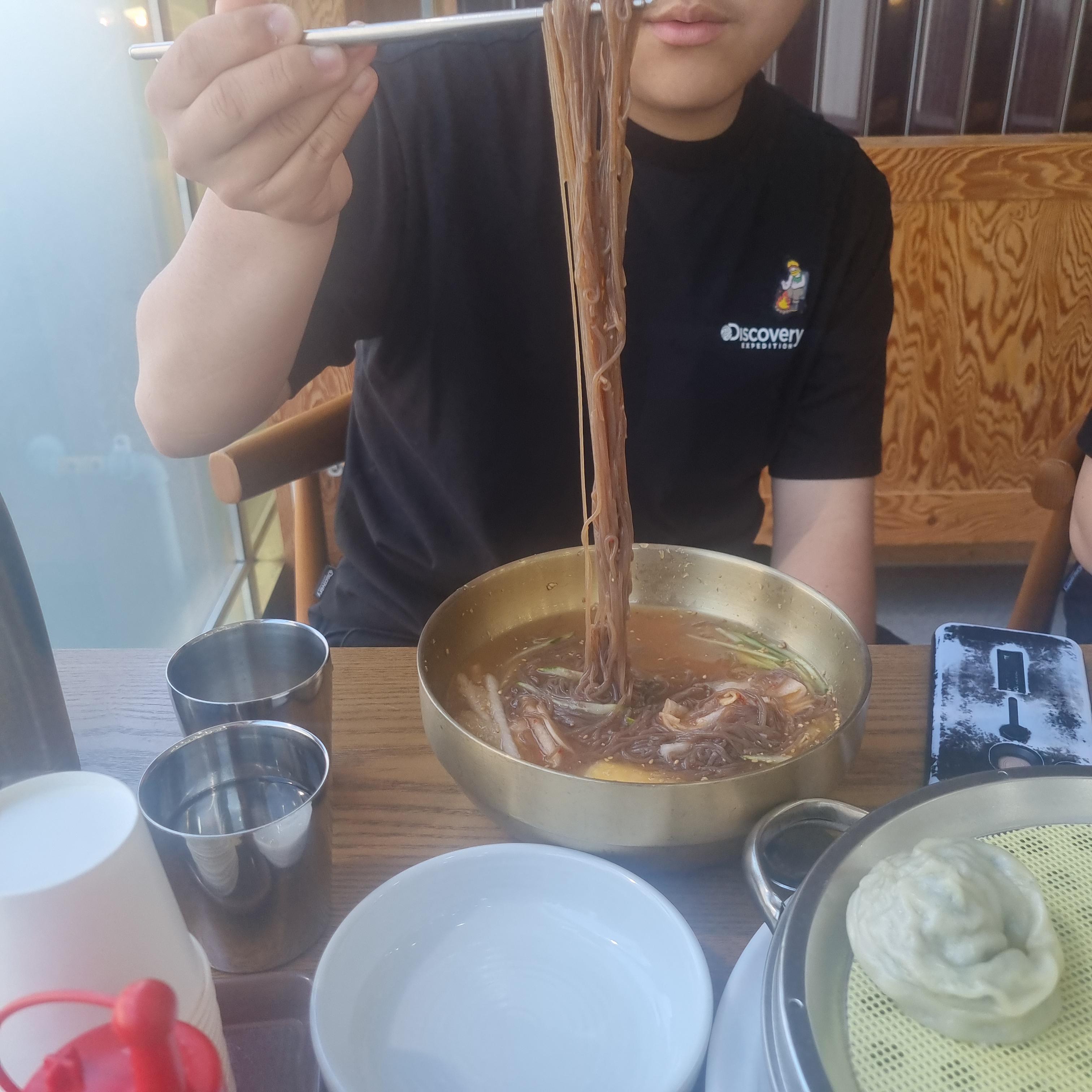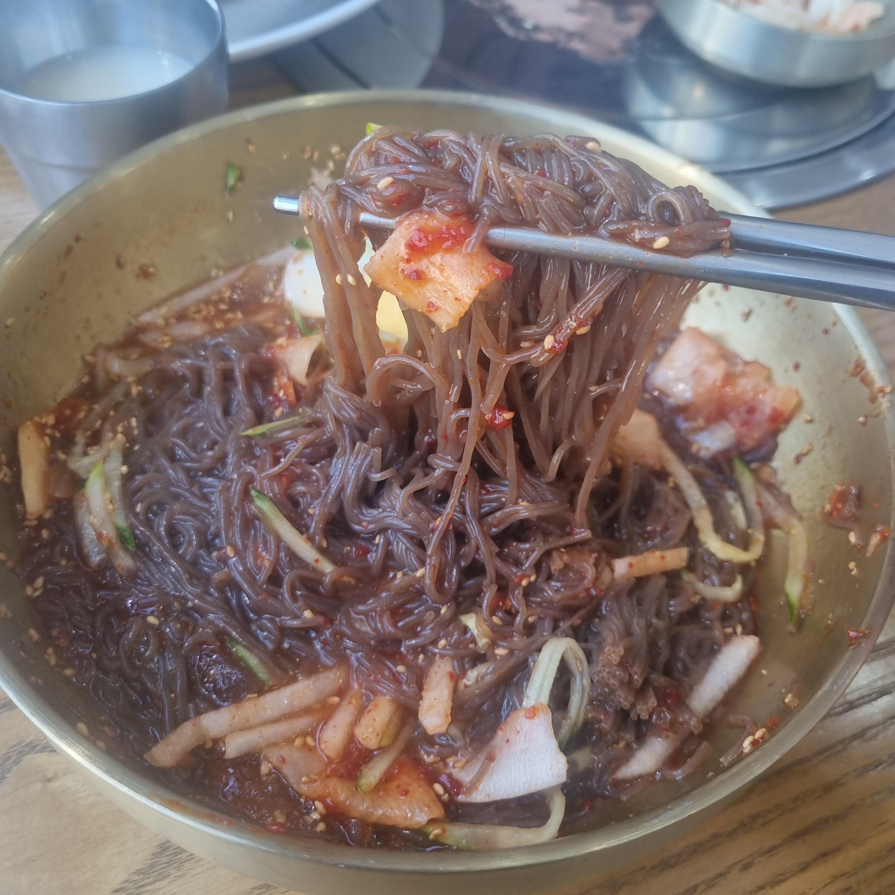 물냉면입니다. 시원한 육수에 면은 칡냉면 같은 느낌이 드는데 정말 쫄깃하면서도 질기지 않은 맛으로 역시 시원함과 맛이 최고입니다.