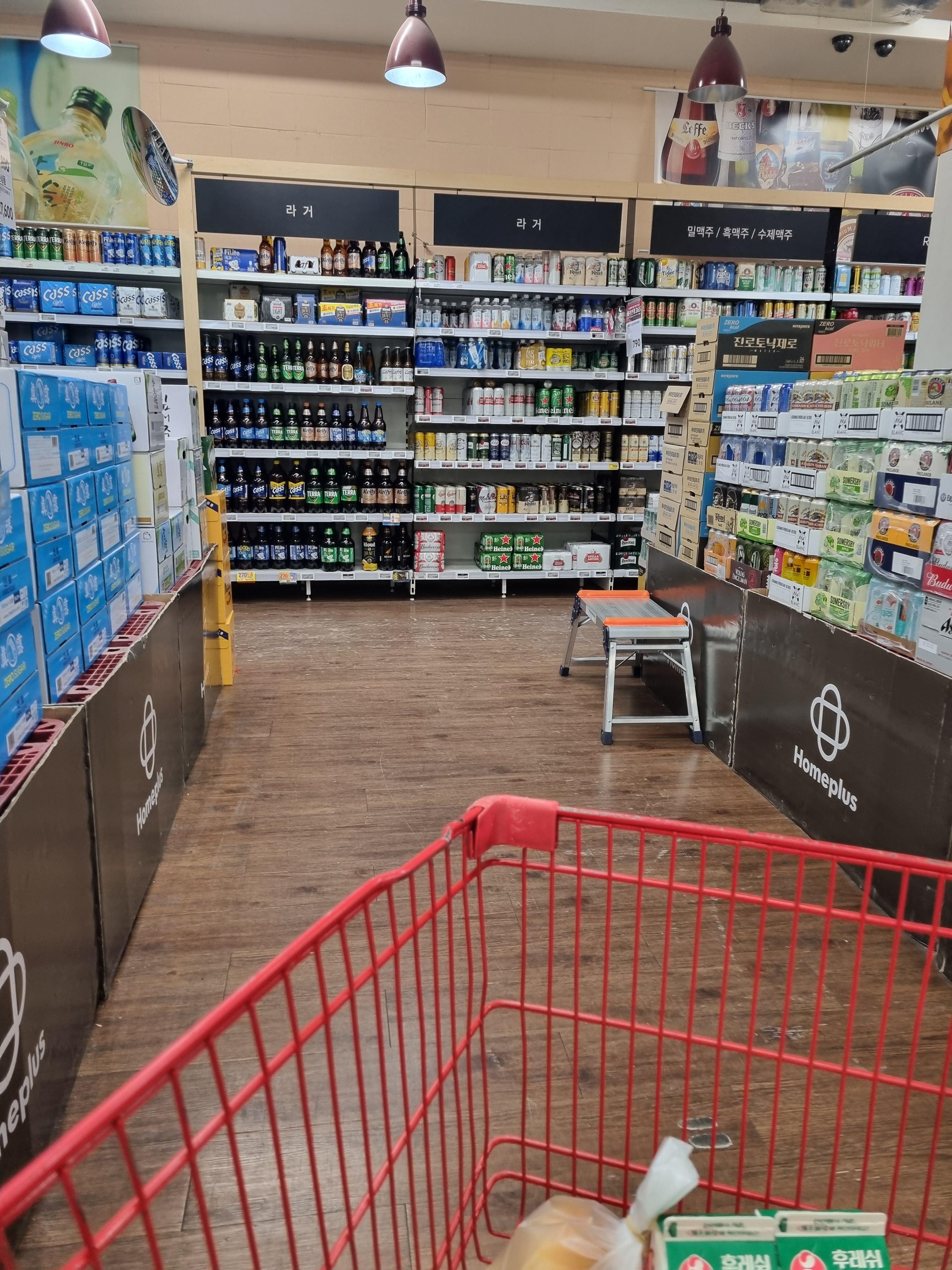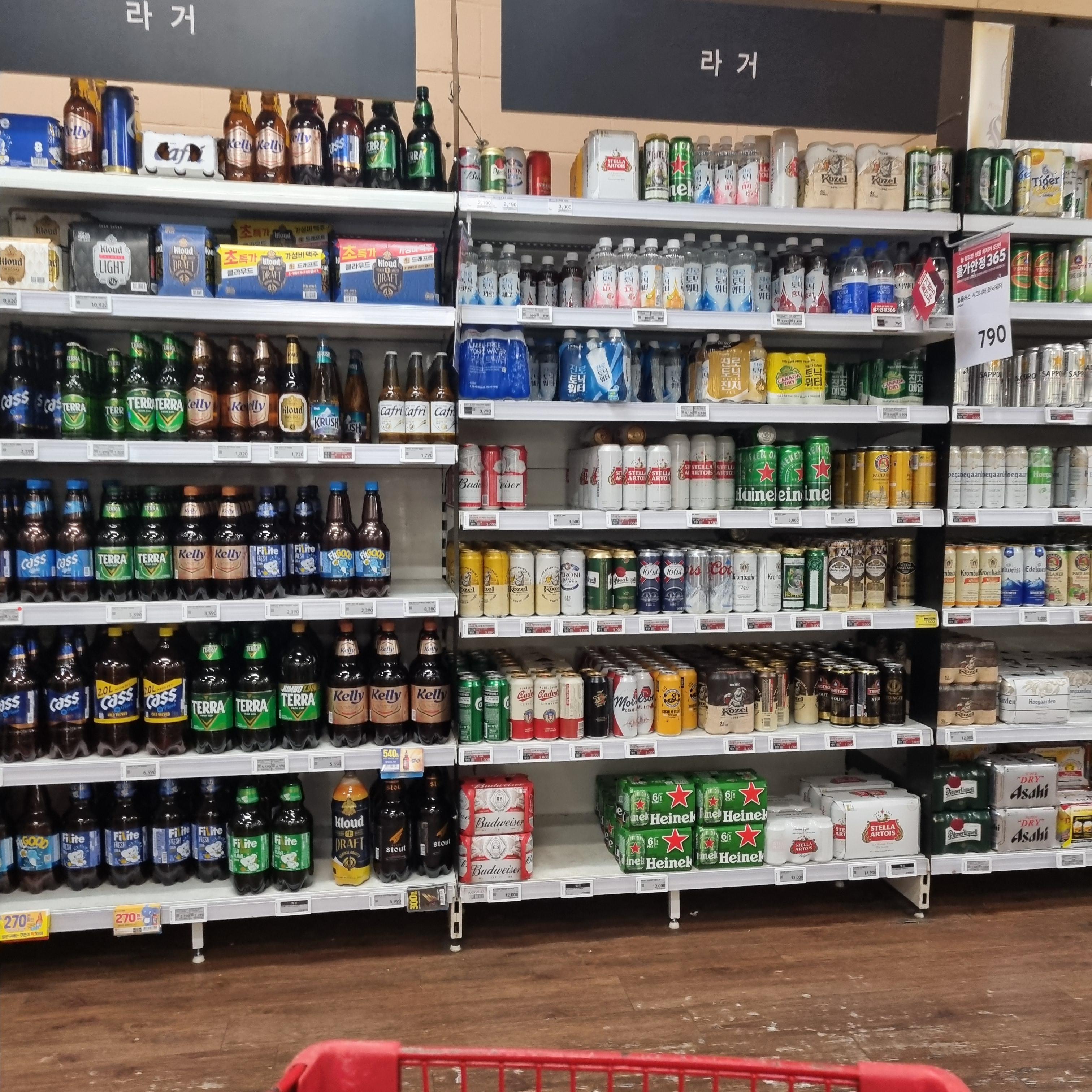 닭요리관련하여 구입할 예정인데 먼저 보이는것이 주류코너였는데 500ml 수입 캔맥주가 5캔에 9,900원에 판매하였는데 여러 번 이곳을 방문할 때마다 프로모션이 진행되어 꼭 구입합니다.