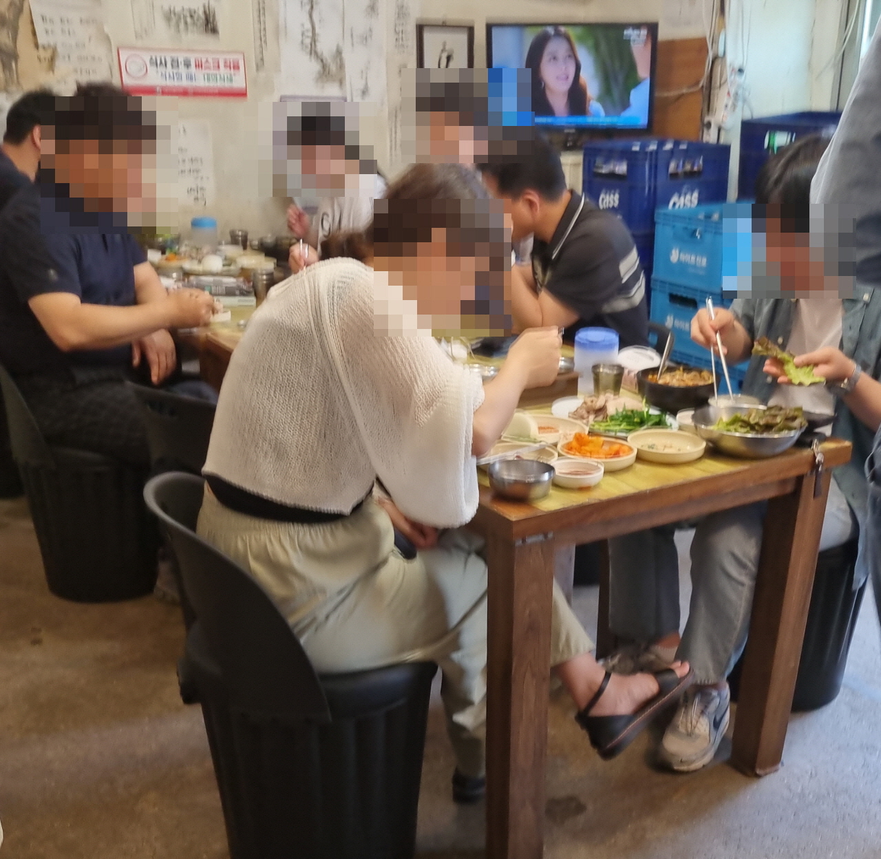 안쪽으로 안내되어 들어와 겨우 자리를 잡았고 입식이 아닌 좌식 테이블에 일행이 자리를 앉았습니다.