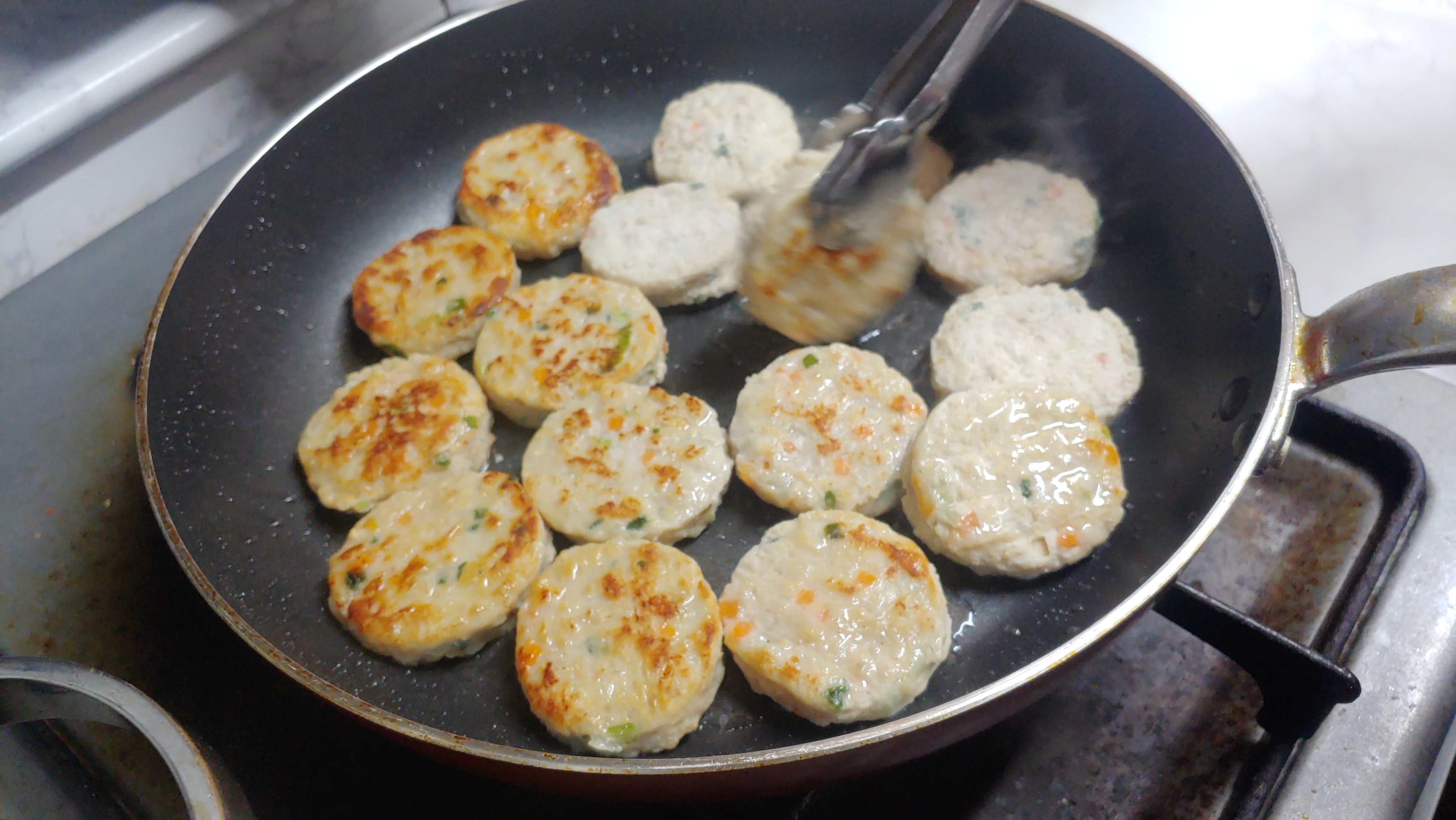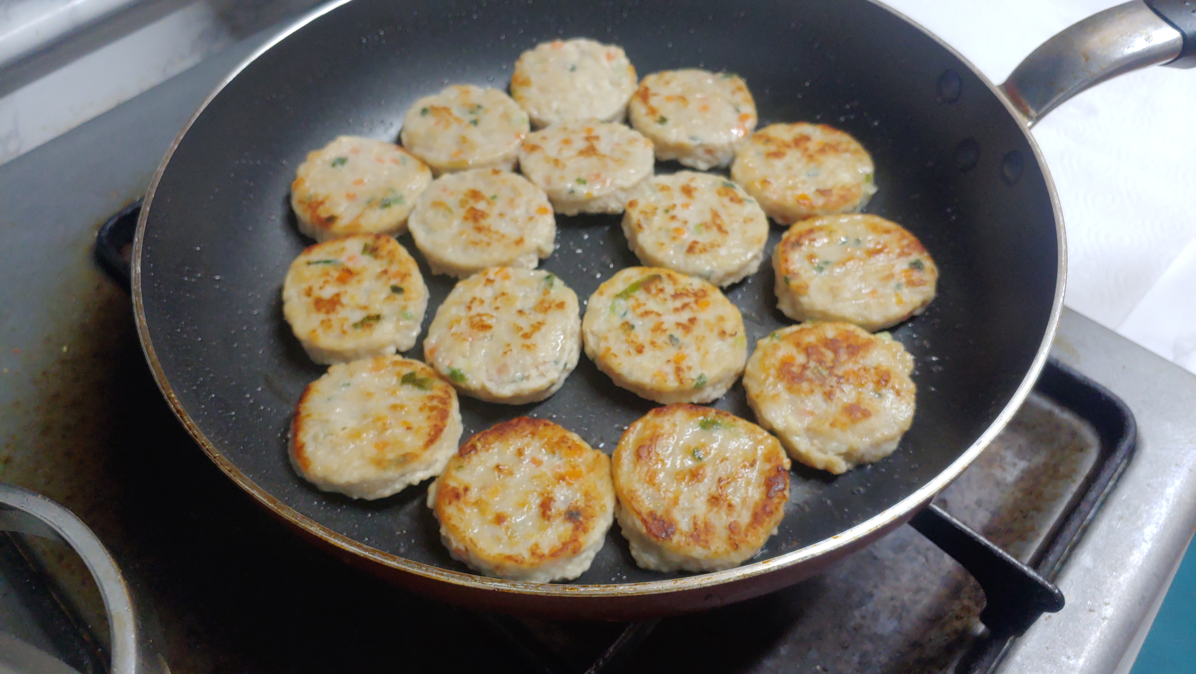 순수하게 동그랑땡만 프라이팬에 살짝 구워도 맛에서는 차이가 없이