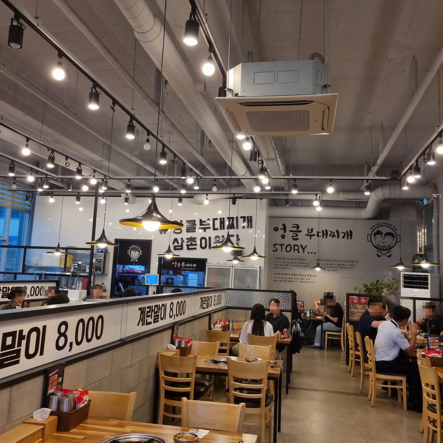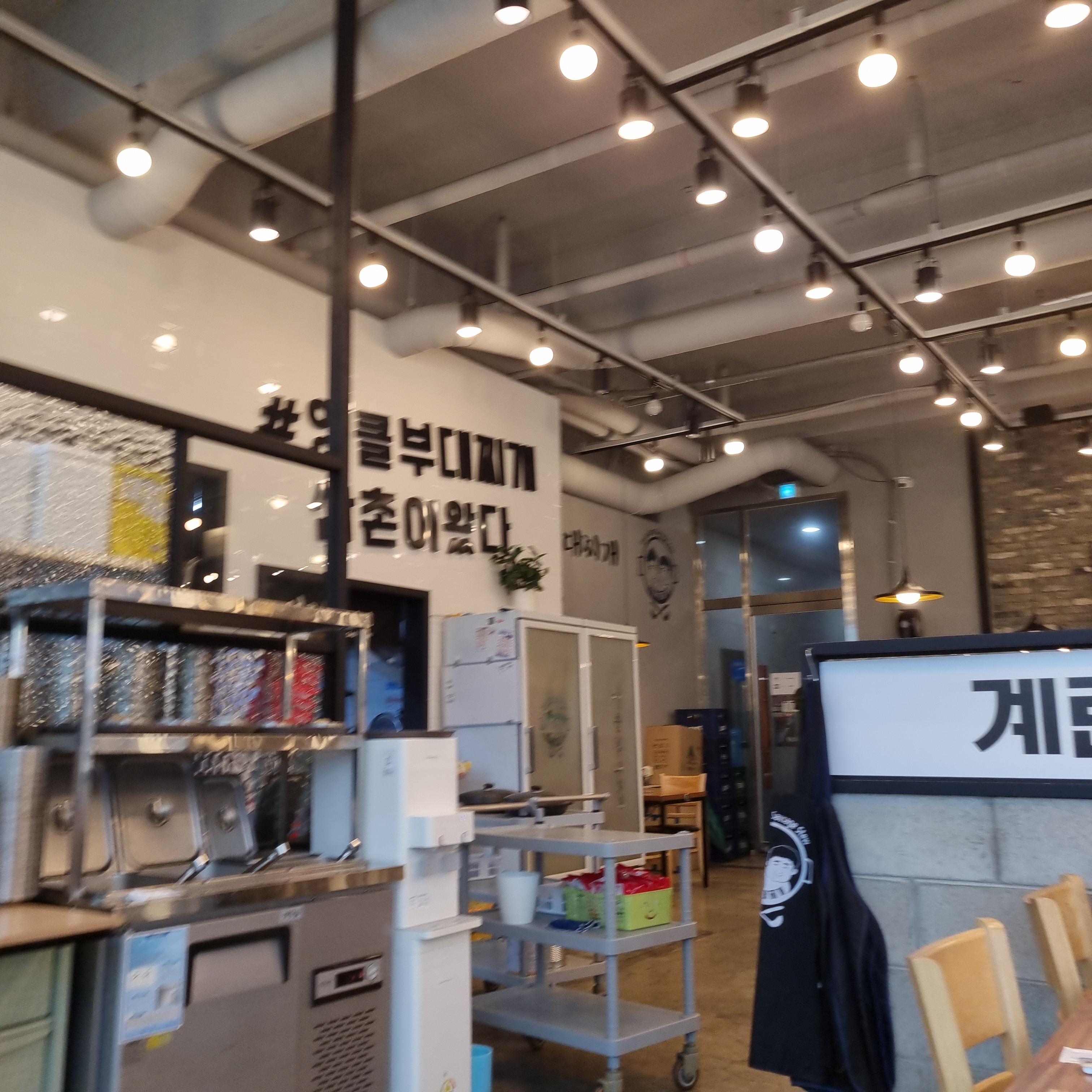 매장에 상당히 넓고 깔끔하며 식사하기 좋은 분위기입니다, 점심시간에는 손님들이 상당히 많았으며 대부분 부대찌개를 드시고 있습니다.