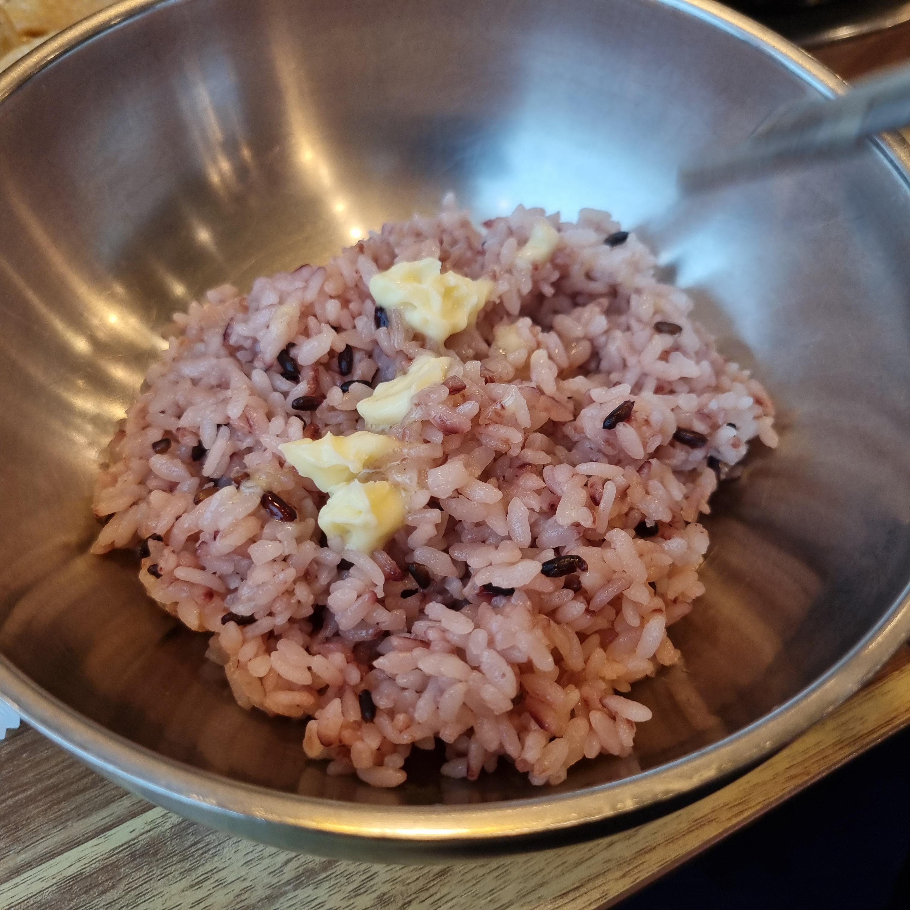 특이한 것은 버터인 듯하는데 이것이 테이블이 모두 있어 원하는 분들은 미리 밥에 비벼 드실 수 있는데 생각보다 맛있습니다.