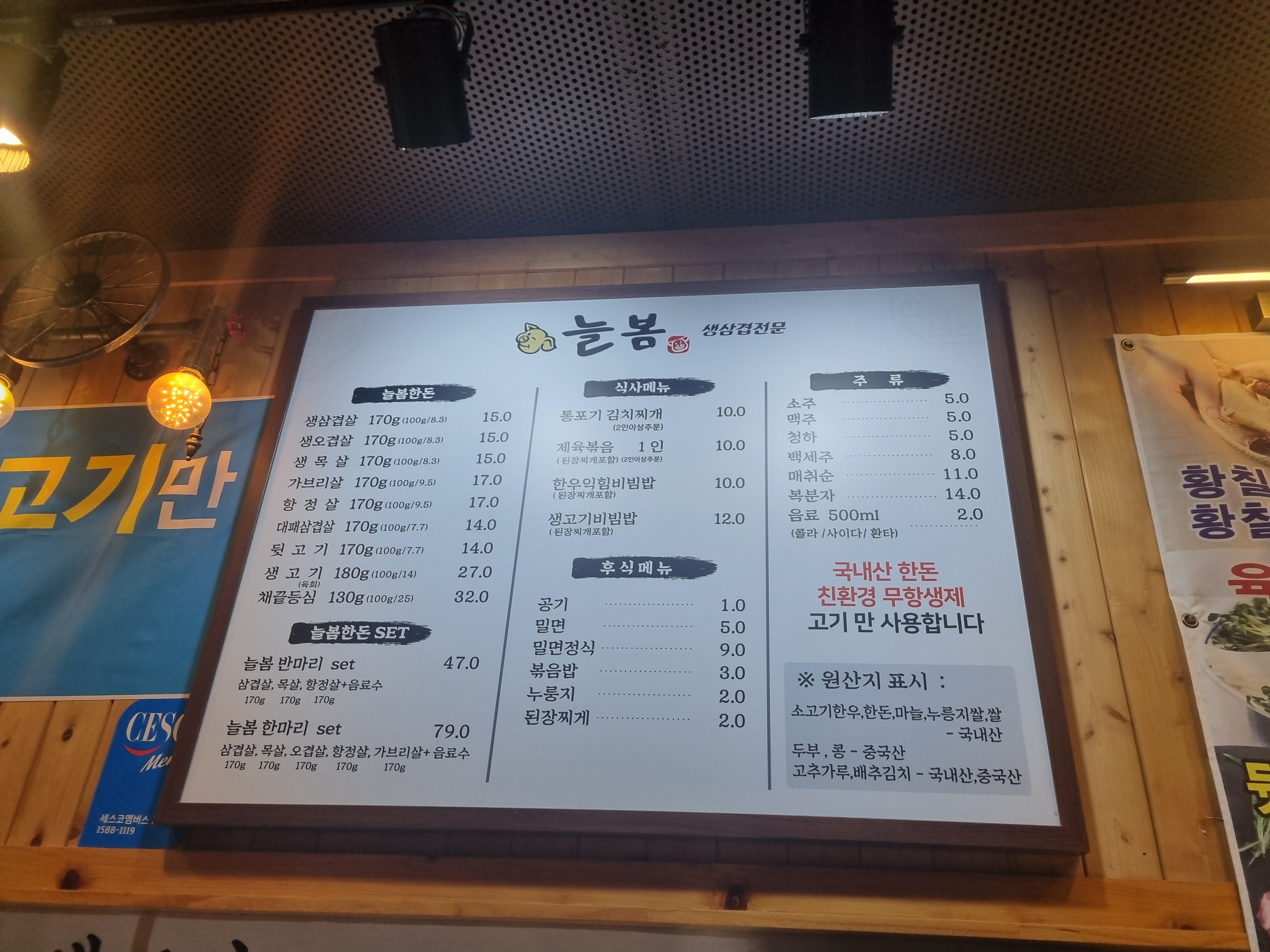 돼지고기 전문인데 생삼겹살이 170g에 15,000원으로 그냥 무난한 가격이니다.