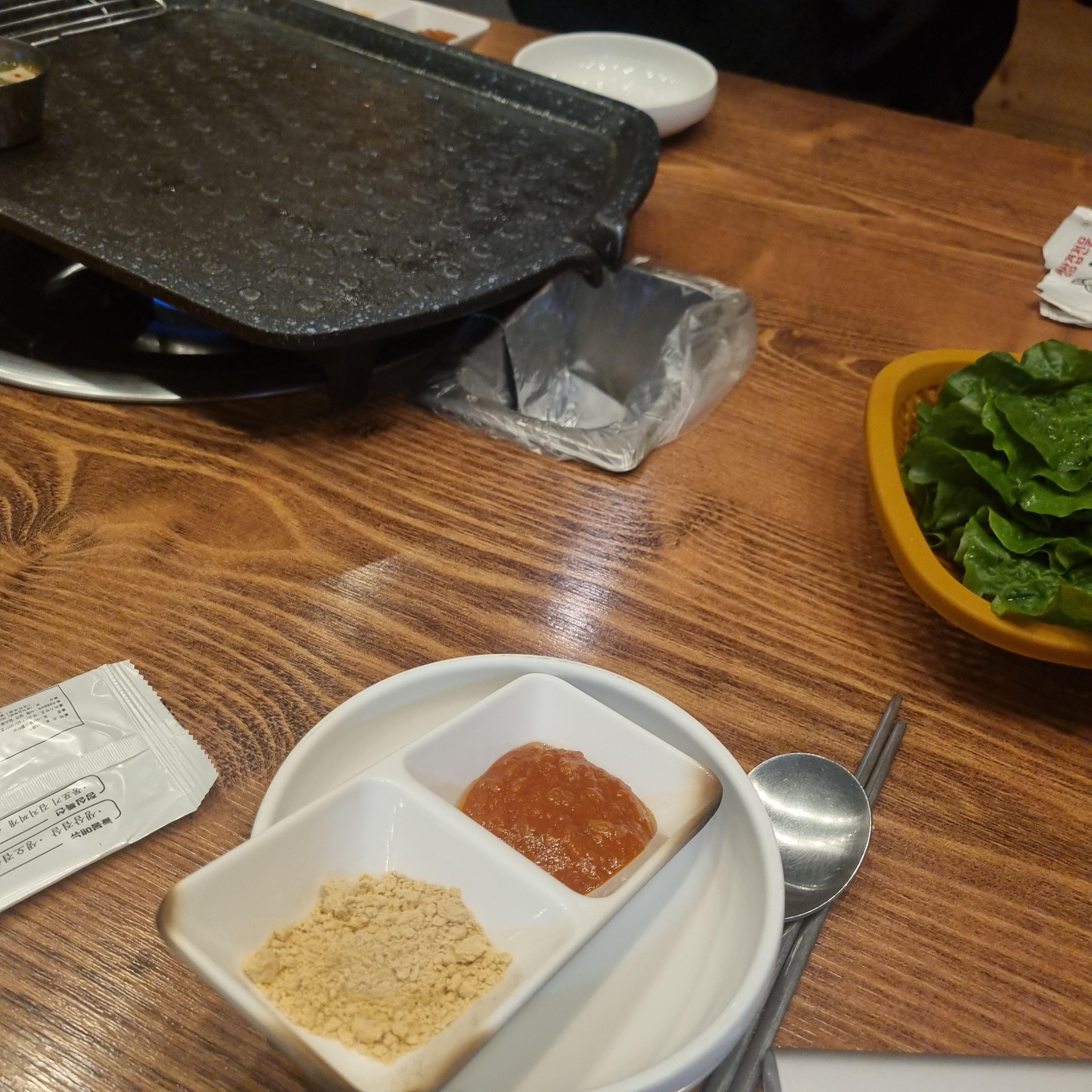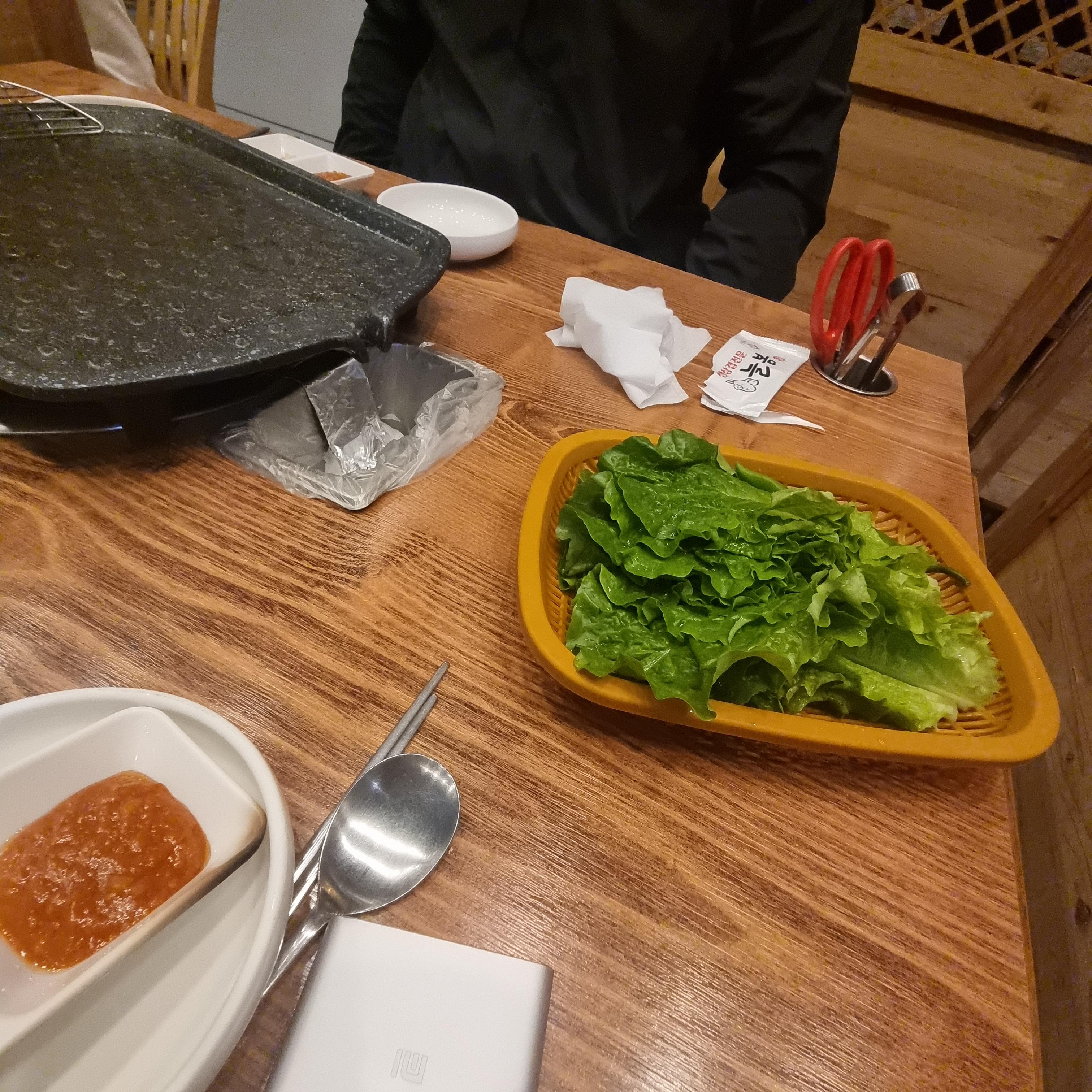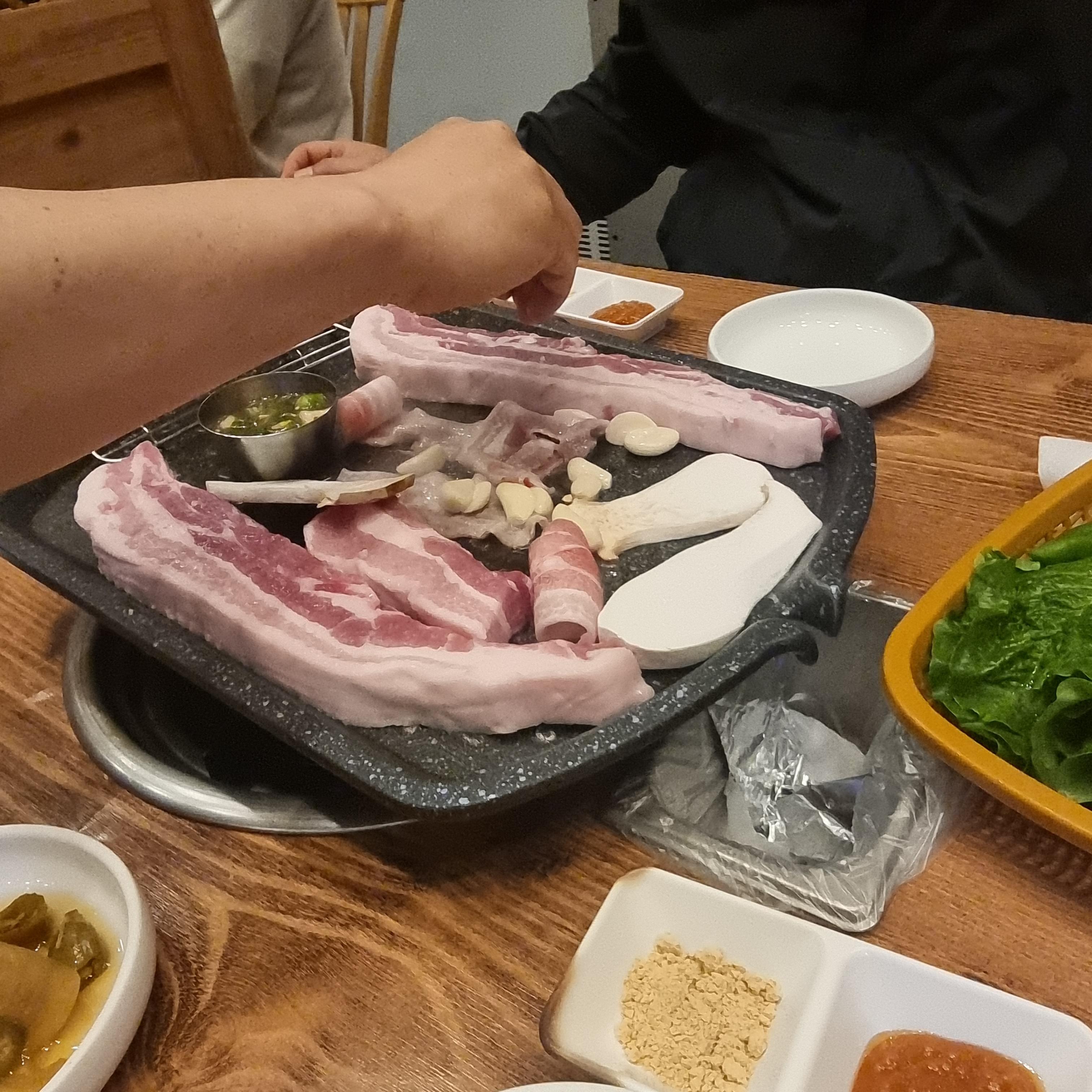 우리는 삼겹살을 주문했는데 상당히 두껍게 나오는데 굽는 시간은 조금 걸릴 수 있지만 이런 것이 맛은 더 좋습니다.