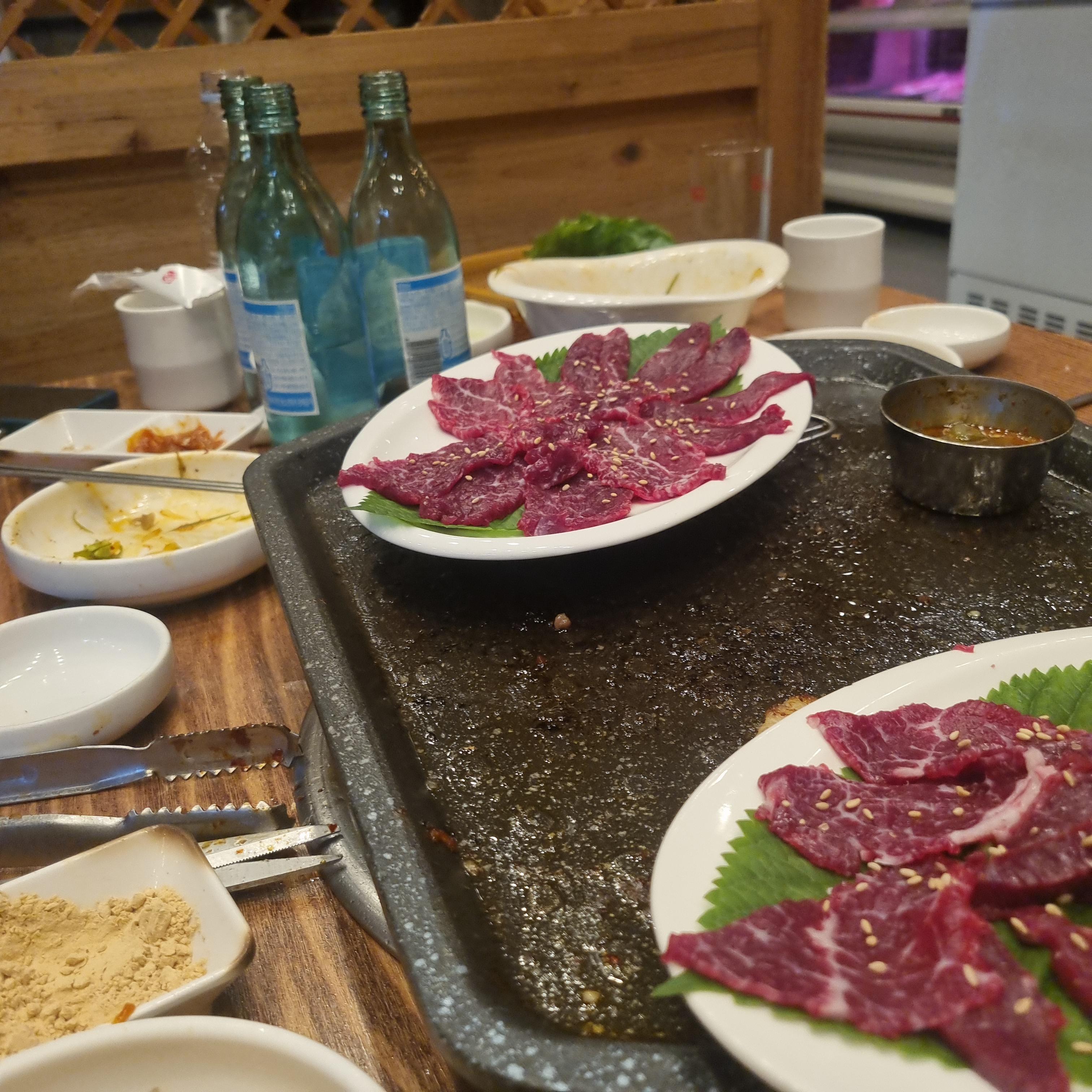 분위기도 좋고 고기도 맛있고 서비스도 괜찮았으며 고기를 적당히 먹고 한잔 더 하기 위해 생고기 즉 소고기 사시미를 주문했습니다.