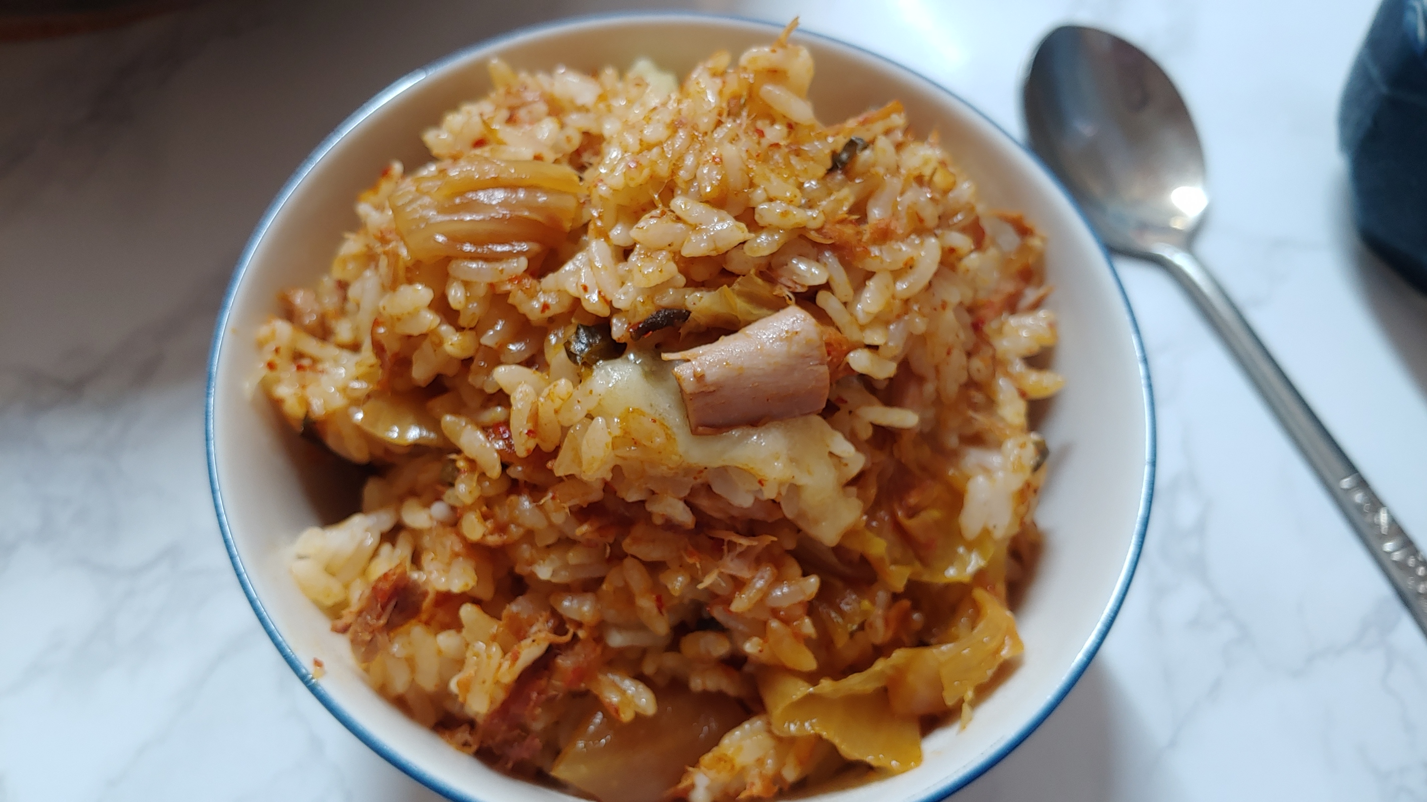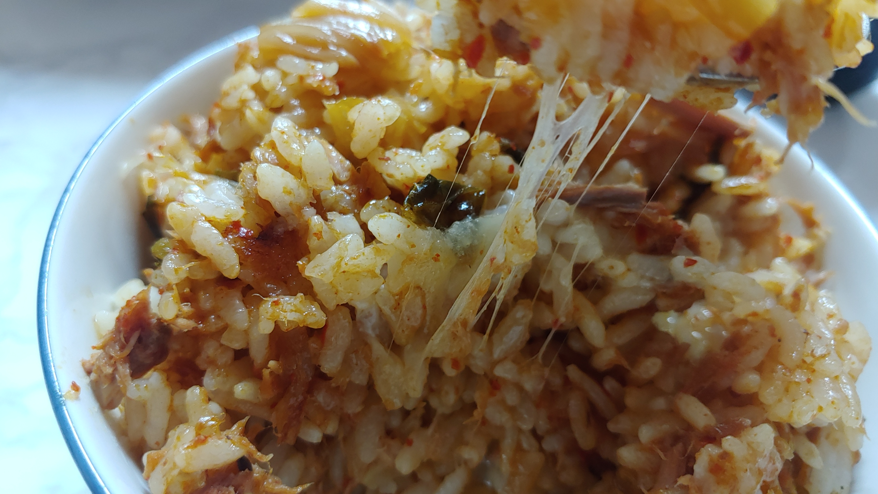 이렇게 완성된 치즈 김치볶음밥입니다