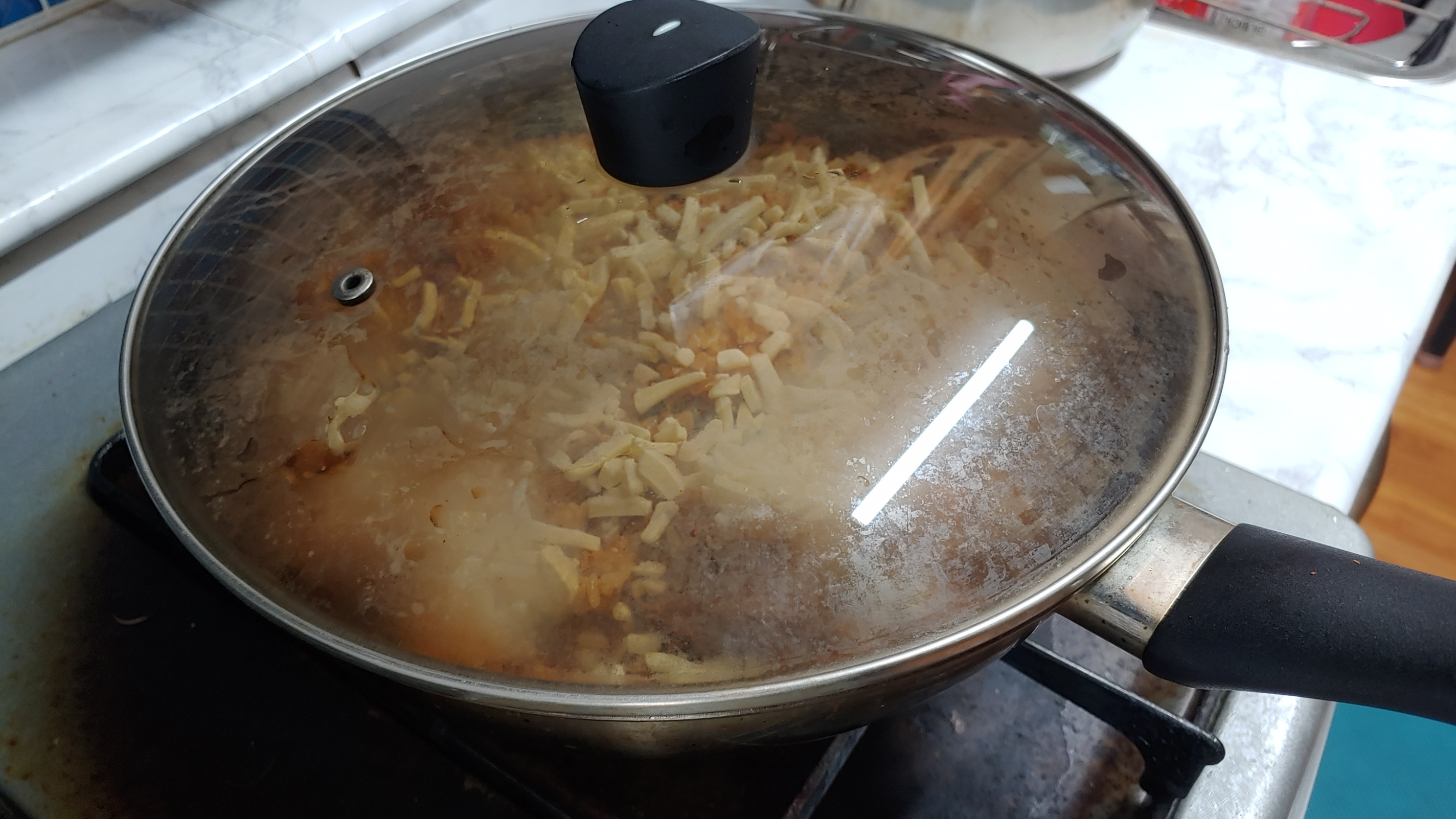 5분정도 지나 냄비 뚜껑을 열었습니다