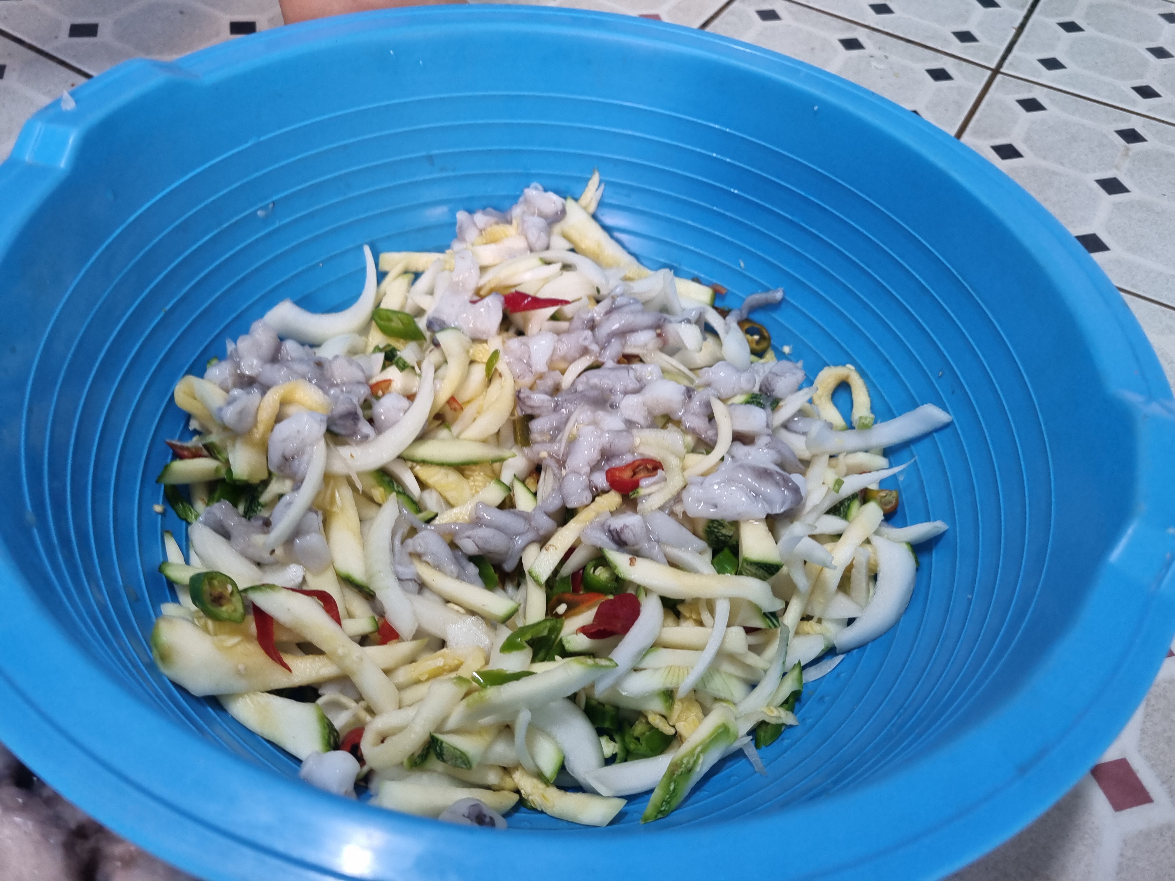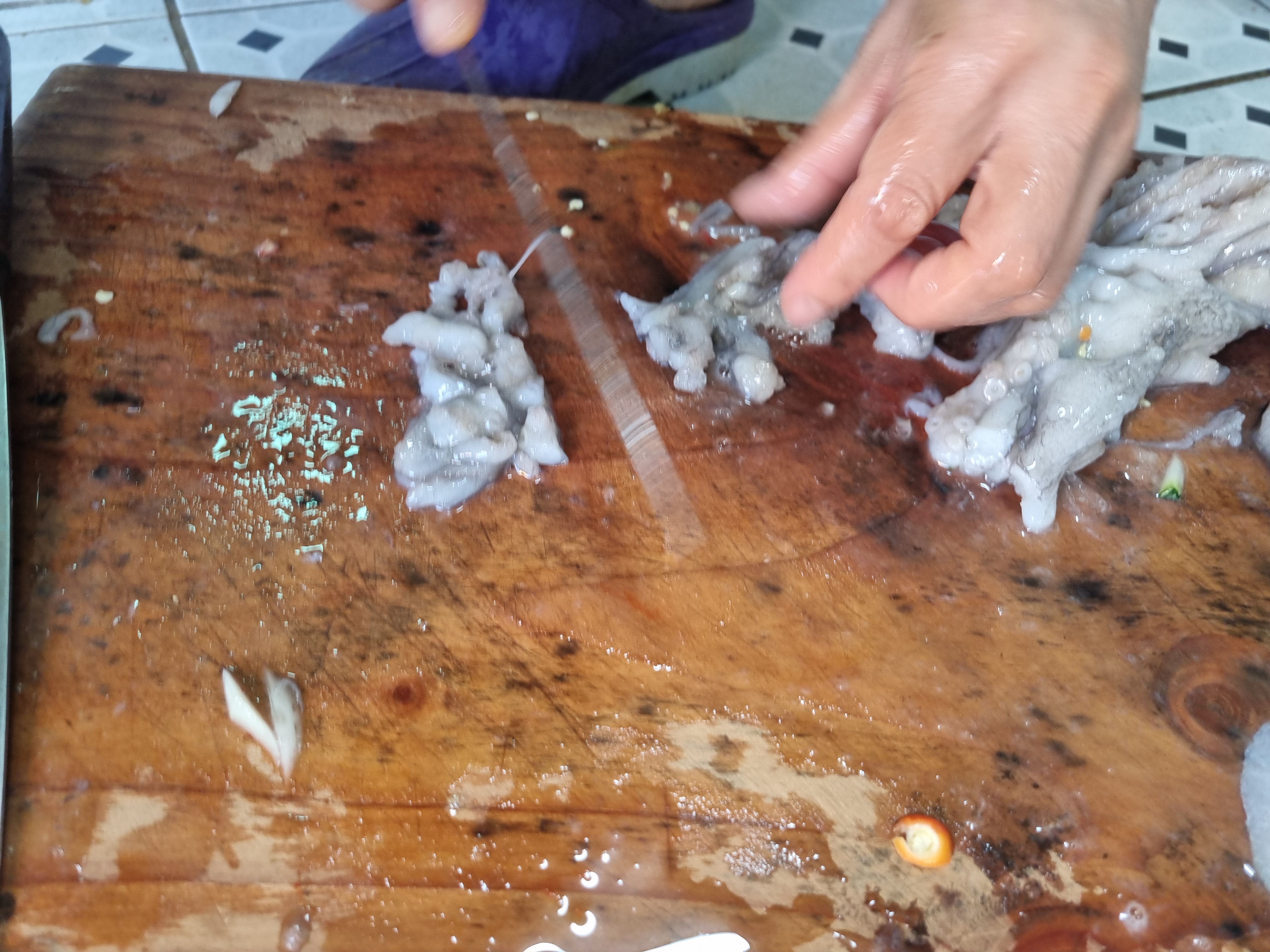 낚지는 3센티 이하로 자르는 것이 좋고 낙지가 없으면 오징어나 주꾸미도 괜찮고 이것도 없으면 그냥 생략하고 만들어도 상관없습니다.