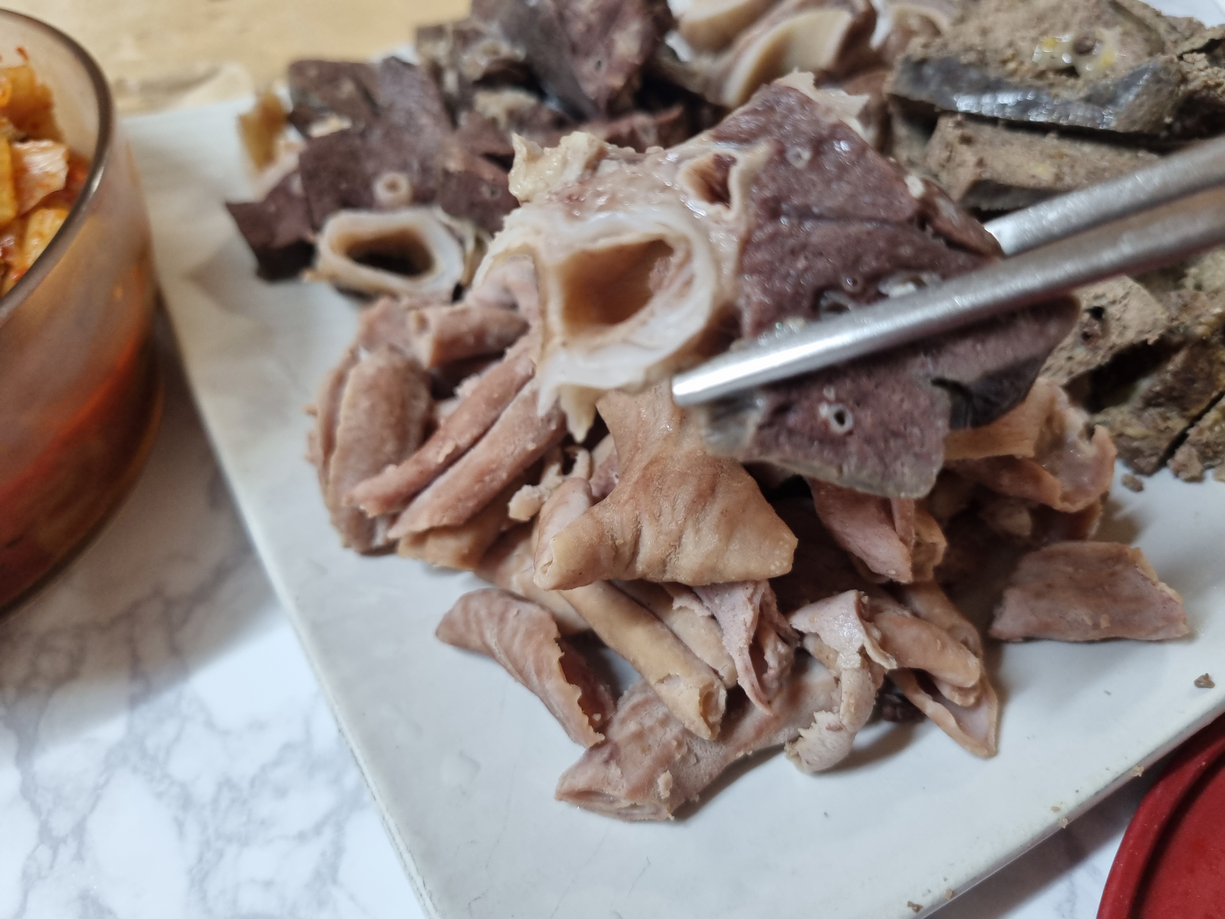 데우는 시간은 가스렌인지 중간불에서 7분정도였는데 내장은 7~10분 정도가 적당하고 순대는 5~7분 정도가 적당하였습니다.