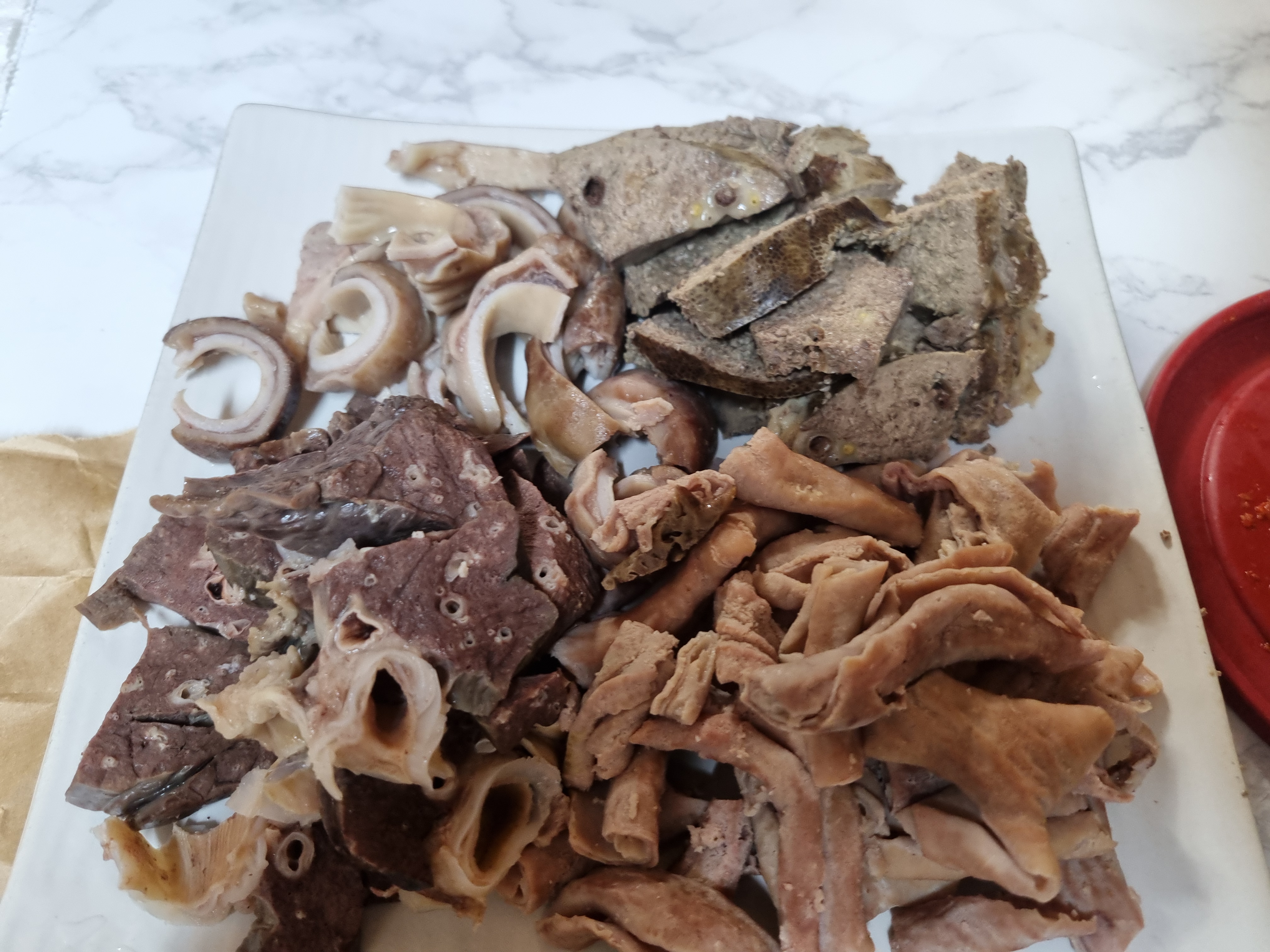 이것은 돼지부속인데 한꺼번에 여러 내장들이 한꺼번에 포장되어 판매됩니다.