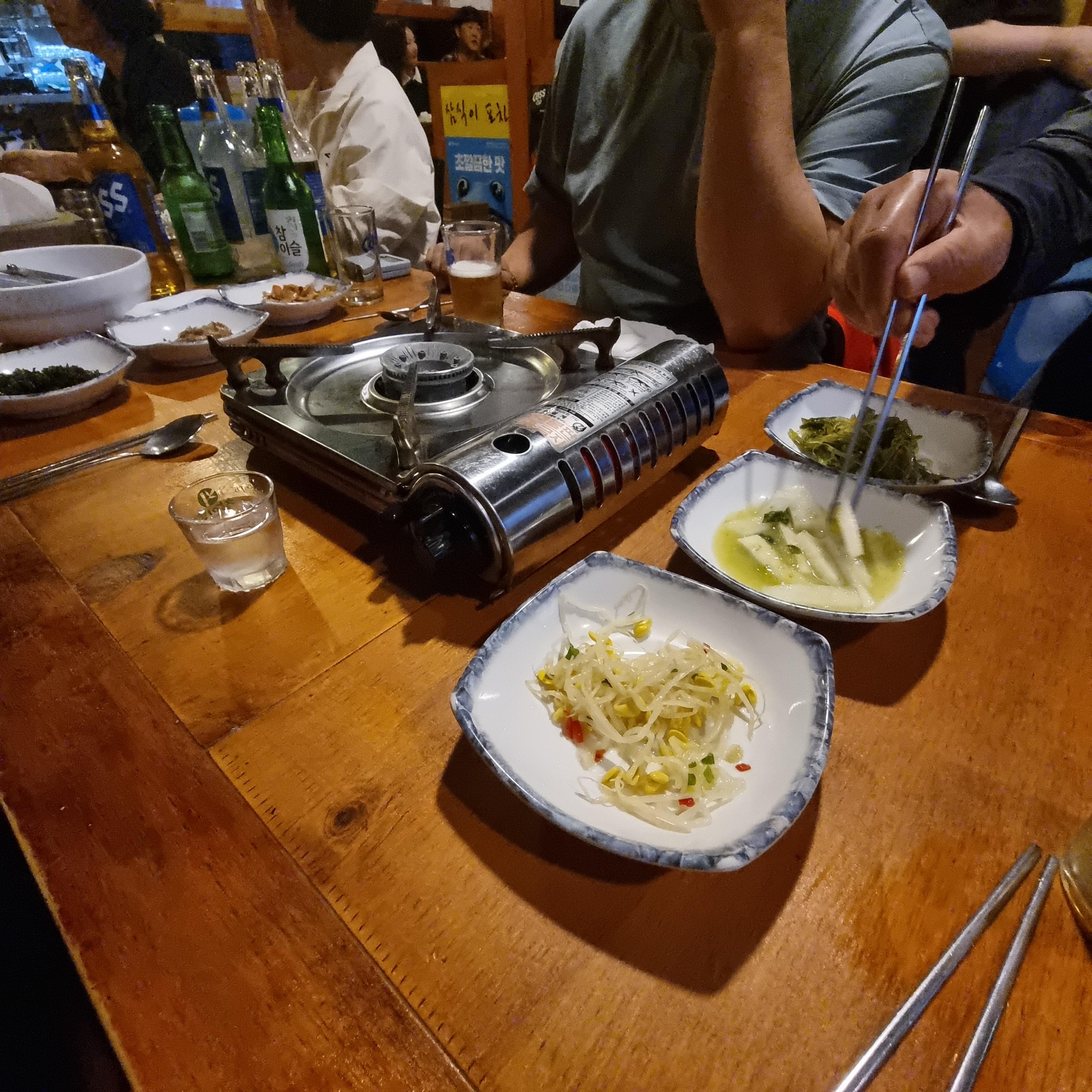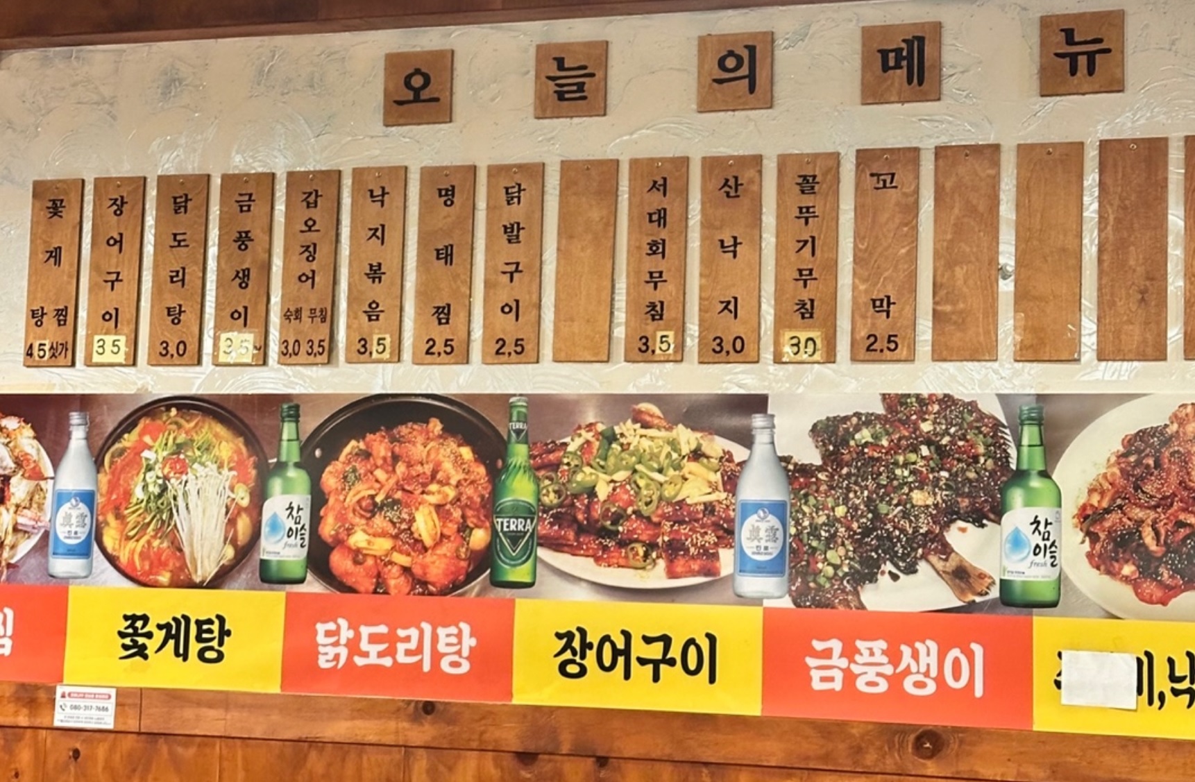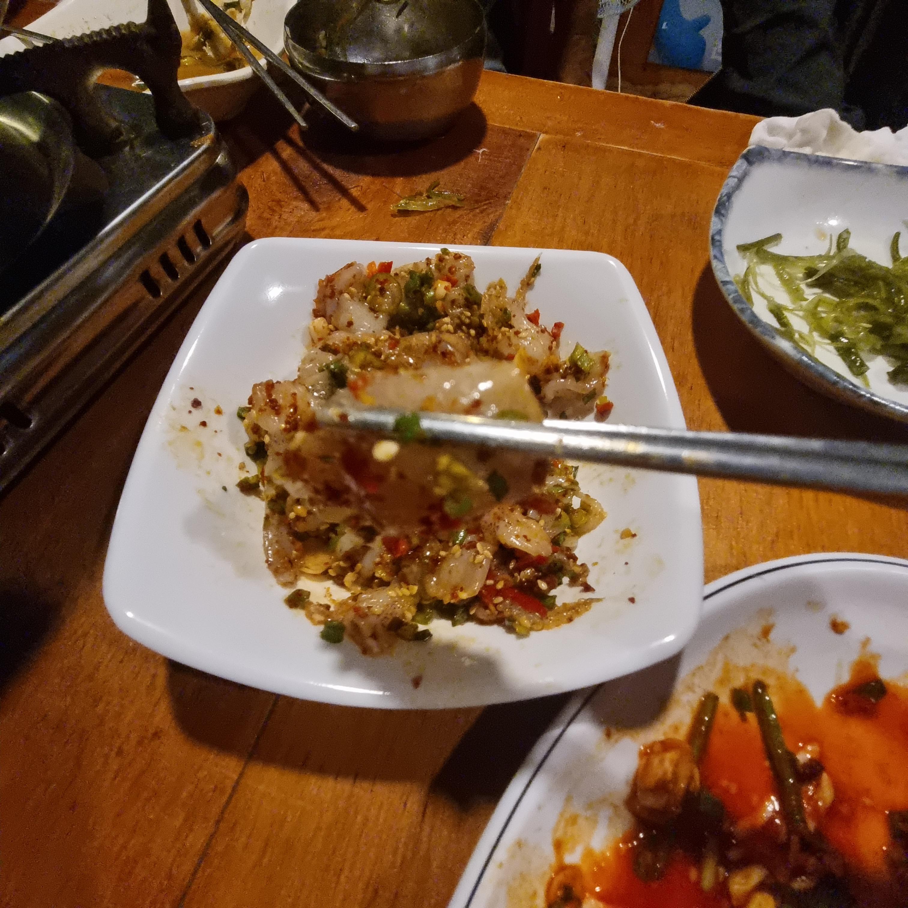 우리는 꽃게탕과 꼴뚜기무침을 먼저 주문했습니다.