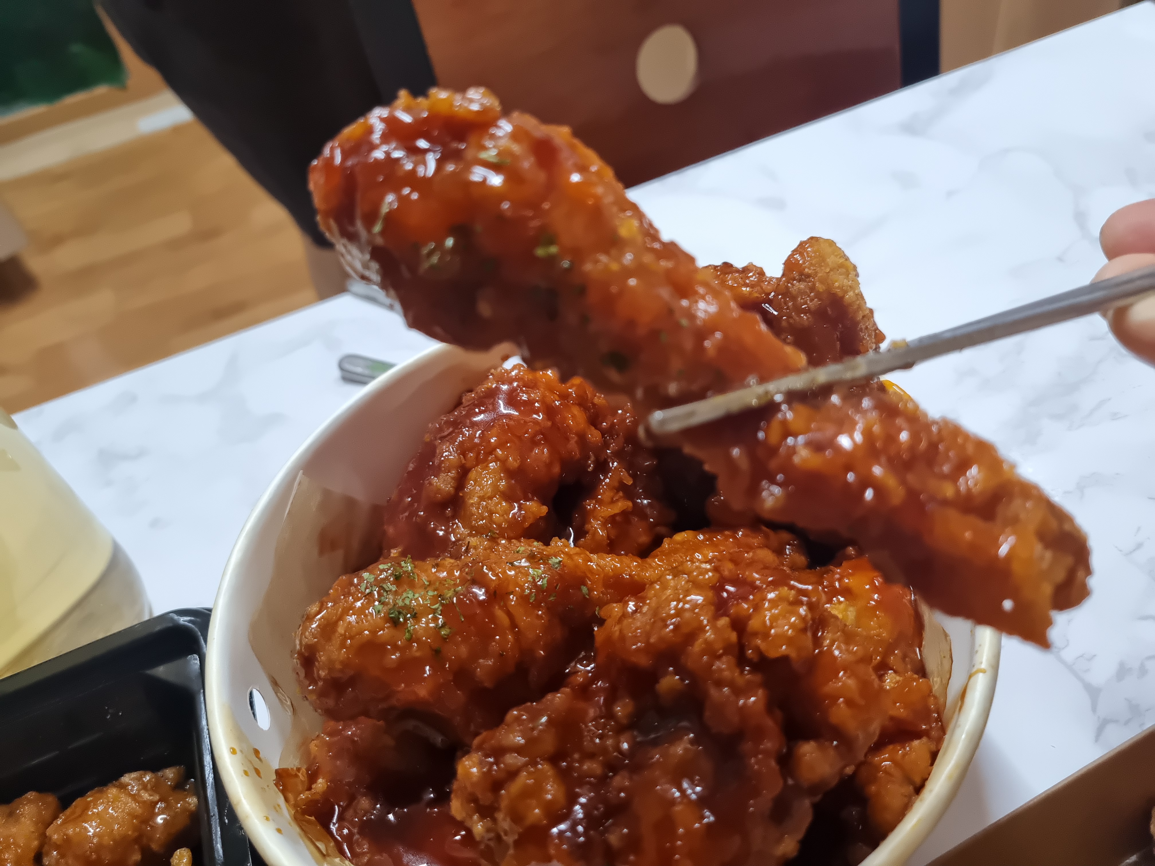 맛도 정말 좋습니다. 다만 따뜻하지 않은 것이 단점이지만 먹다 보면 별로 문제가 되지 않고 충분히 맛있게 먹을 수 있고 특히 강정이나 양념은 따뜻하지 않아도 맛에서 아무런 상관이 없습니다.