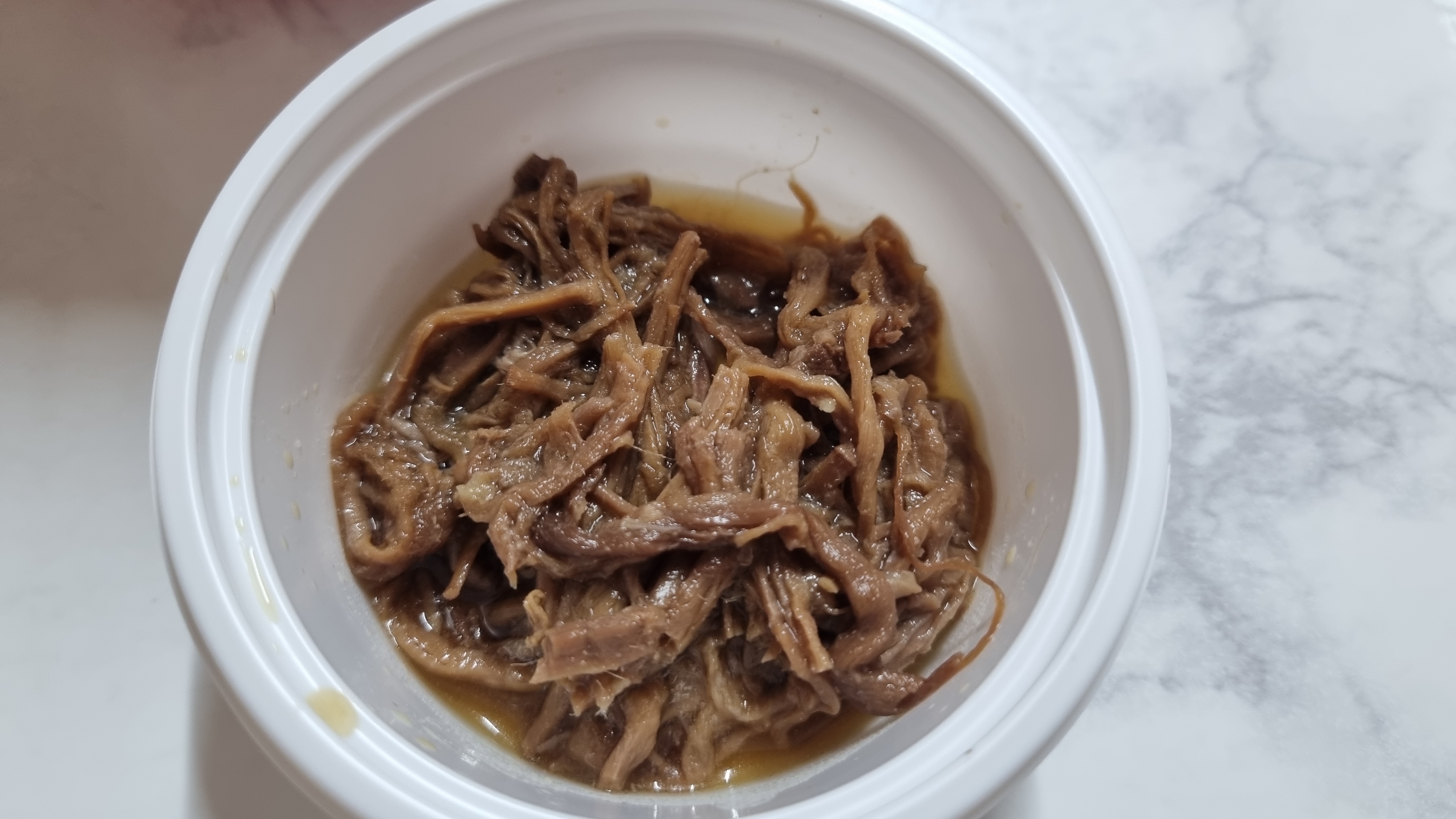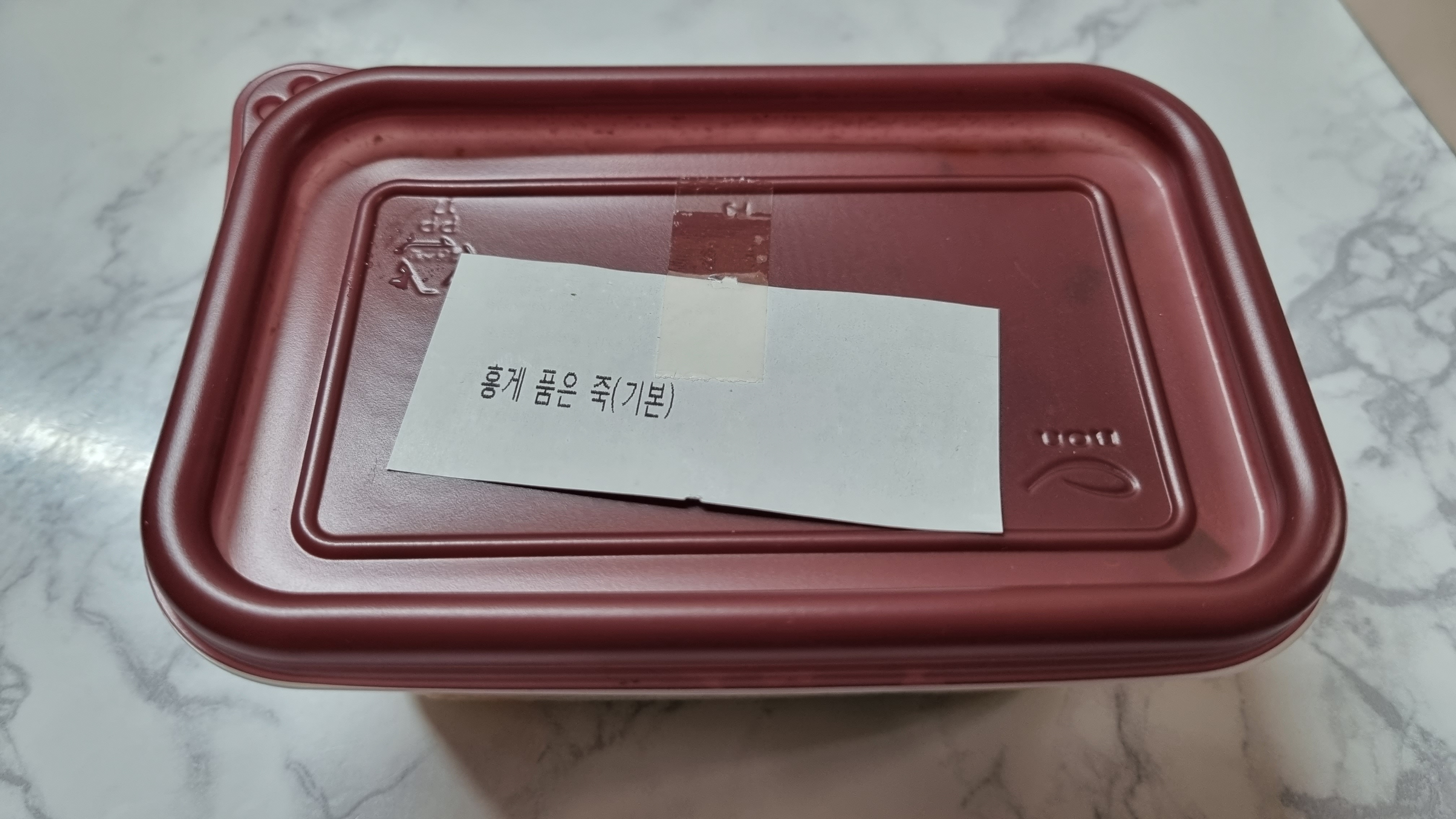 홍게품은 죽으로 애들이 많이 좋아하는 메뉴이며 가격은 13,000원입니다. 위이 사진은 절반정도인데 보통 죽 하나를 두개로 나누어 담아 포장되는데 예전에는 큰 그릇에 담아졌는데 이번에는 이렇게 담아져 배달되었네요. 내가 직접 주문하는 게 아니라서 잘 모르겠는데 아마도 주문 시 요청한 듯합니다.