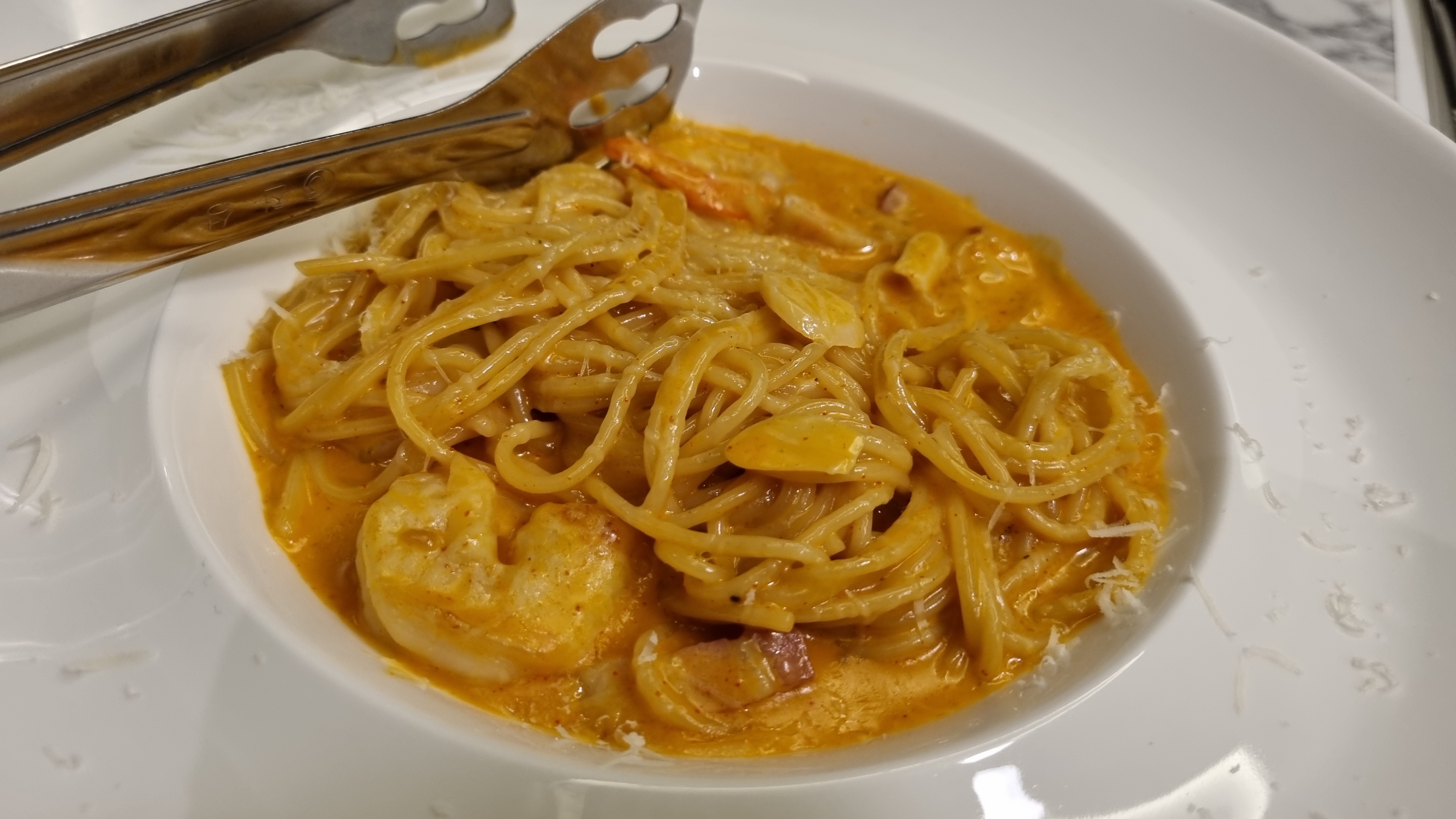 고기를 한창 구워 먹는데 세트메뉴에 포함된 매운 새우크림인데 소스가 그렇게 많이 맵지는 않았으나 면도 맛있고 새우도 맛있게 먹었습니다.