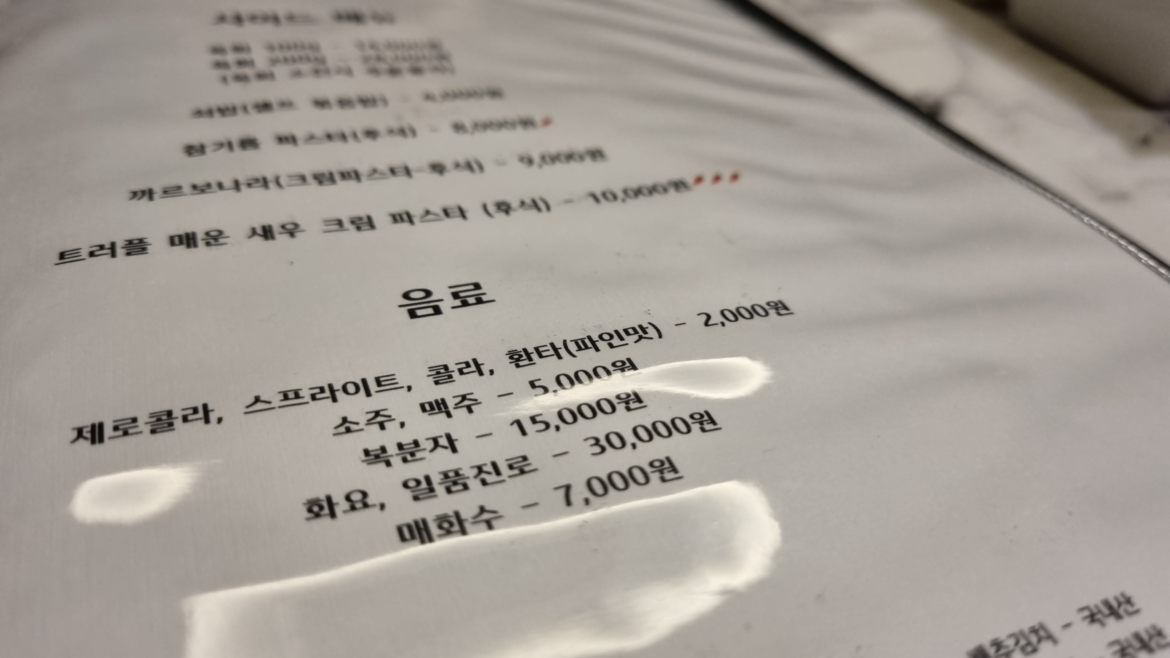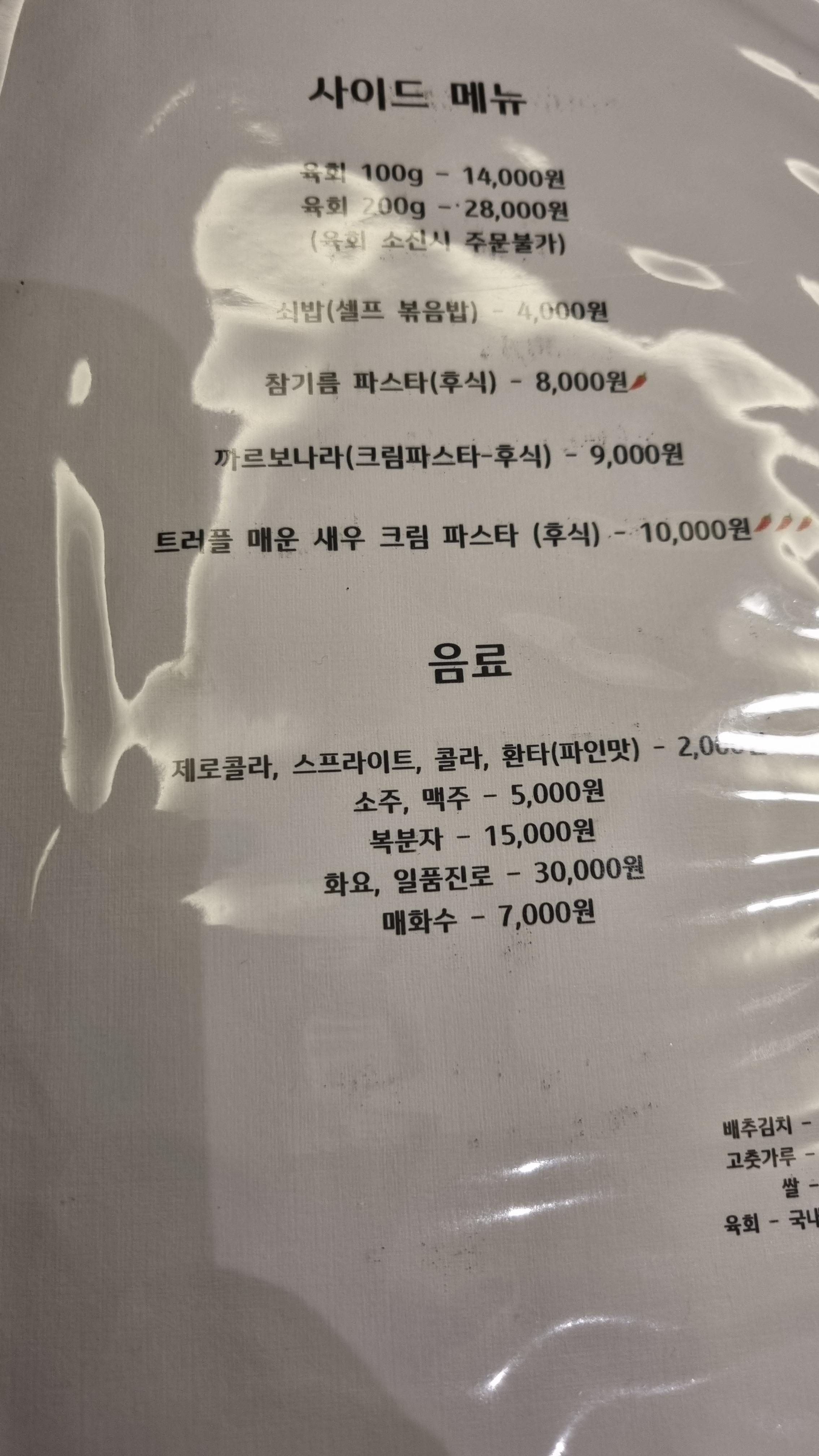 기타 사이드 메뉴가 있는데 우리는 별도로 주문하지 않았습니다. 처음에는 2인분이 너무 적을 줄 알았는데 기본으로 나오는 요리와 세트메뉴에 추가된 매운 새우크림을 함께 먹으니 충분히 배부르게 먹었습니다
