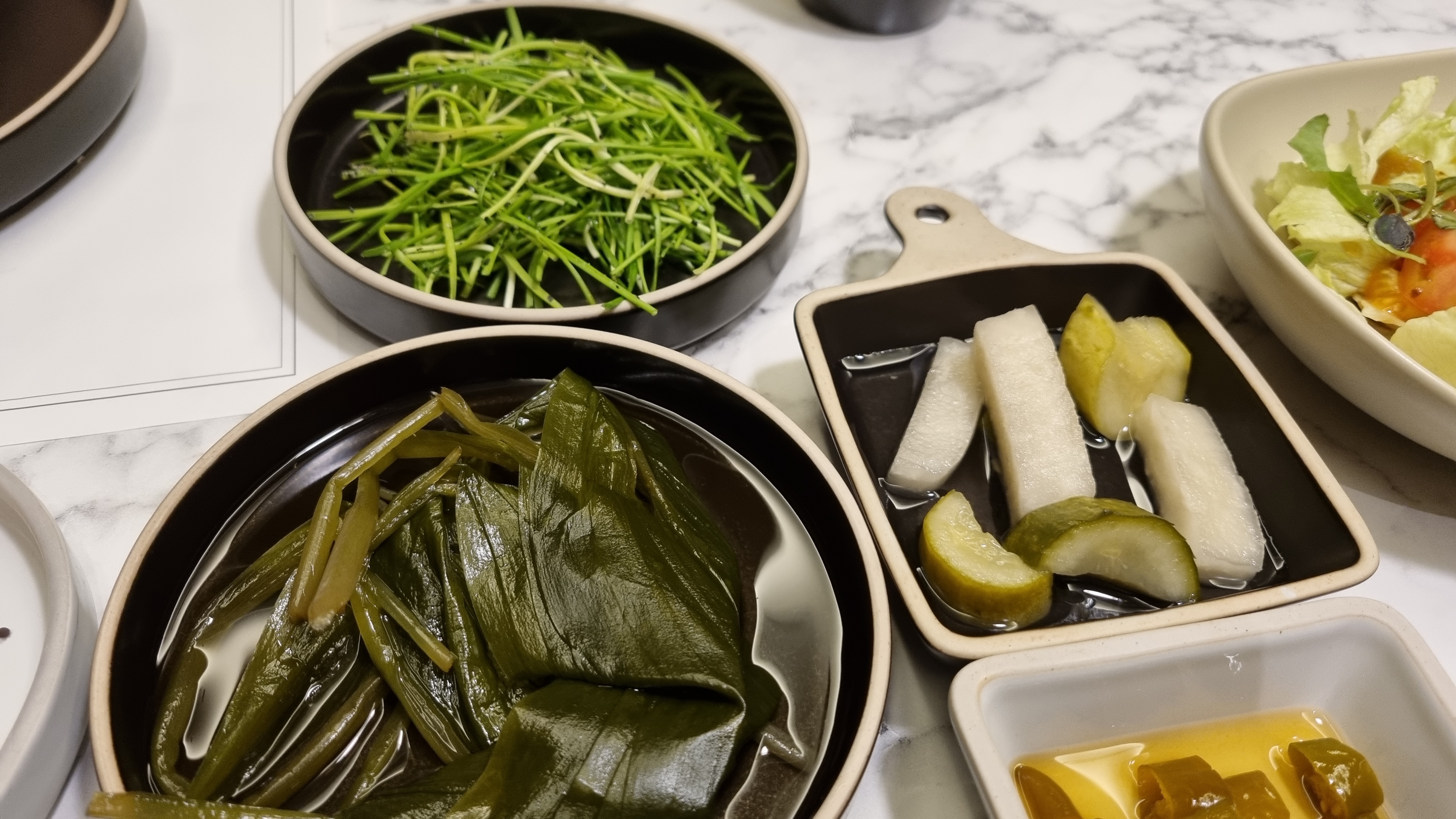 기본 반찬입니다 근데 요즘에는 소고기집에서도 겨자가 기본으로 나오는 것이 신기하며 기타 반찬 평범합니다