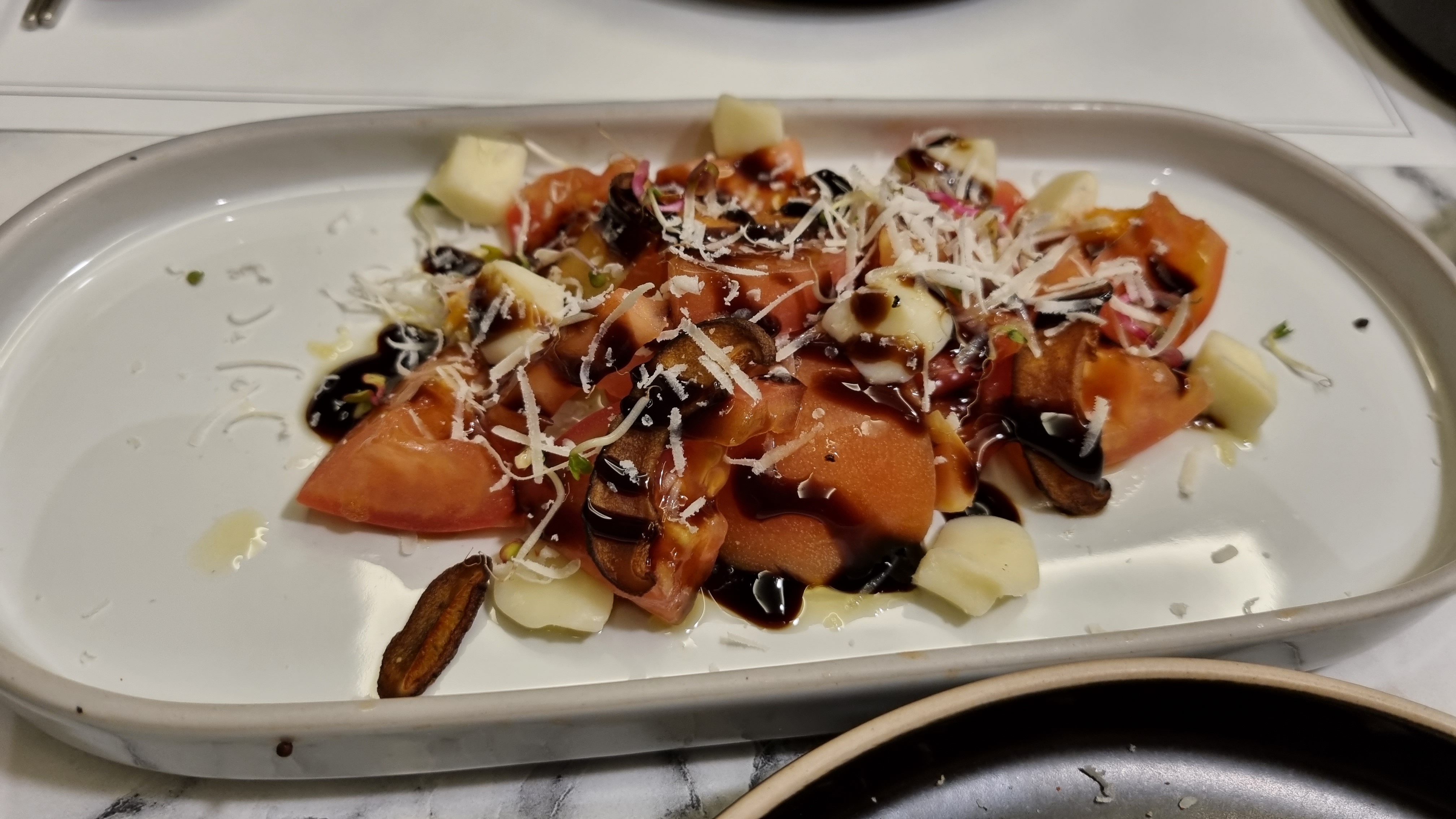 오른쪽이 도마토 샐러드인데 왼쪽도 토마토인데 이름을 잘 모르겠습니다. 생각 보다 기본 요리가 조금씩 나와 고기 나오기 전 먹기 좋고 술안주로도 괜찮았습니다.