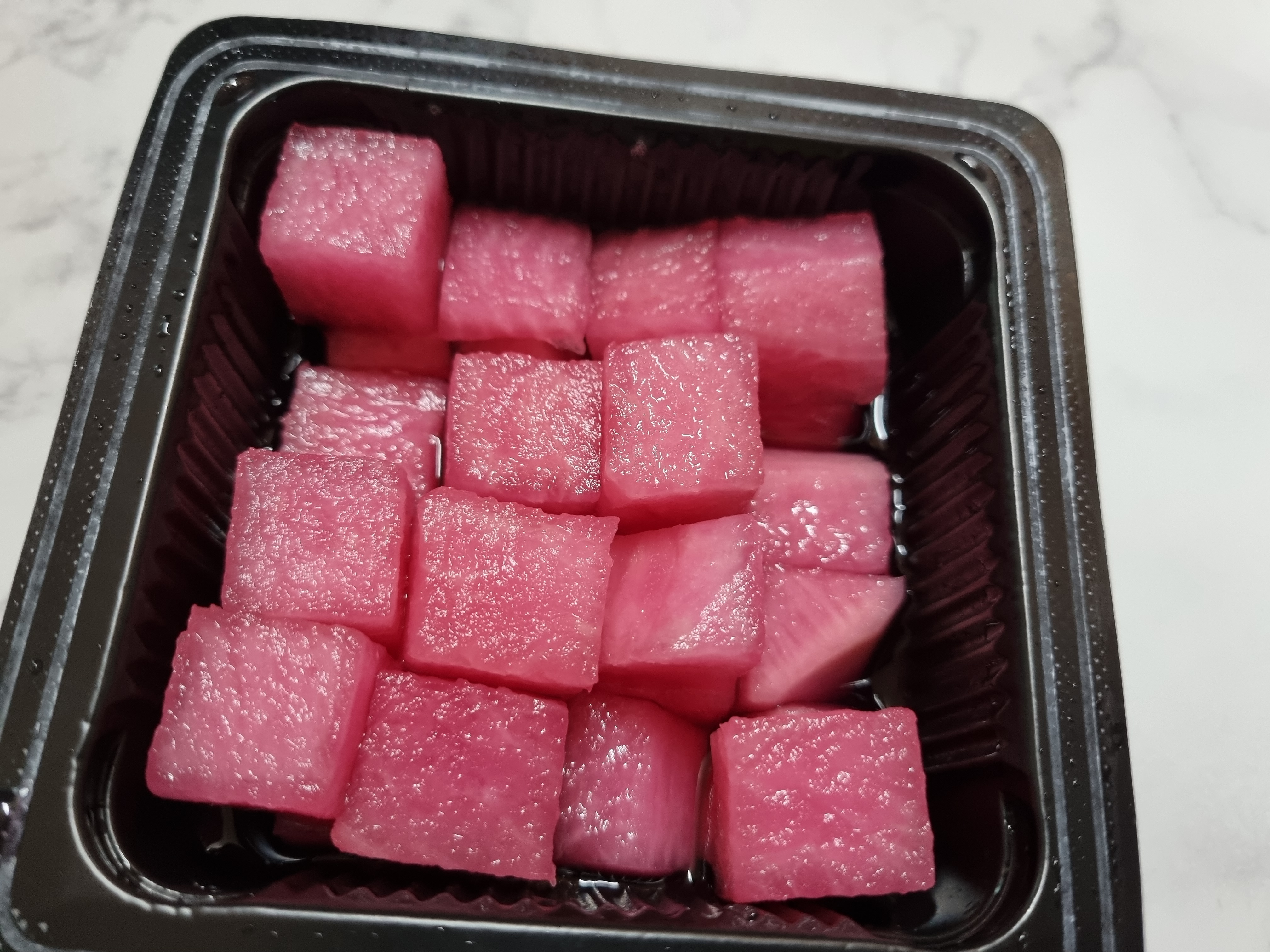 치킨무 색깔이 빨간색이라 처음엔 약간 거부감이 있었는데 여러 번 보니 괜찮았습니다. 맛은 일반 치킨무와 비슷합니다.
