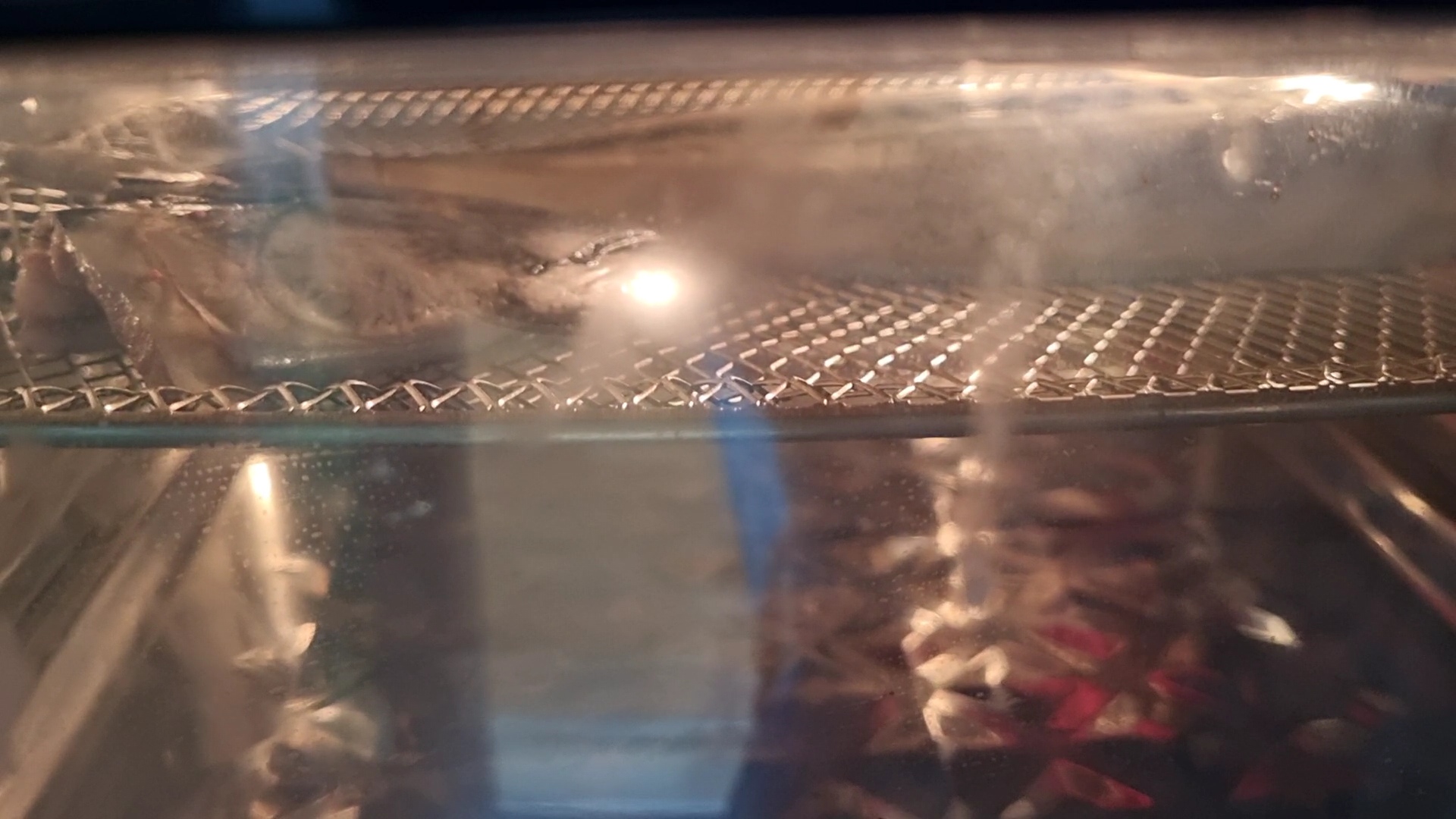 드디어 굽기 시작합니다. 내부를 볼 수 있는데 자꾸 사용해서 흐릿하게 보입니다. 근데 3분 정도 시간이 지나는데 맛있는 고등어 구운 냄새가 코를 자극하기 시작합니다.
