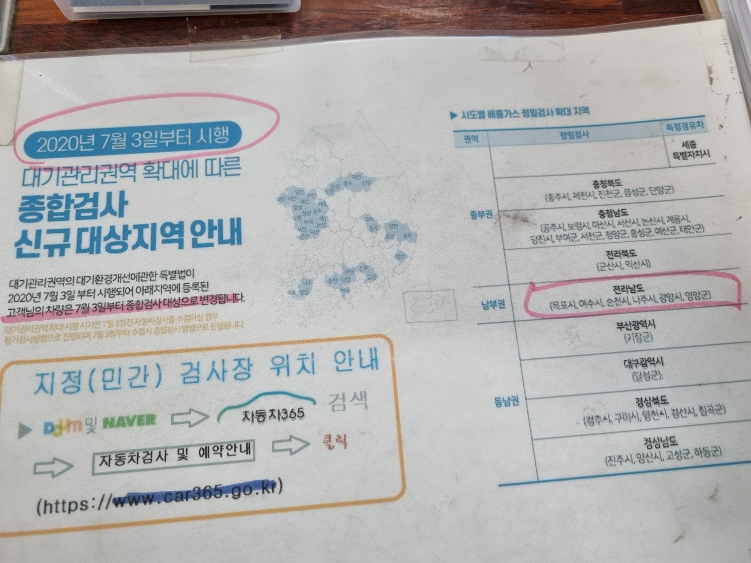전국에서 검사받는 방법이나 비용은 비슷한데 순천지역 민간이 운영하는 자동차 검사소를 이용해 보았습니다. 한국교통안전공단에서 운영하는 곳은 가격이 약간 저렴하지만 이용하기가 너무 불편합니다.