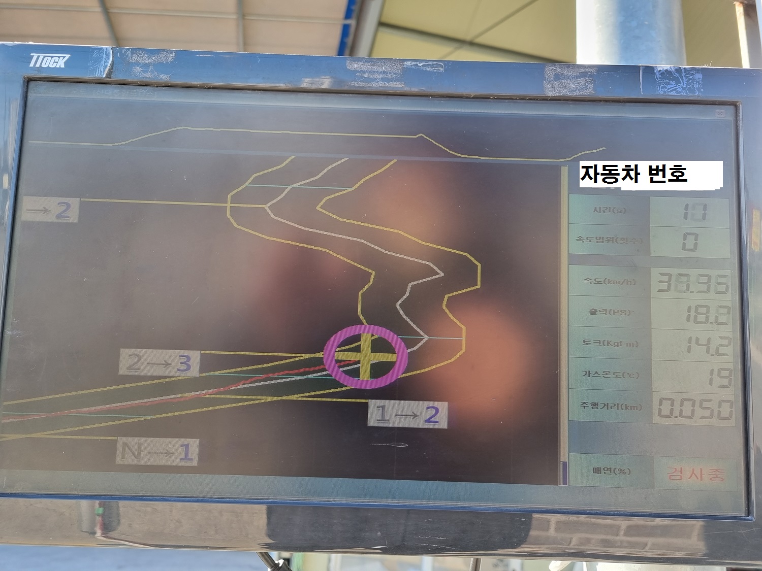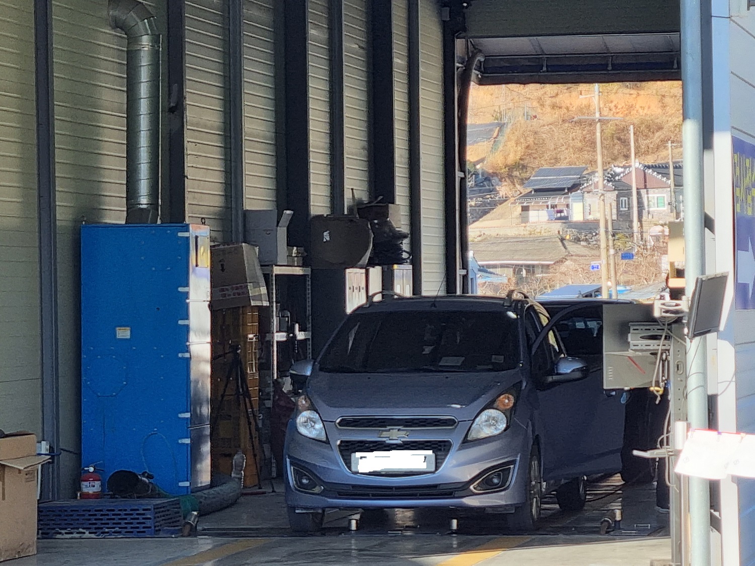 이곳은 출구에 모니터로 본인의 차량 검사결과를 모니터로 볼 수 있도록 하여서 매연 발생 상태나 기타 검사과정 수치를 확인할 수 있도록 하였습니다. 이후 검사가 끝나면 검사완료 서류를 주고 마무리되는데 검사 중 운전자가 특별히 할 일은 없습니다.