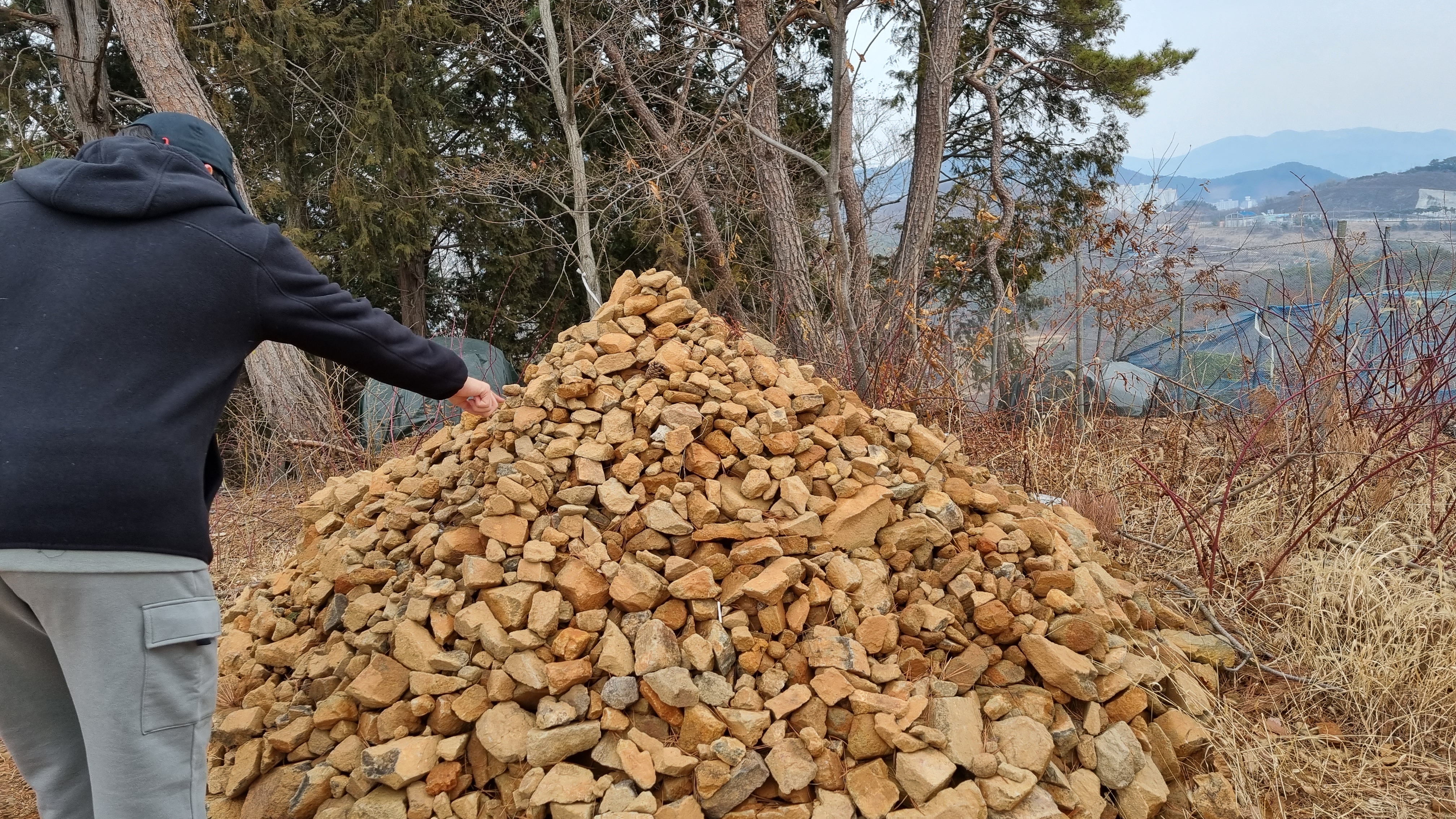 소원을 비는 돌탑이 있어 돌을 몇 개 올려놓고 가는데 시골 밭도 나오고 비닐하우스도 나오네요.