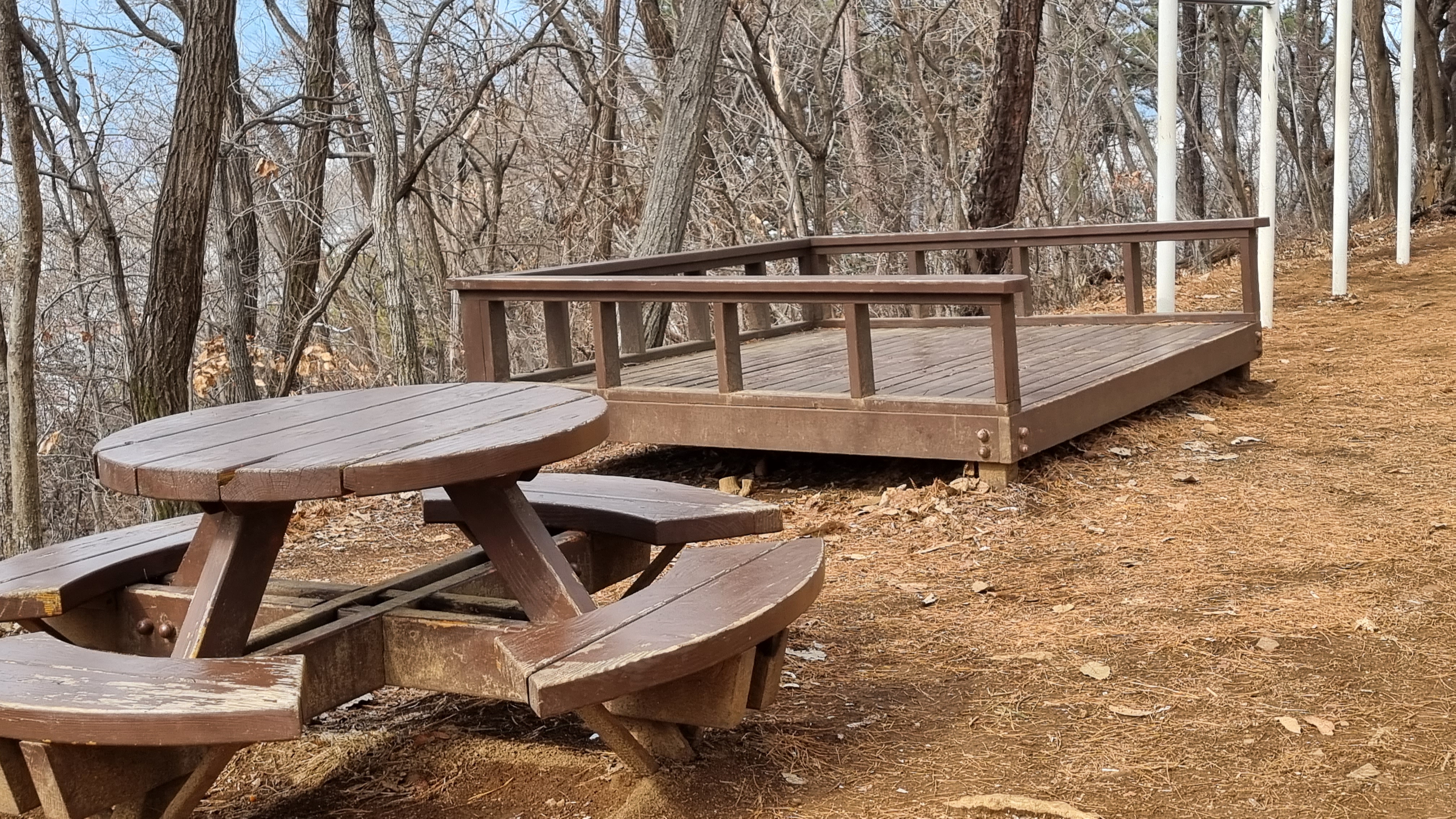가을이나 봄, 여름에는 간식을 챙겨 와서 이곳에서 휴식을 취하고 쉬고 가면 정말 좋을 것 같습니다. 너무 조용하고 뭔가 깊은 산속의 자연 속에 들어와 있는 느낌을 좋은 분위기였는데 우리는 겨울이라 잠깐 쉬고 출발했습니다.