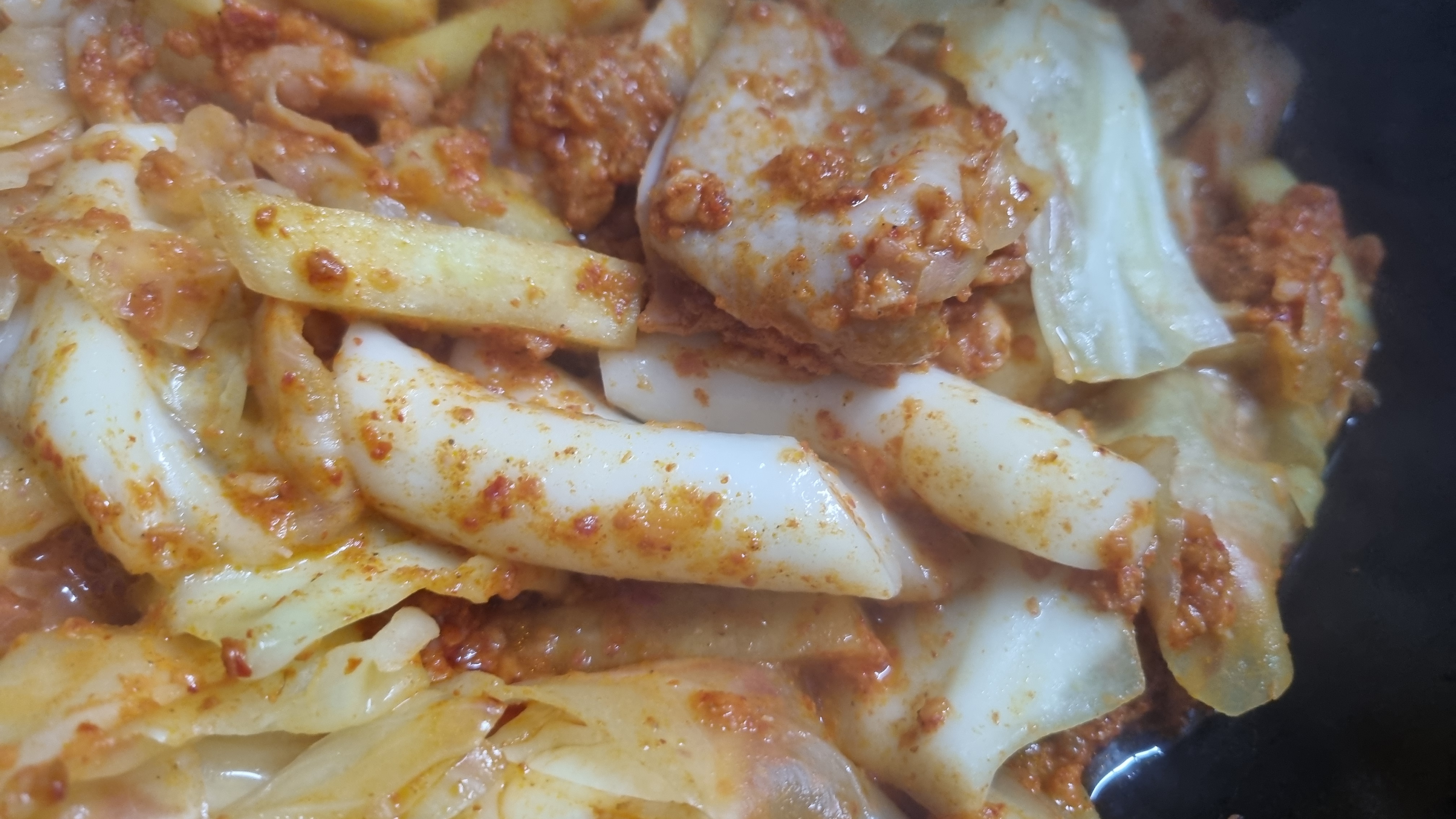 위사진에는 보이지 않은데 떡볶이용 떡도 넣었는데 이것도 반드시 들어가야 할 재료입니다.