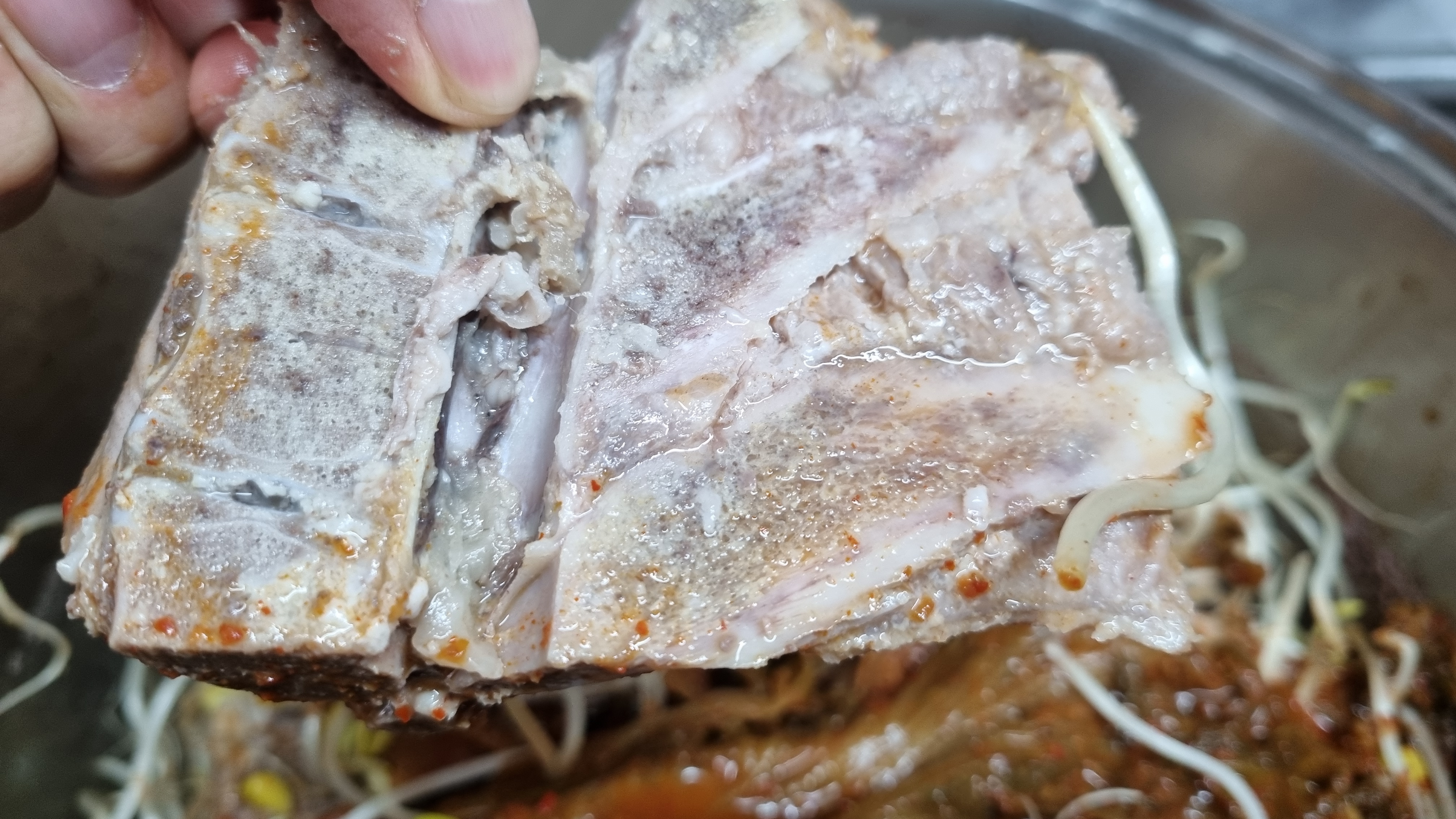 그런데 가끔 뼈의 고기도 질기고 살코기가 뼈와 잘 분리되지 않은 경우가 있는데 그러면 구입처를 다른 데로 바꿔야 합니다.