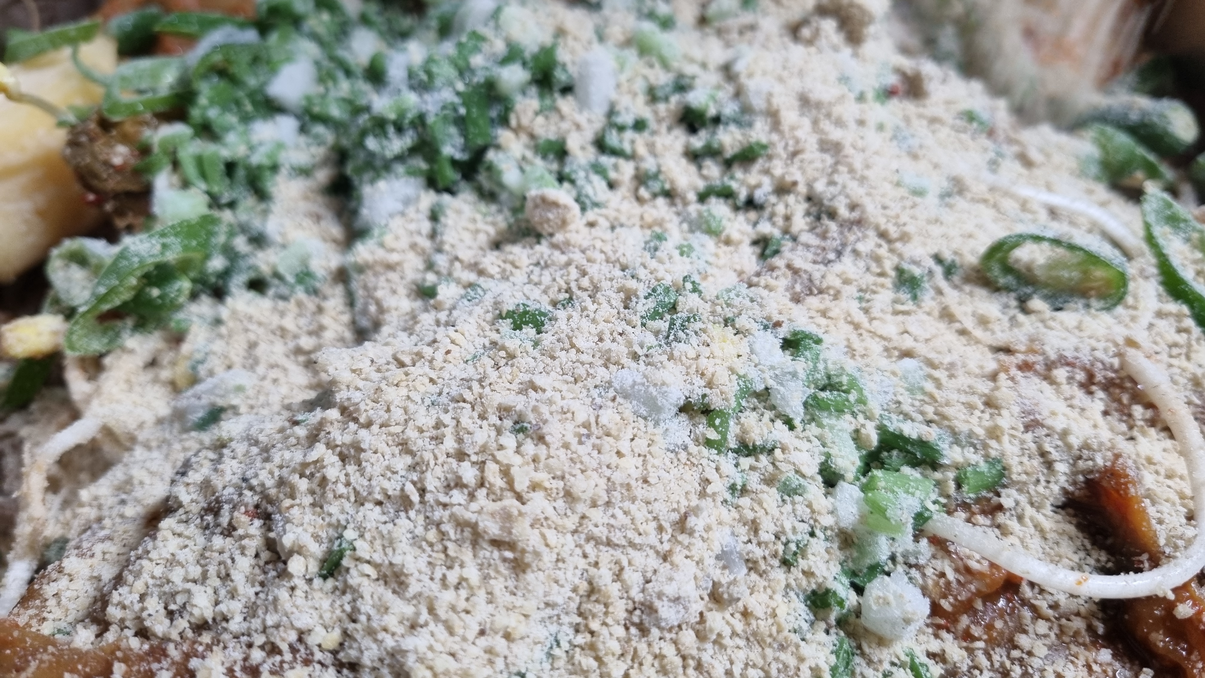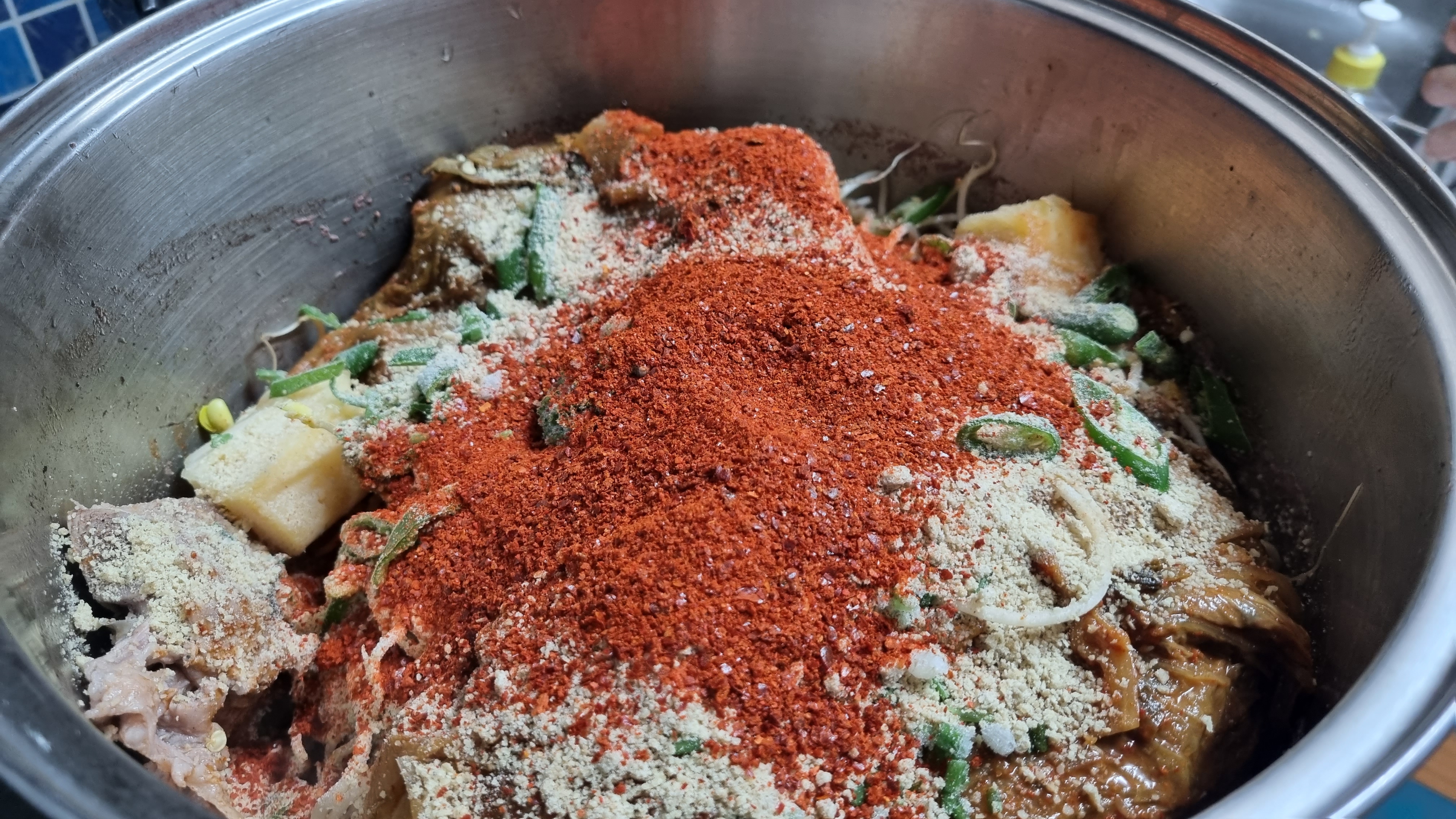 들깻가루 고춧가루 2큰술을 넣어 살짝 매운맛이 있도록 했는데 이런 음식은 약간 매콤함이 있어야 더 맛있습니다. 재료를 너무 많이 넣는다는 생각도 있는데 맛있을 듯합니다.