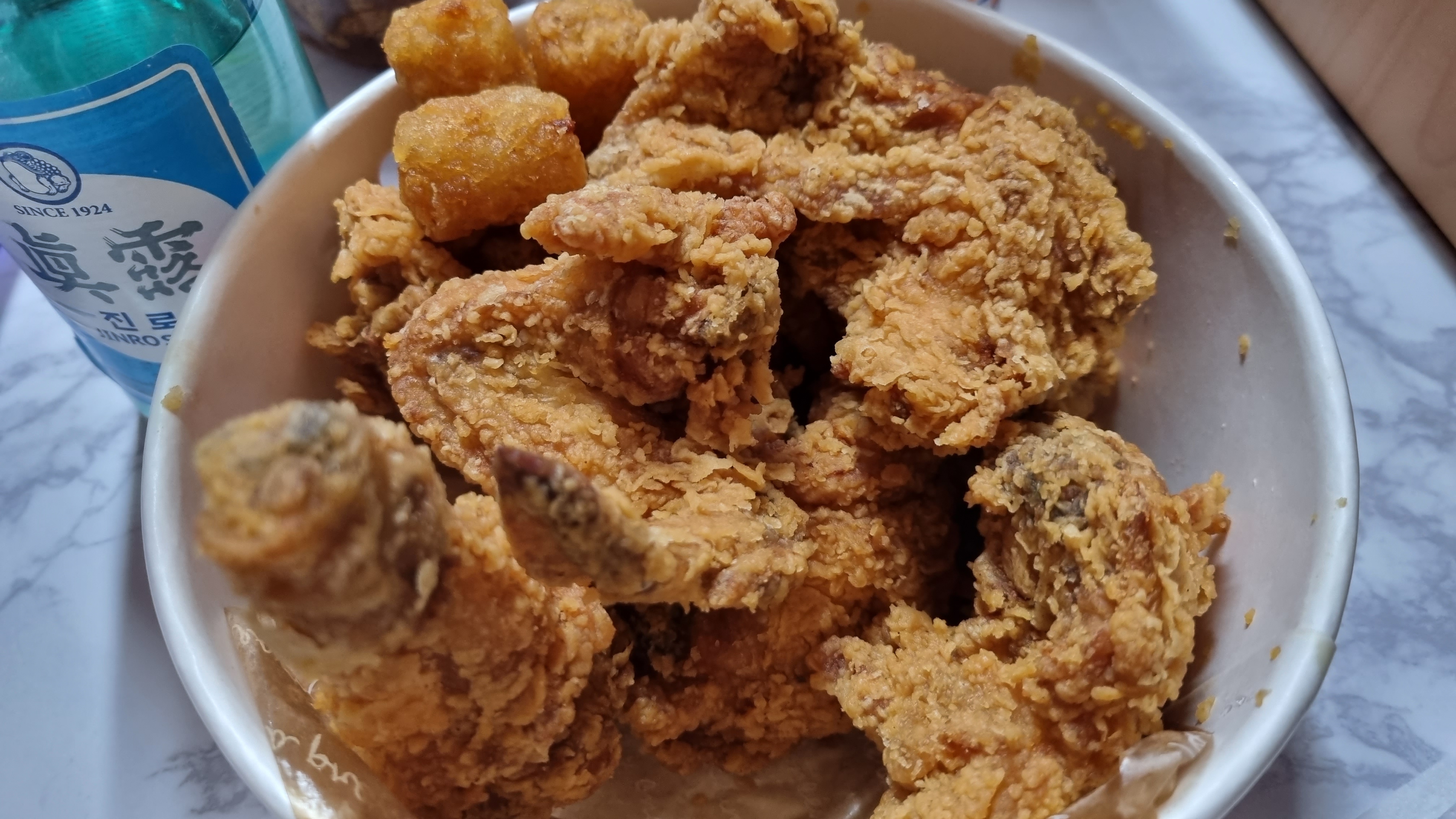 가격이 저렴하니 다른 치킨메뉴와 함께 여러 가지 치킨메뉴를 함께 구입하면 더 다양한 맛을 즐길 수 있어 더욱더 좋습니다. 다만 아쉬운 것이 따뜻하게 먹을 수 있는 보장이 없는 것이 살짝 아쉬울 따름입니다.