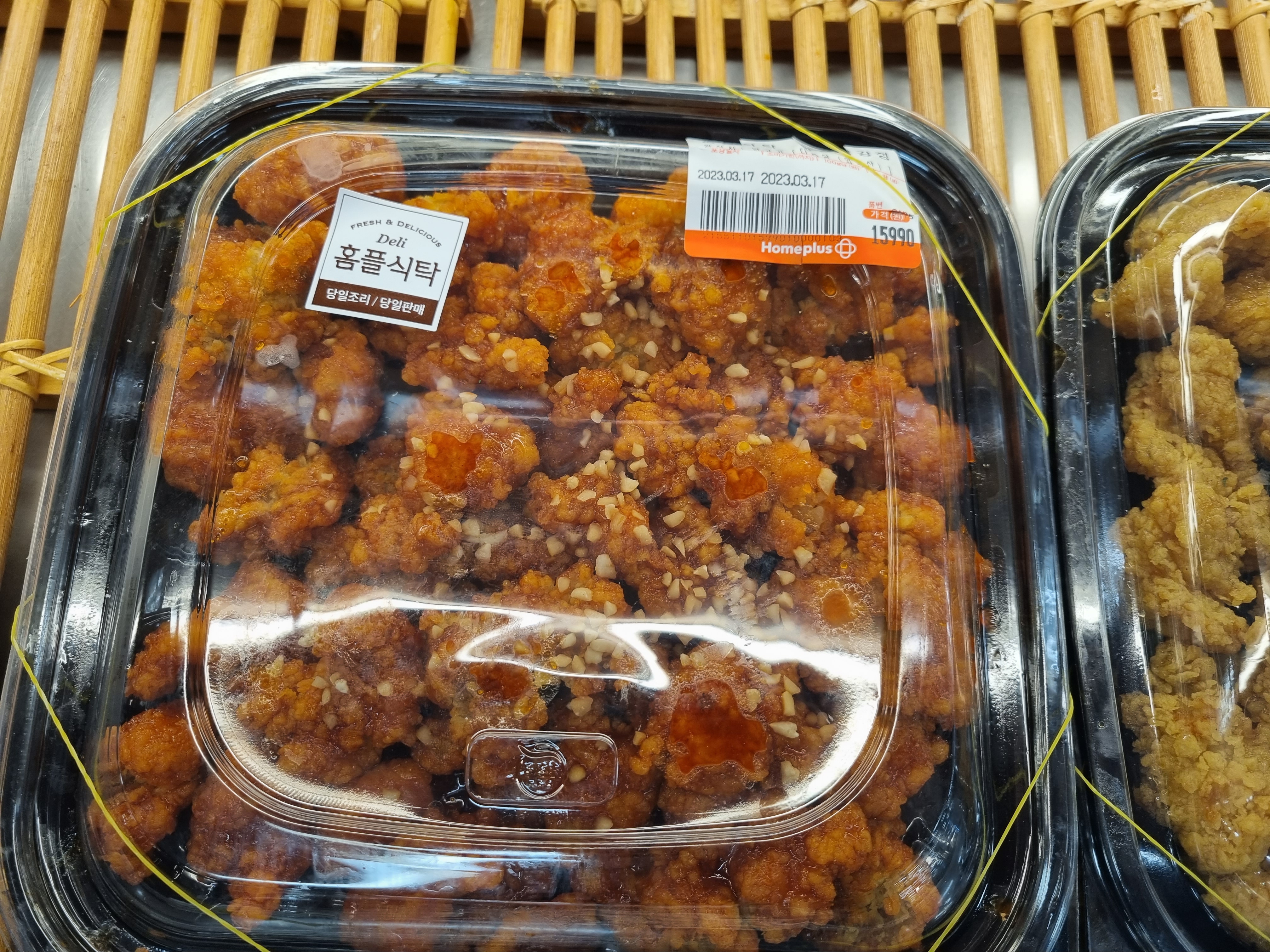 닭강정이 아니라 돼지강정이라 생각하시면 되는데 처음먹거본 메뉴입니다. 처음 마트 갈 때 구입할 품목이 아니었는데 현장에서 마음에 들어 바로 구입했습니다.