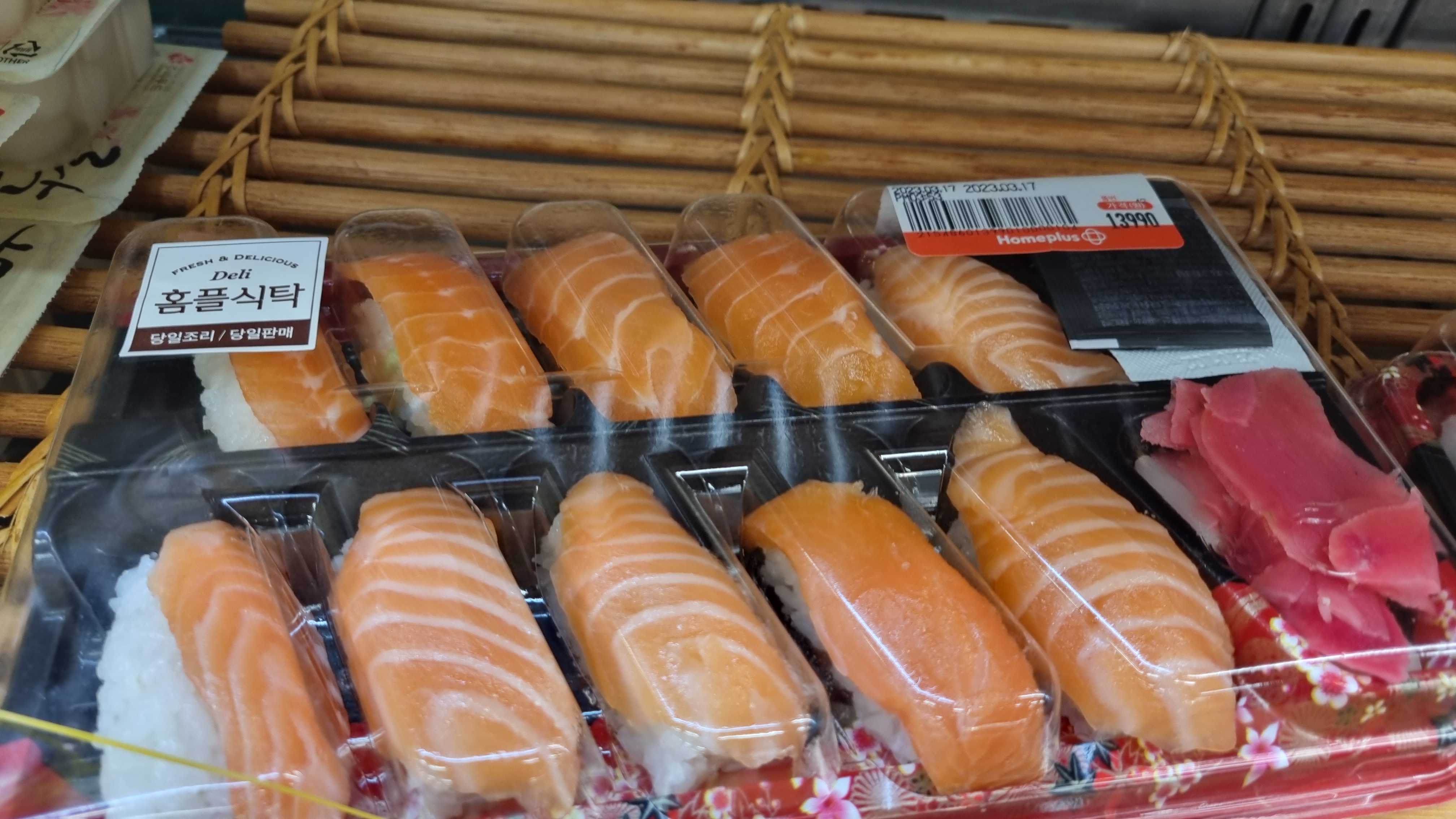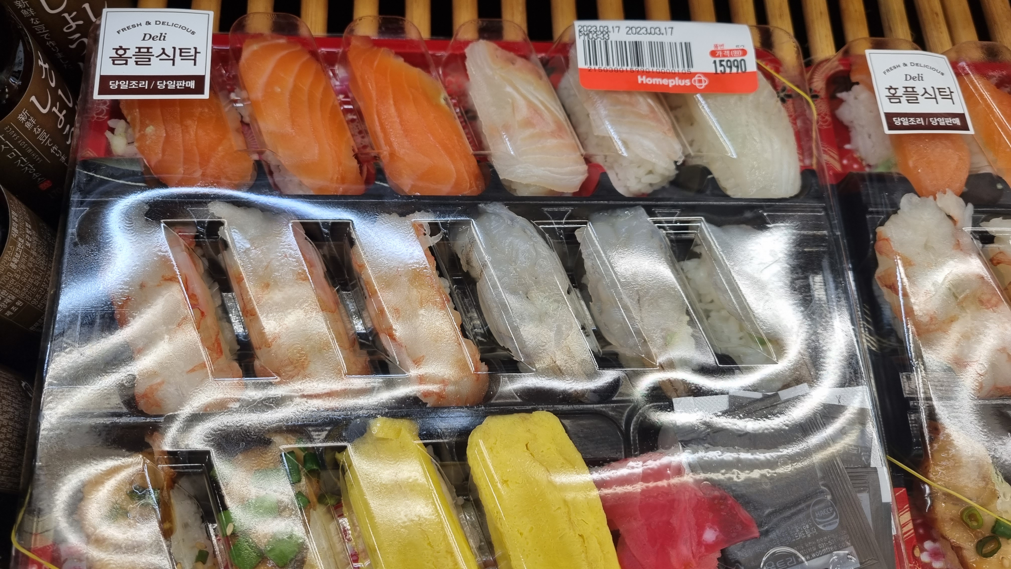 이것은 초밥인데 치킨코너 바로 옆에 있어 잠깐 구경했습니다.