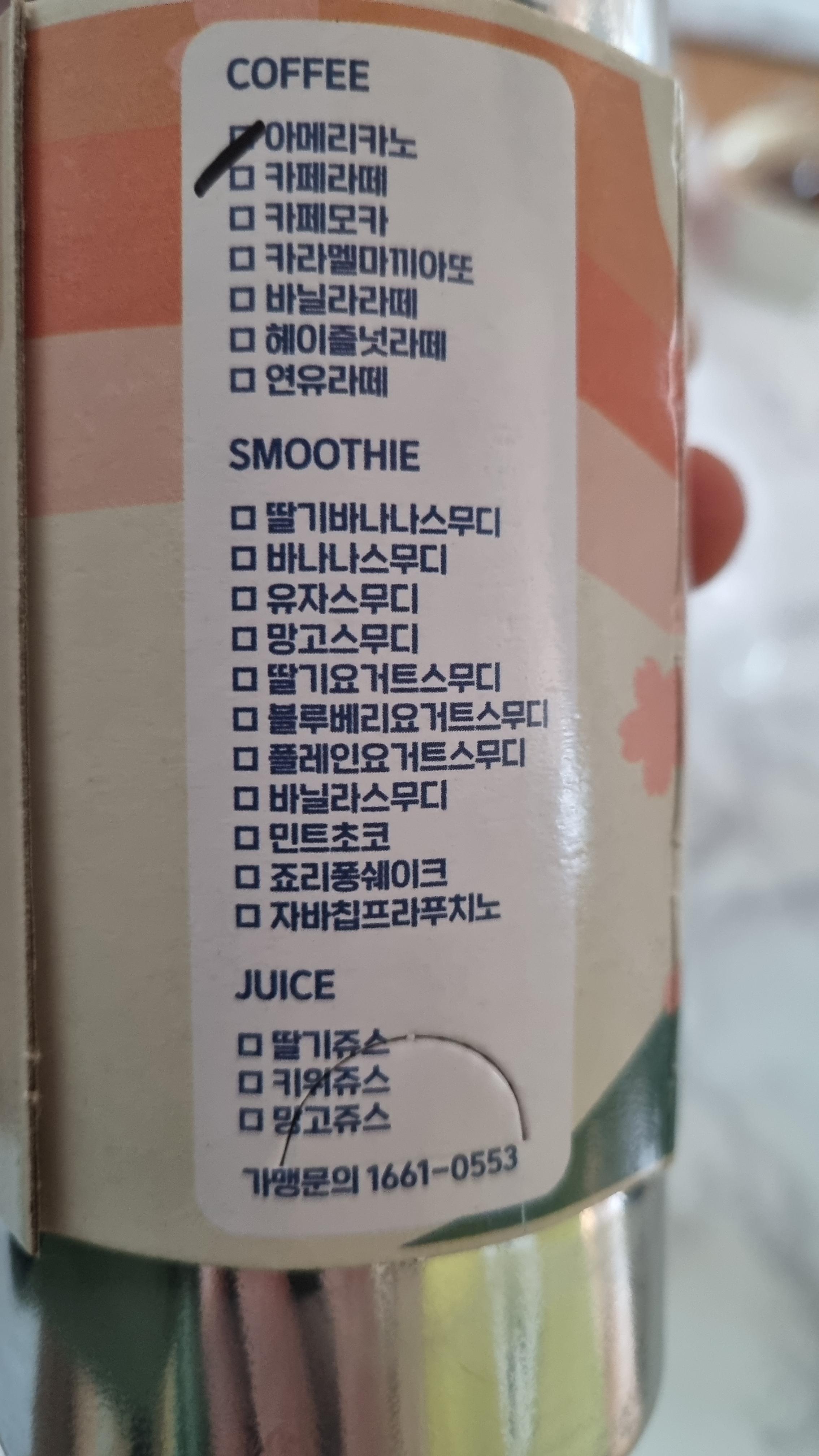 그럼 아이스아메리카누와 과일 스무디를 이용해 보겠습니다.