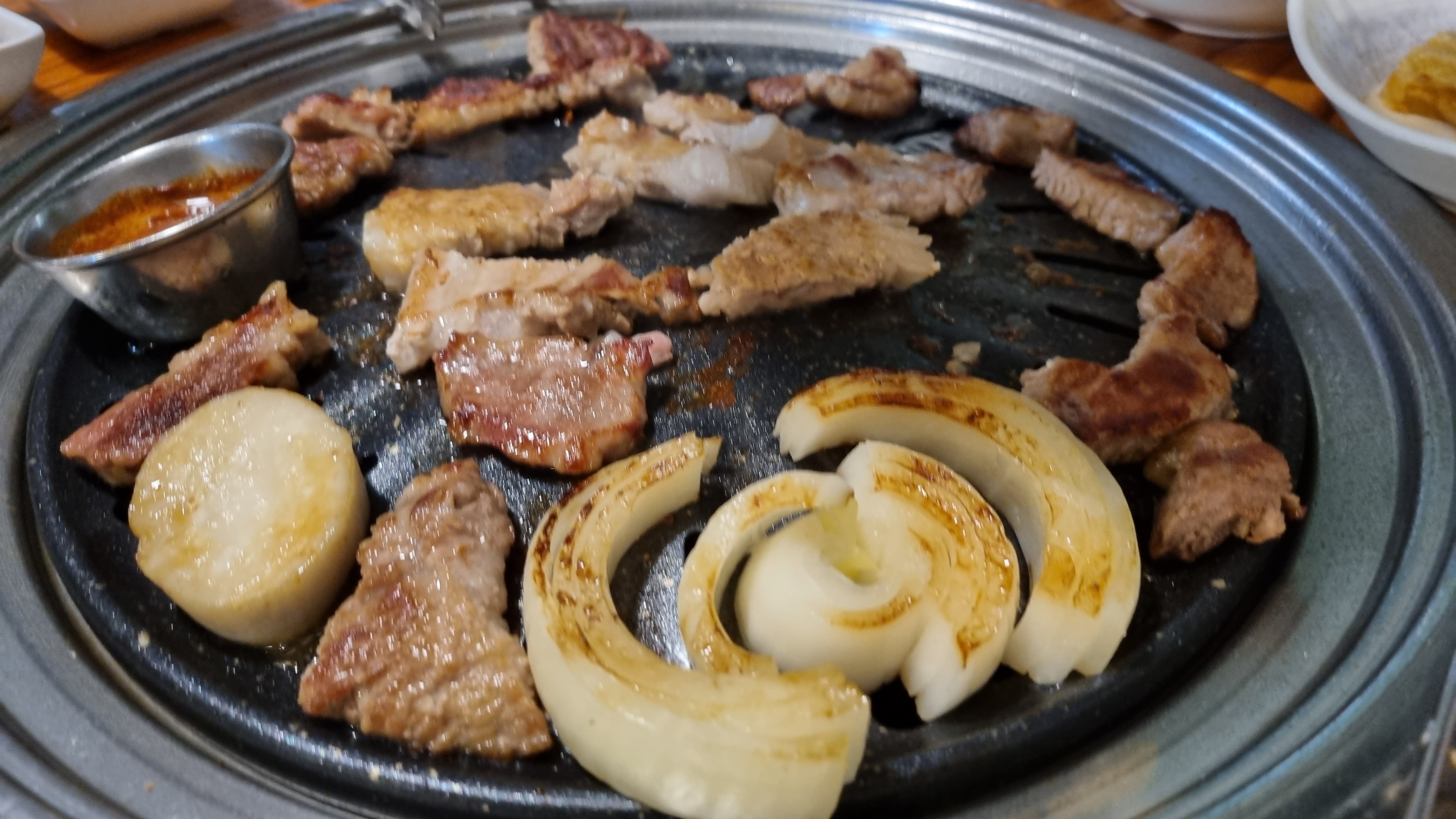 우리는 삼겹살과 항정살을 먹었는데 애들은 항정살을 더 좋아하고 어른들은 역시 삼겹살이 절대적인 사랑을 받았습니다.