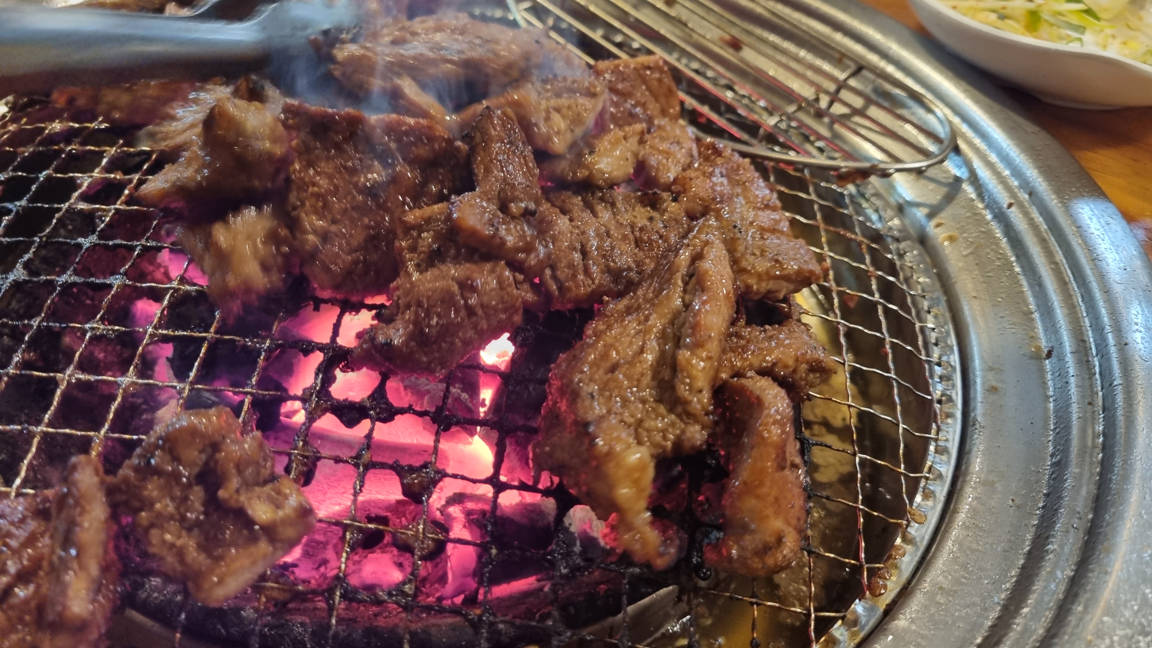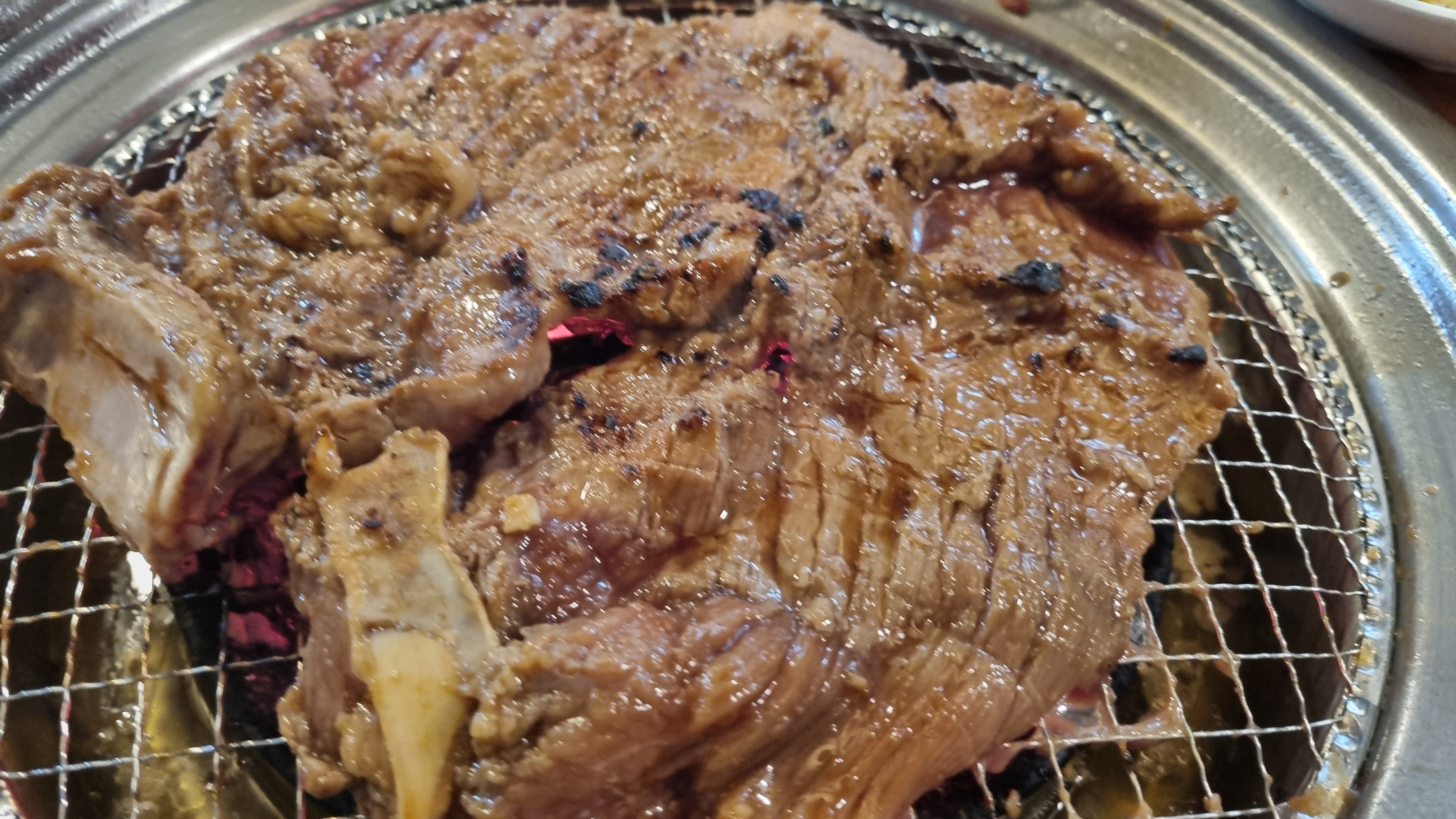 갈비는 역시 잘 구워야 합니다. 양념 때문에 쉽게 타기 쉬워 잘 뒤집어 주면서 불조절을 잘하여야 맛있게 구워집니다. 갈비는 양념맛 때문에 더 자극적이라 반드시 삼겹살을 먹고 나중에 먹어야 합니다.