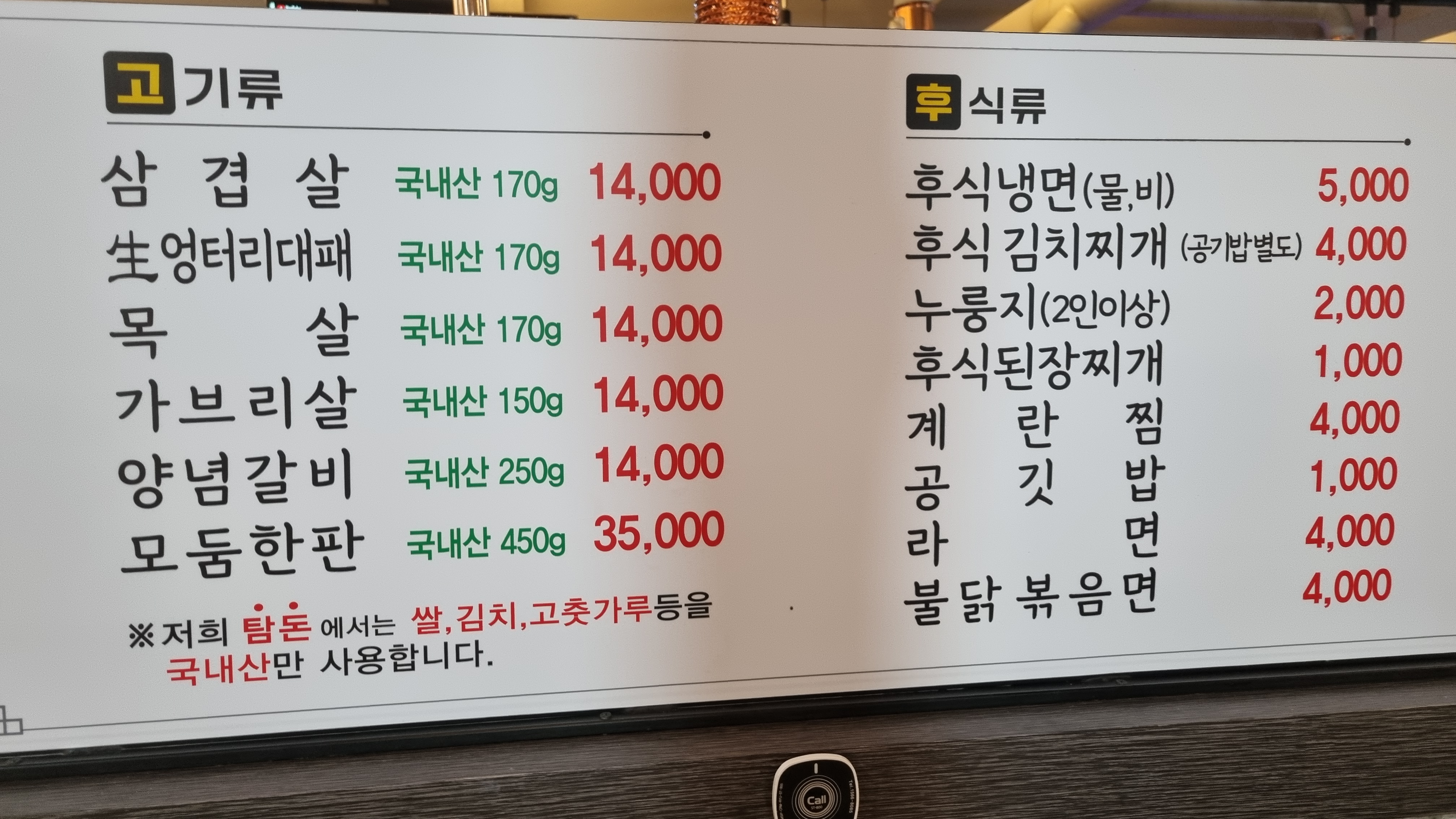 간판이름이 돼지고기가 탐나다는 뜻인데 참 괜찮은 이름 같습니다. 자리는 모두 입식이고 테이블이 많아 단체모임도 괜찮고 절반정도 가려진 룸도 있어 가족식사도 좋을 듯합니다.