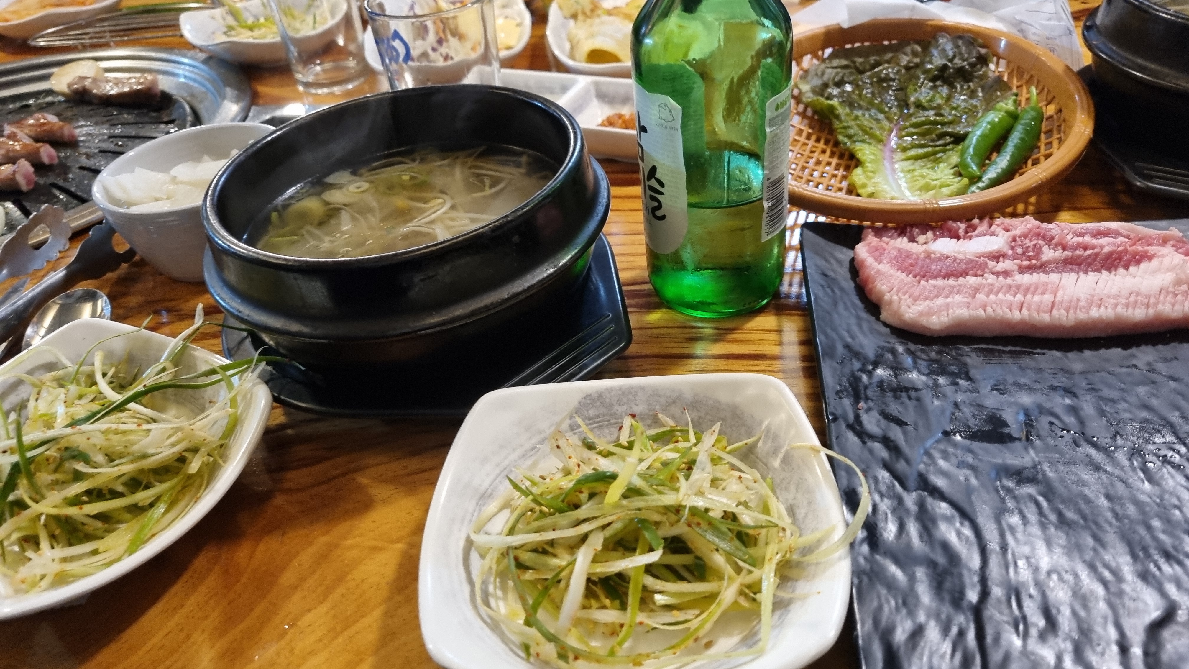 다른 삼겹살집보다 밑반찬은 조금 더 괜찮았습니다. 기본 파절이와 양념이 있고 선진국이 나와 고기가 구워지기 전에 한잔하는데 좋습니다.