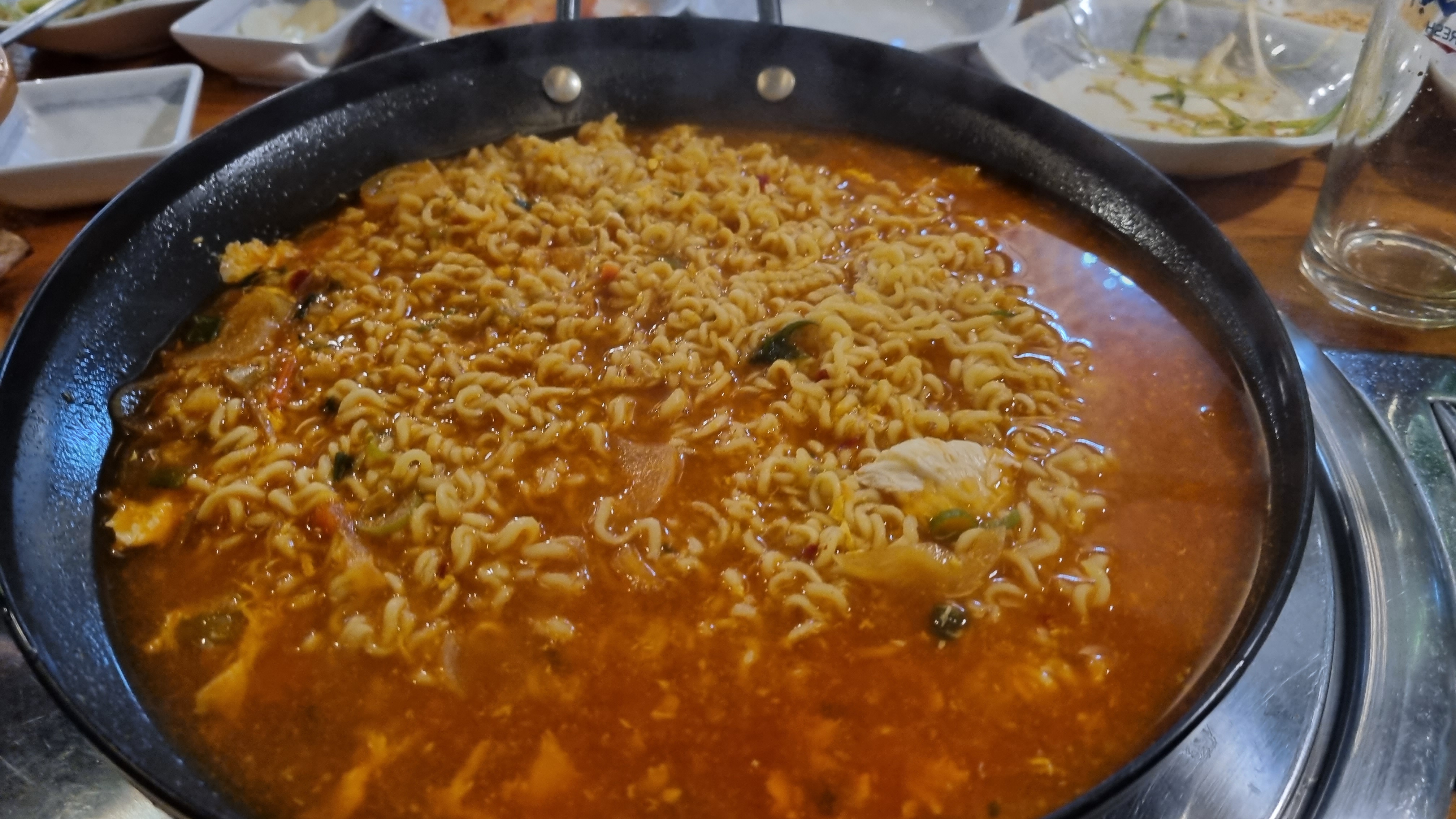 그래서 우리도 라면을 몇 봉 주문했는데 큰 냄비에 끓여서 나왔는데 역시 필자는 라면이 초고라 생각합니다. 고기의 느끼함을 달래주고 시원하고 얼큰한 국물이 최고입니다.