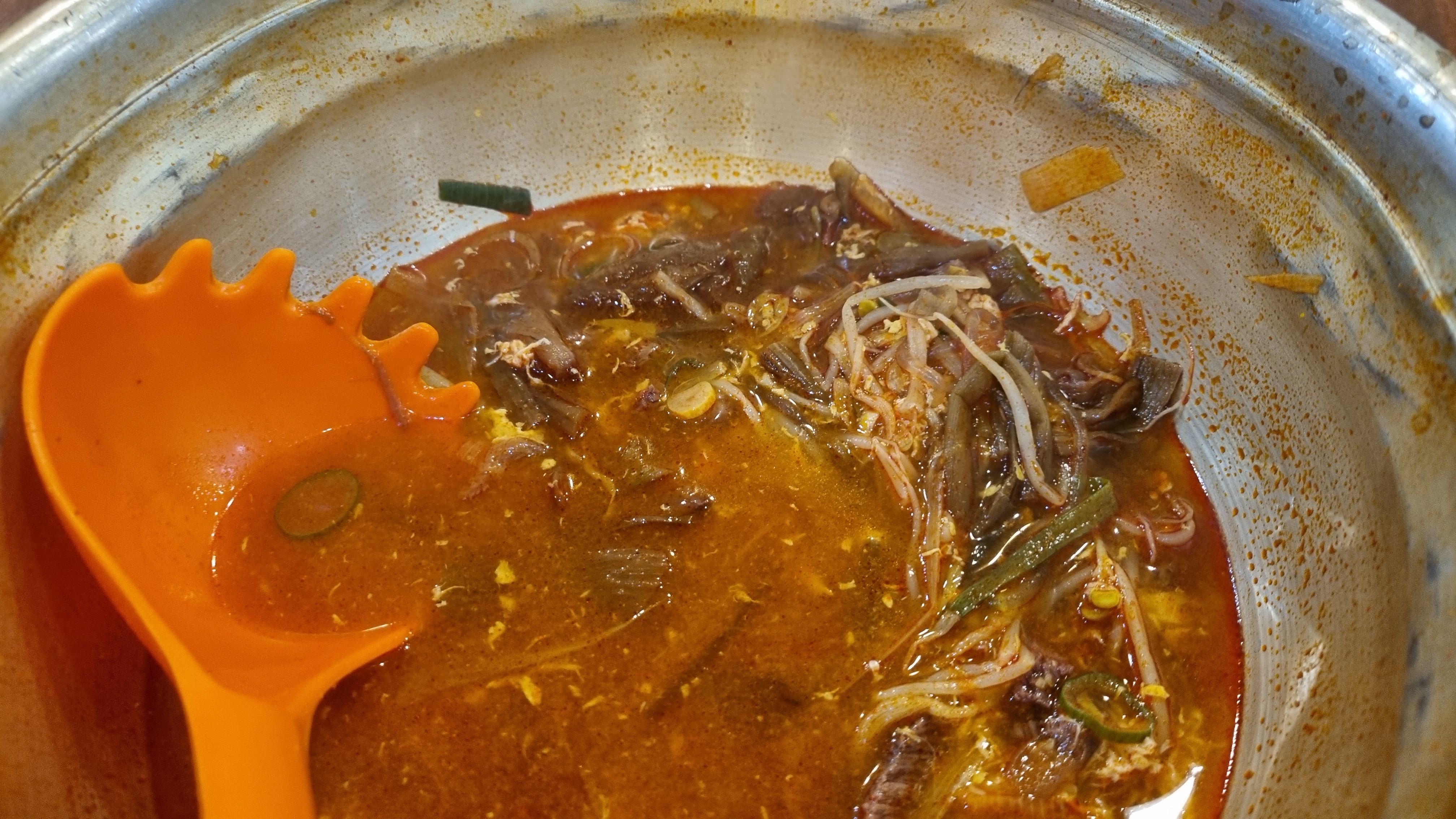 고기를 먹고 후식이 냉면과 누룽지 라면이 있었는데 우리는 정식메뉴인 육계장을 2그릇 주문해 나누어 먹었는데 속을 달래주고 시원하고 괜찮았습니다.