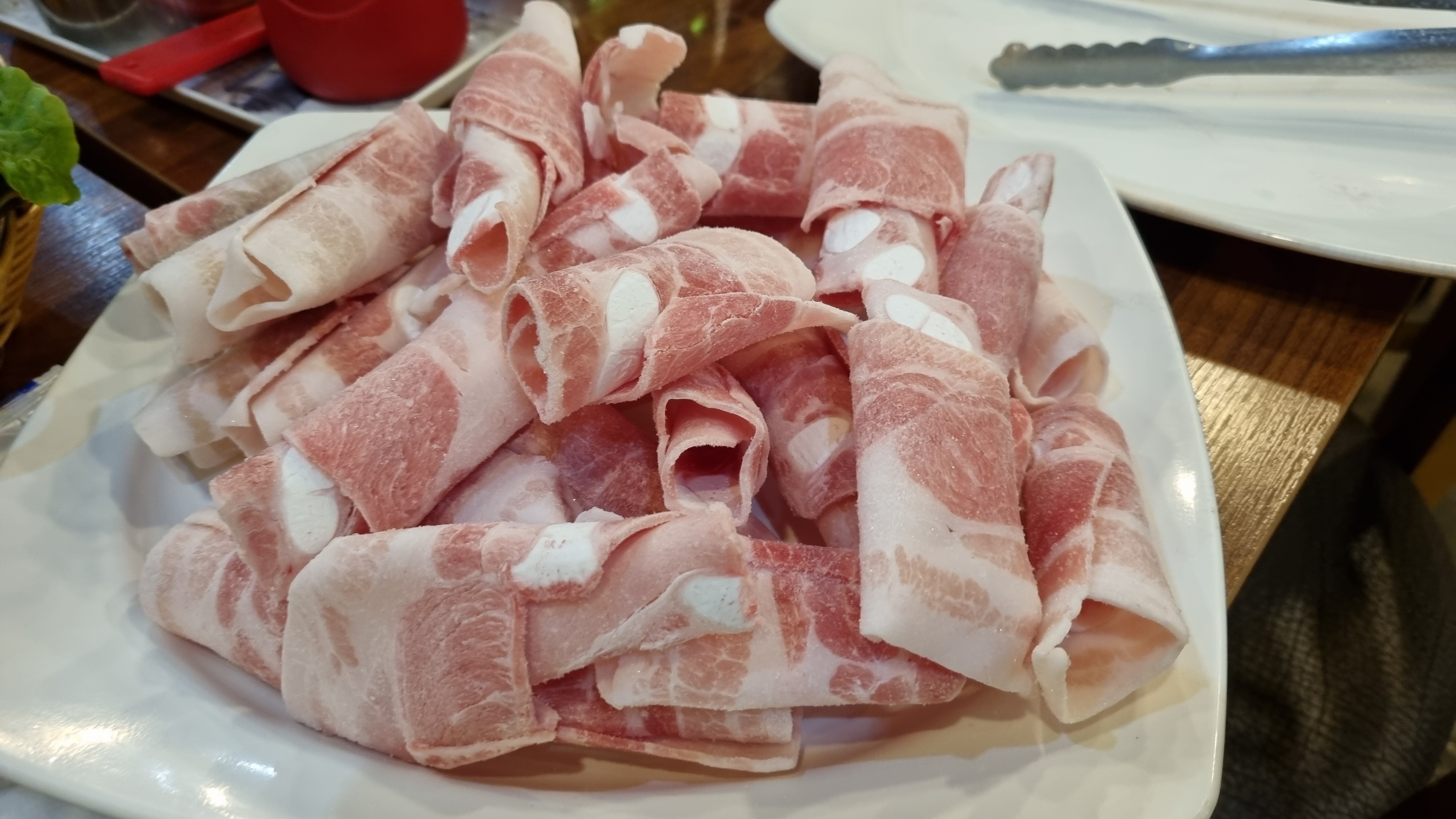 순순한 고기의 식감은 두꺼운 삼겹살 보다 못하지만 다른 특유의 바삭한 느낌과 얇은 고기만의 감찰맛 나는 느낌은 정말 다르고 맛있습니다.