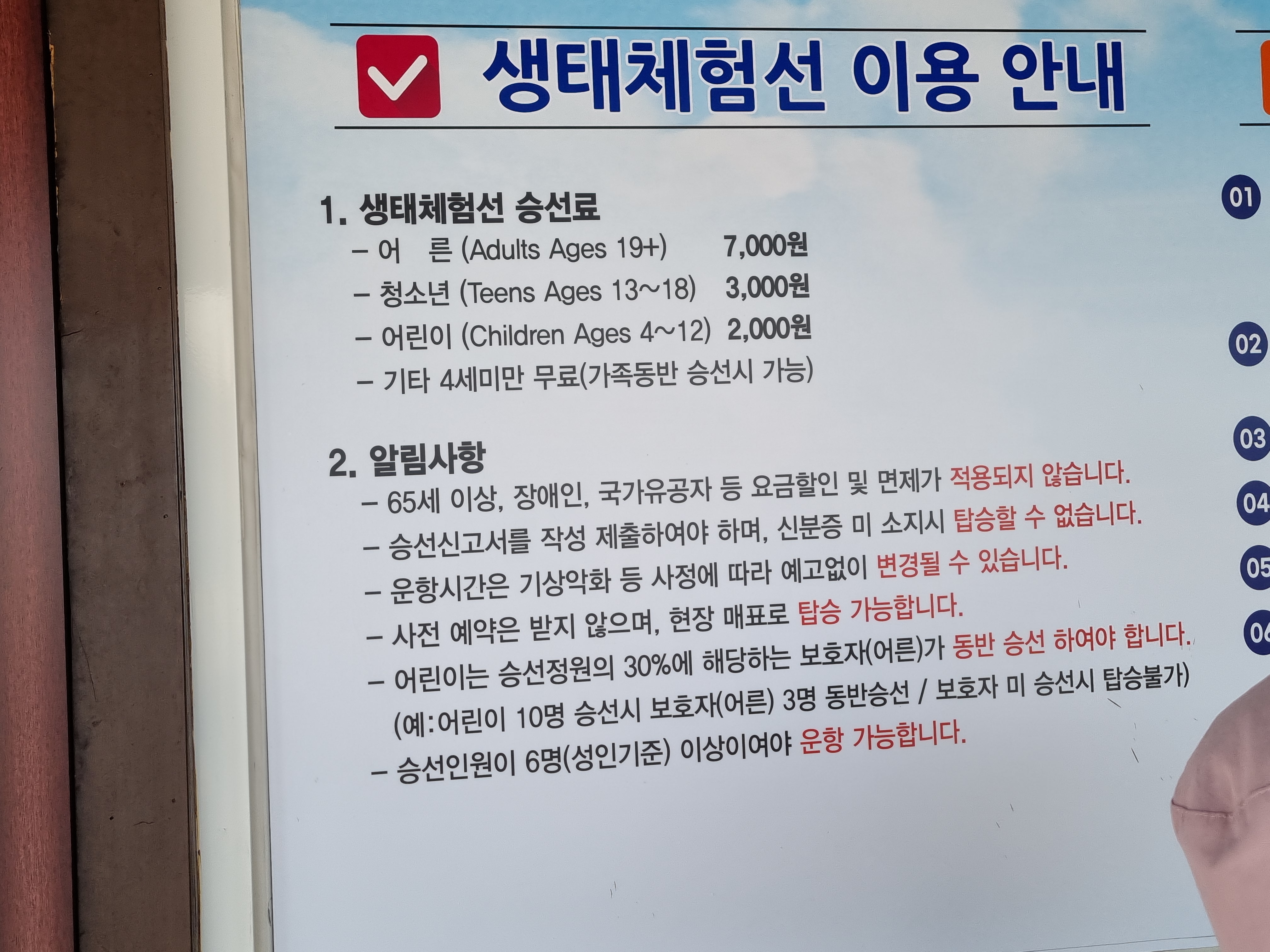 생태체험선 승선료입니다.