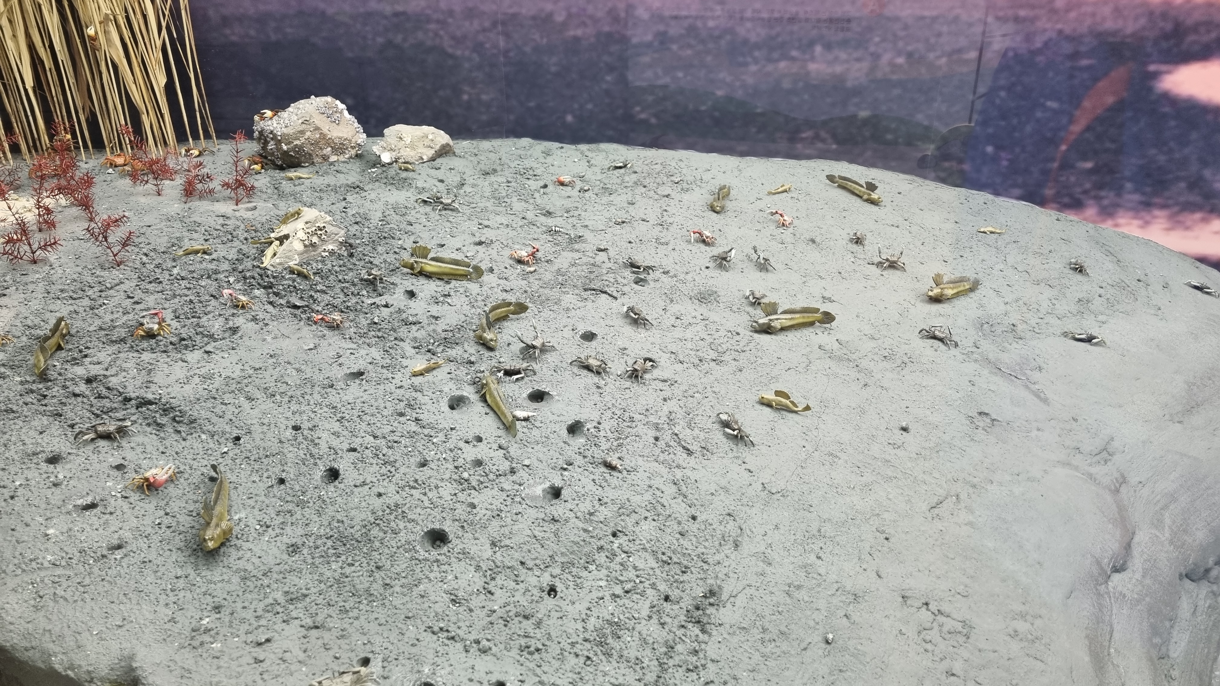 탐방로 데크옆 갯벌을 보면 이렇게 여러 종류의 게를 볼 수 있으며 먹이도 먹도 노는 모습을 볼 수 있어 재미를 느낄 수 있습니다.