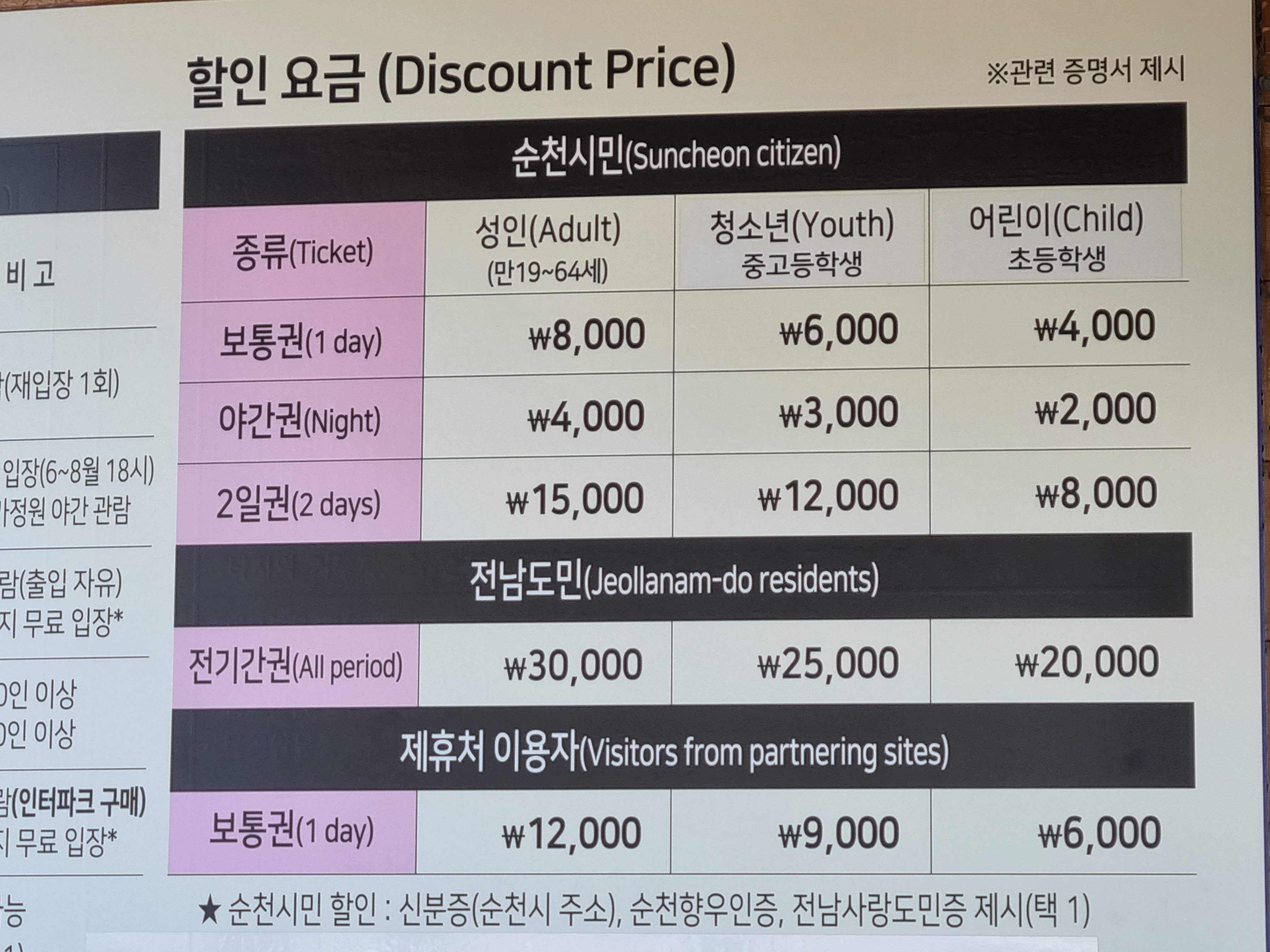 순천시민이나 야간권,2일권등의 할인요금등도 있으니 이를 적절히 활용하시기 바랍니다.